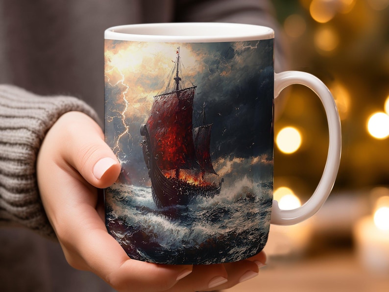 For the modern-day explorer, the Viking Ship Mug isn't just a vessel for their morning brew; it’s a gateway to adventure. This stunning mug, adorned with a visually striking design of a Viking ship battling tempestuous seas, embodies the spirit of Viking mythology and nautical adventures. It's more than just a unique coffee mug; it serves as a piece of art that resonates with history lovers and enthusiasts of historical artifacts. As coffee culture thrives, this mug becomes a conversation starter, inviting tales of epic journeys over hot or cold beverages. Gift personalization options make it an ideal choice for thoughtful gifting, ensuring that every sip transports the recipient to a world of exploration and discovery.