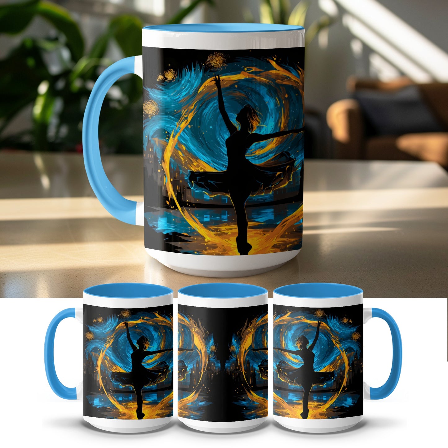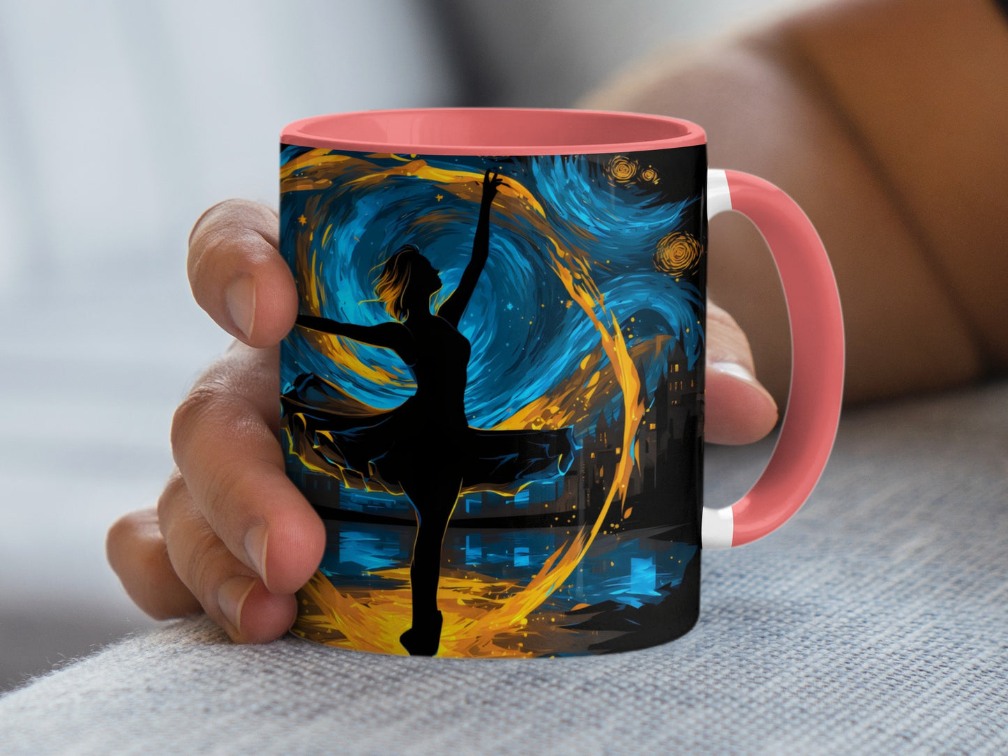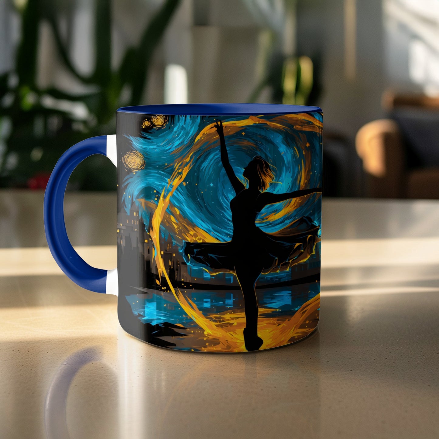 Artistic Ballerina Silhouette Under Starry Sky Design Mug