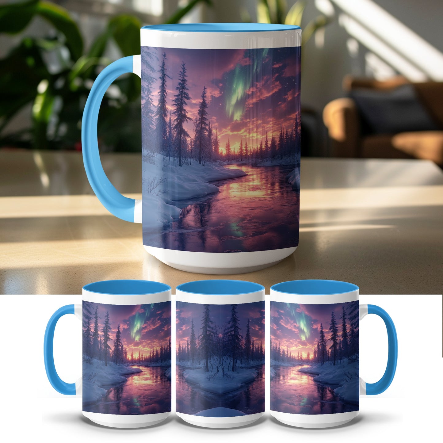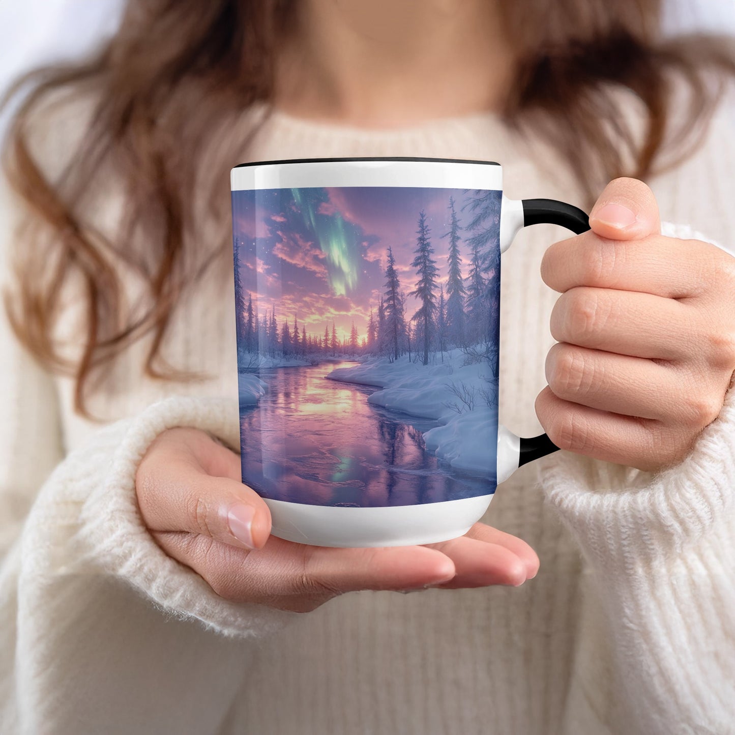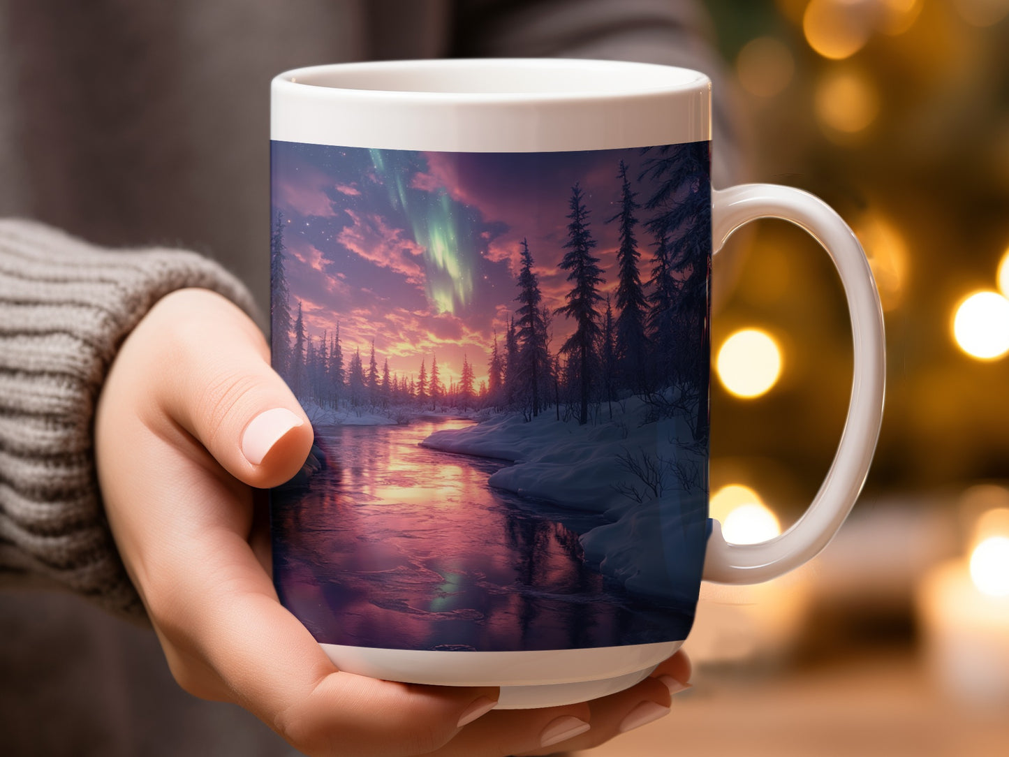 Winter Aurora Reflections Landschaftskunst-Design Tasse