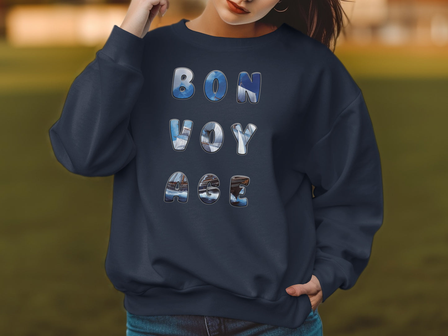 Bon Voyage Maritimes Segelschiff Schriftzug Art T-Shirt