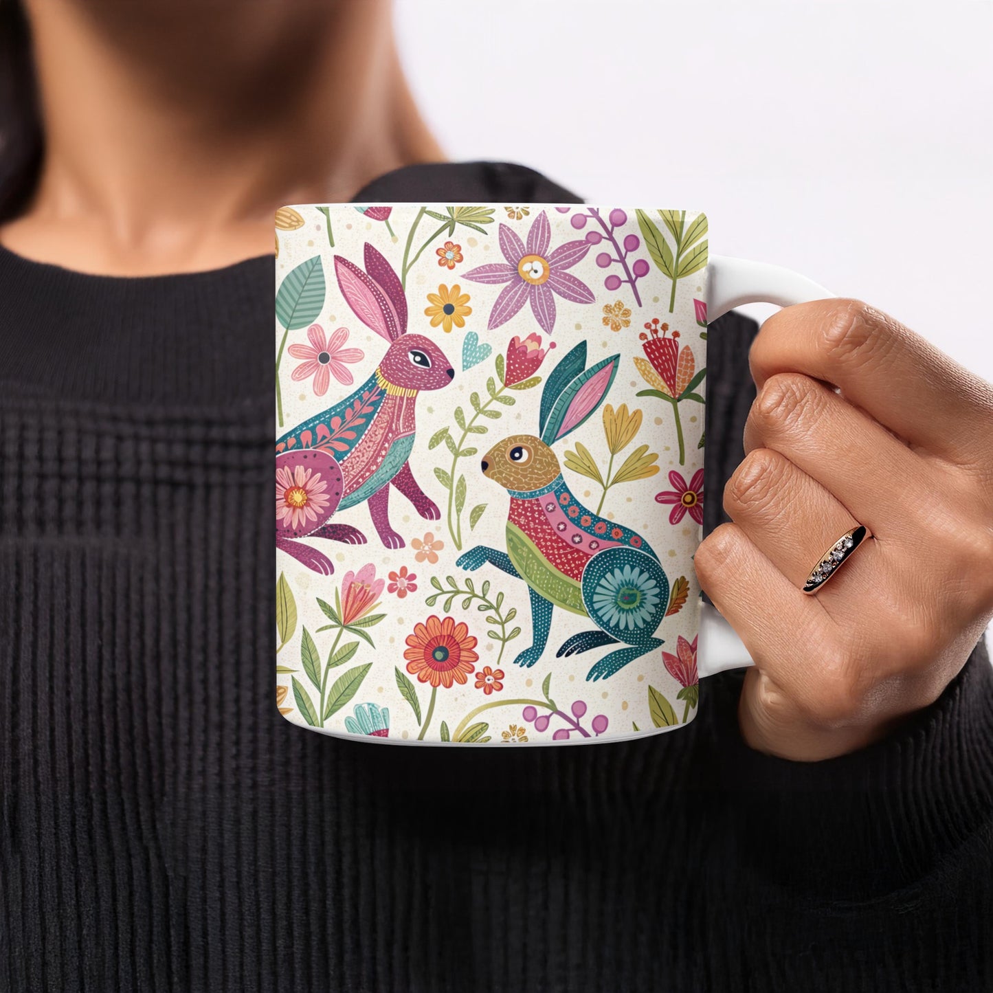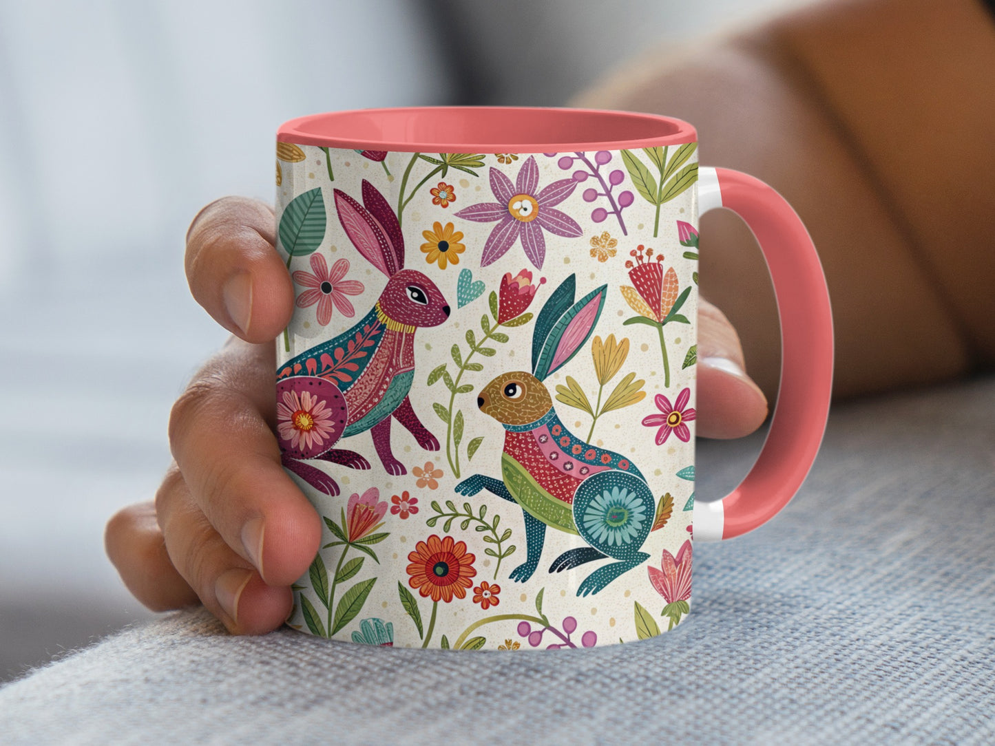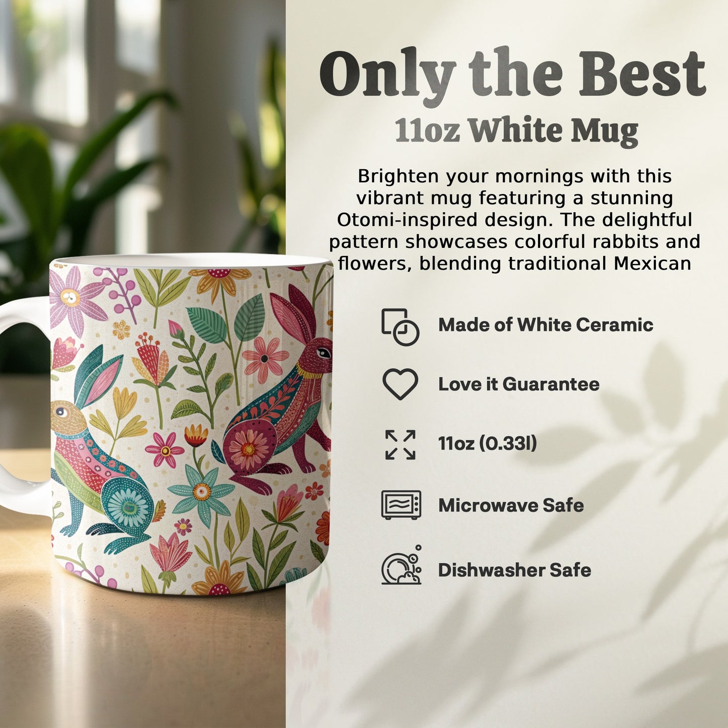 Colorful Otomi Floral Rabbit Pattern Pretty Designed Mug