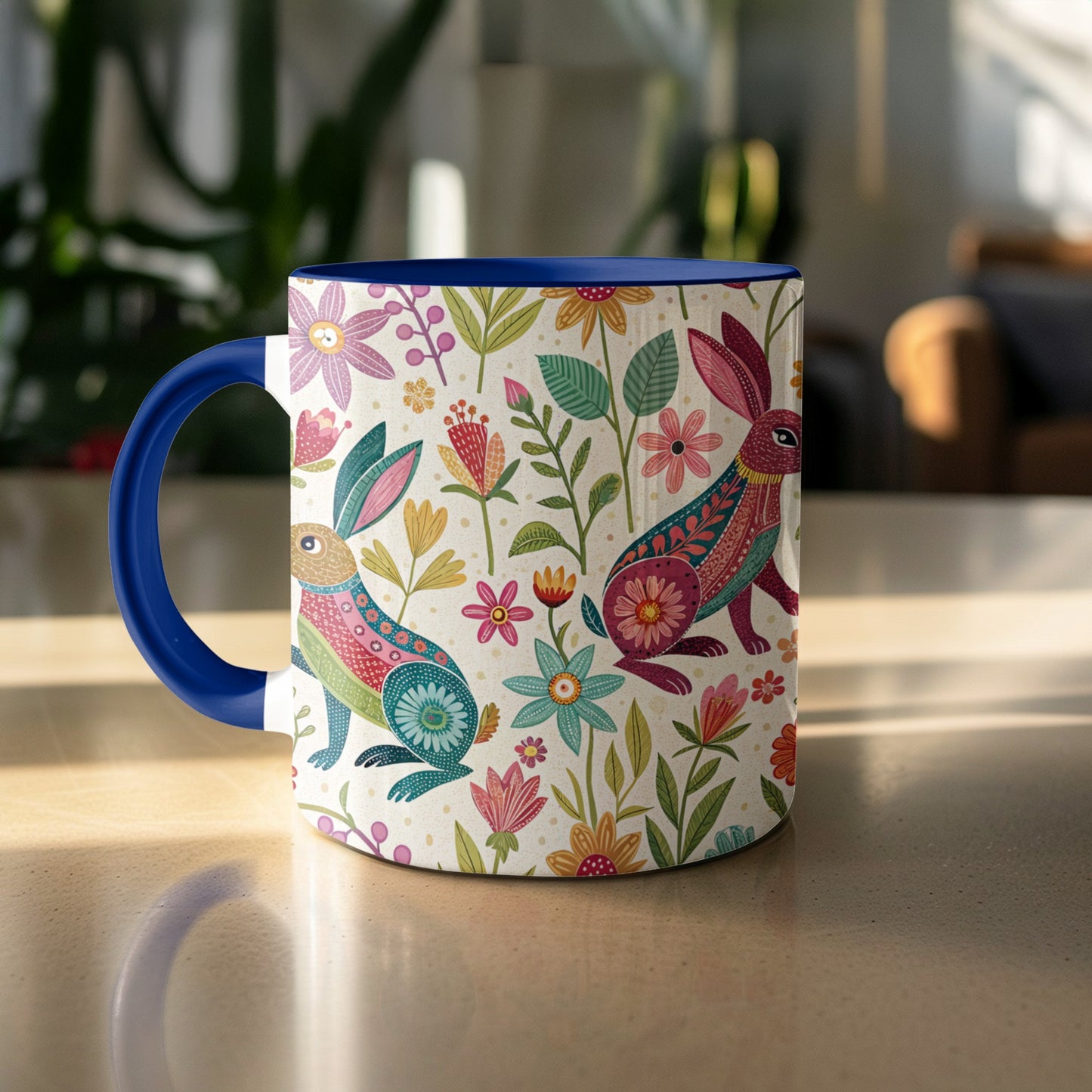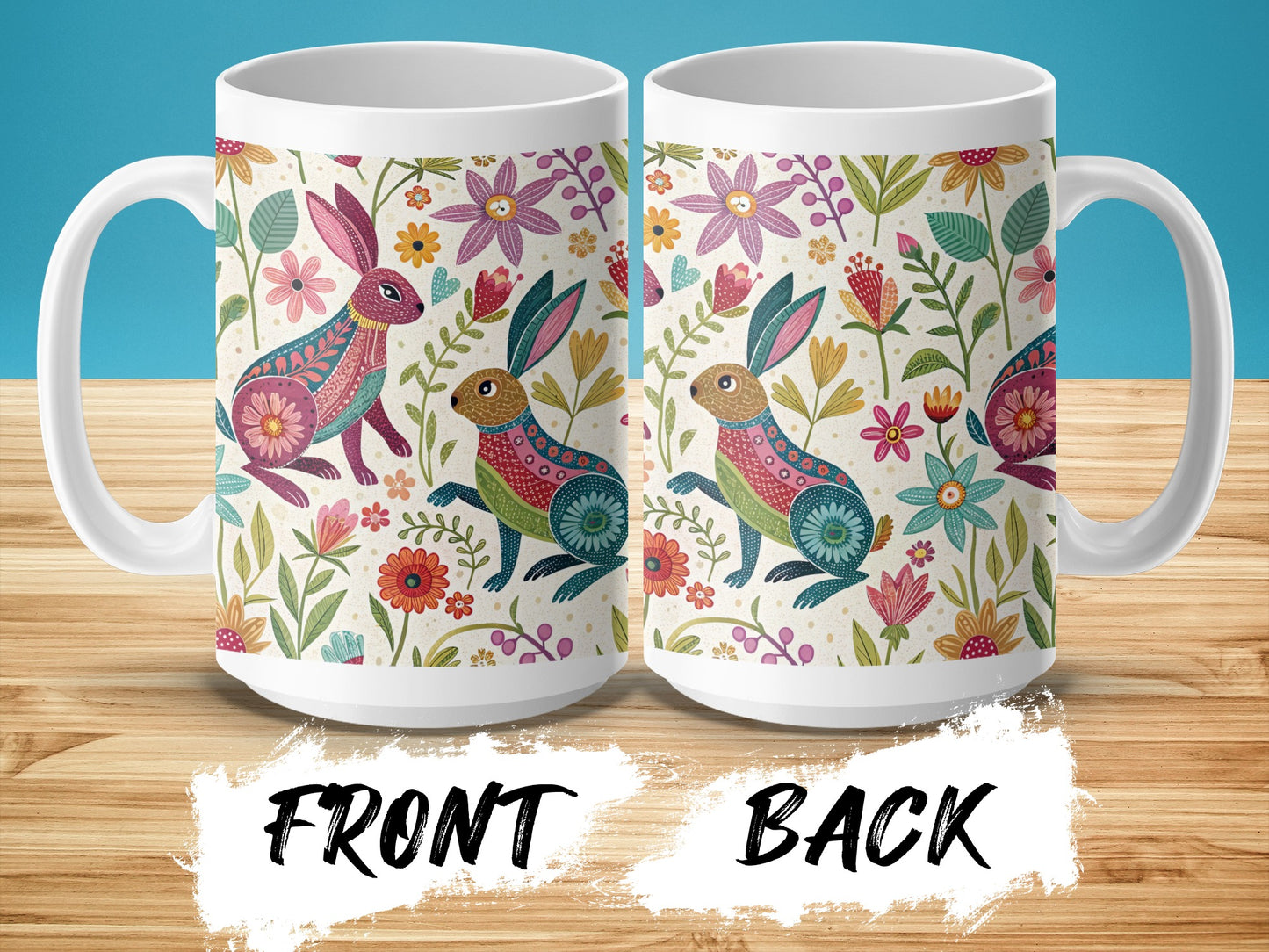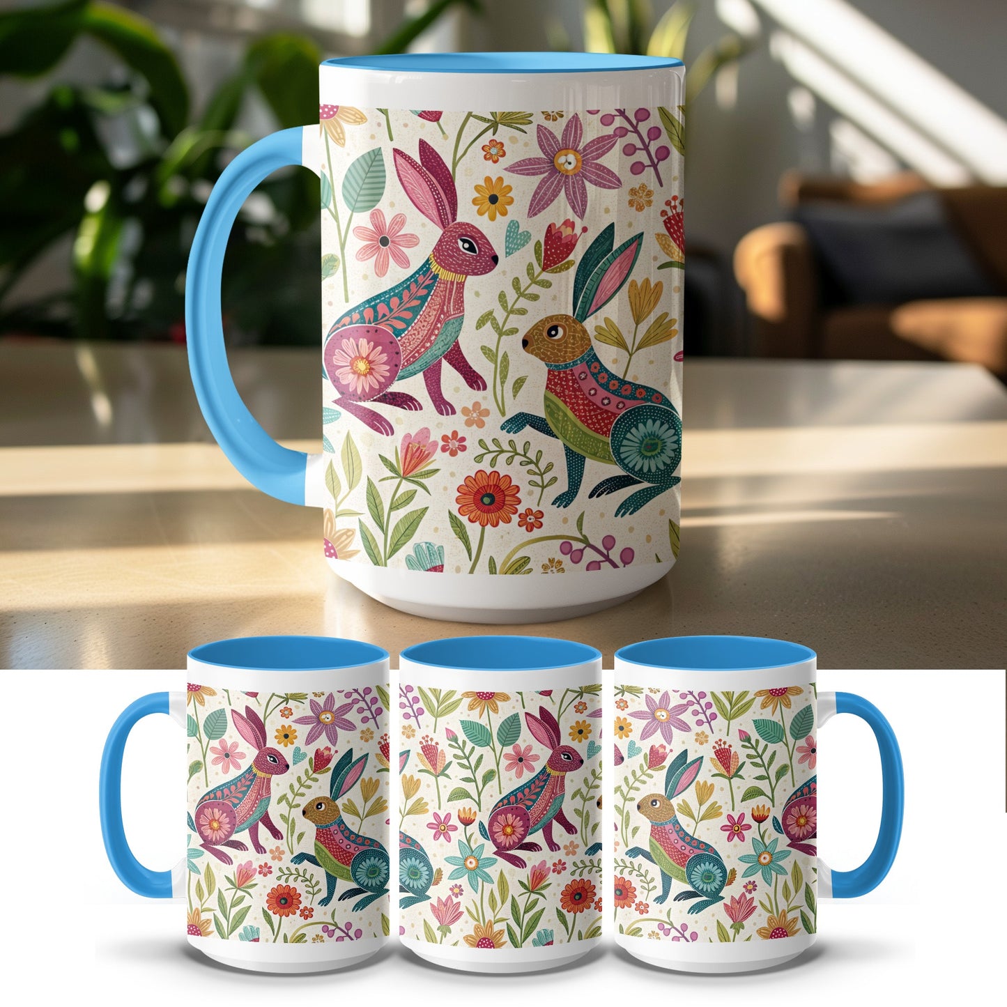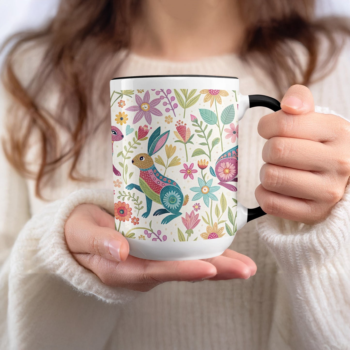 Colorful Otomi Floral Rabbit Pattern Pretty Designed Mug