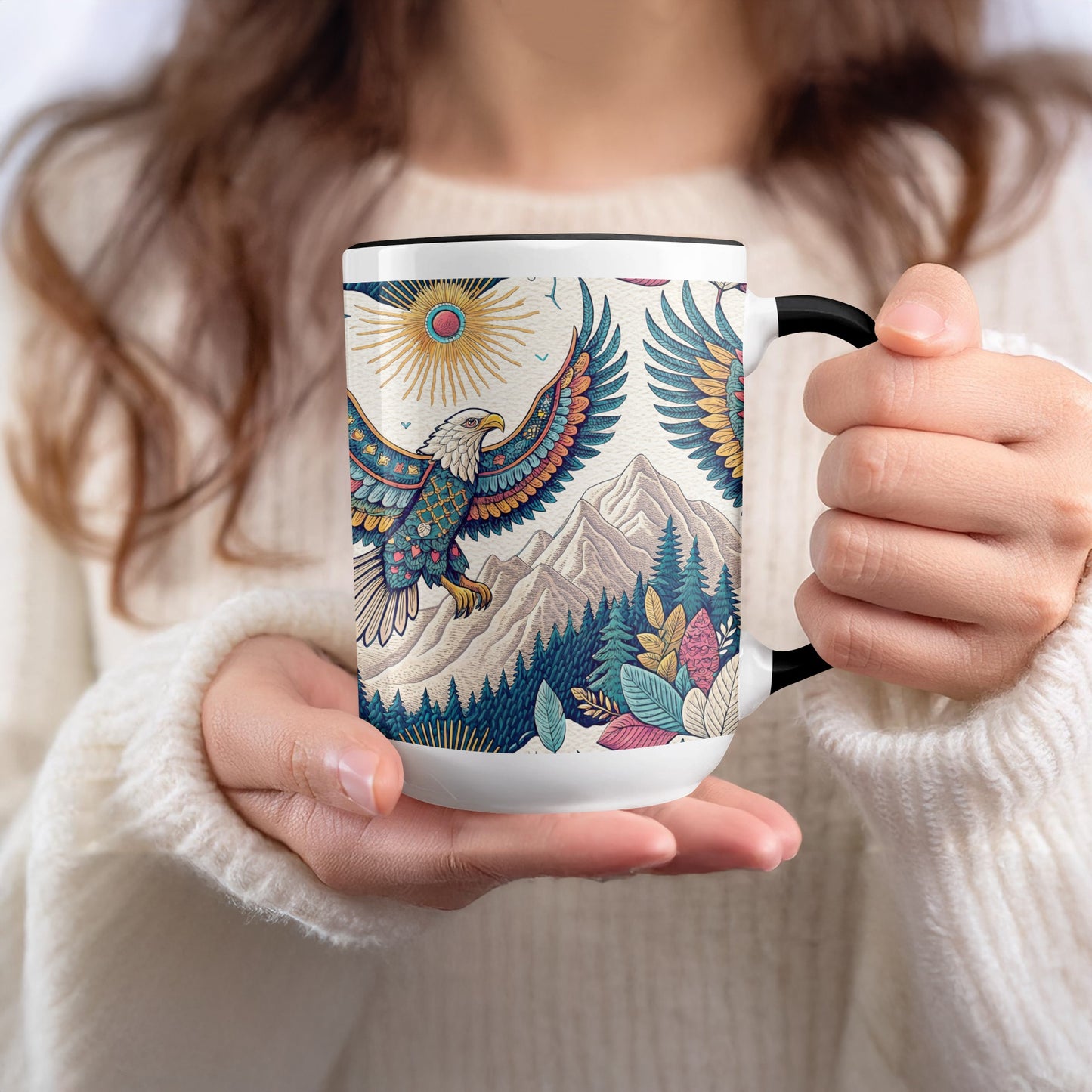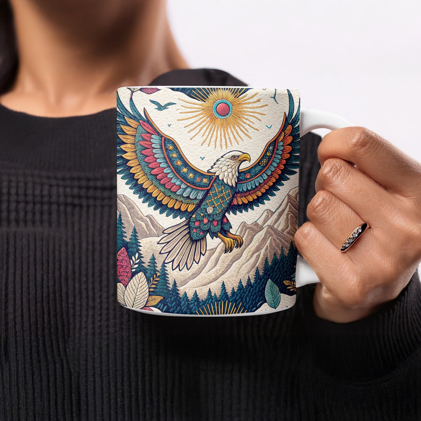 Colorful Otomi Inspired Eagle Design Artistic Gift Mug