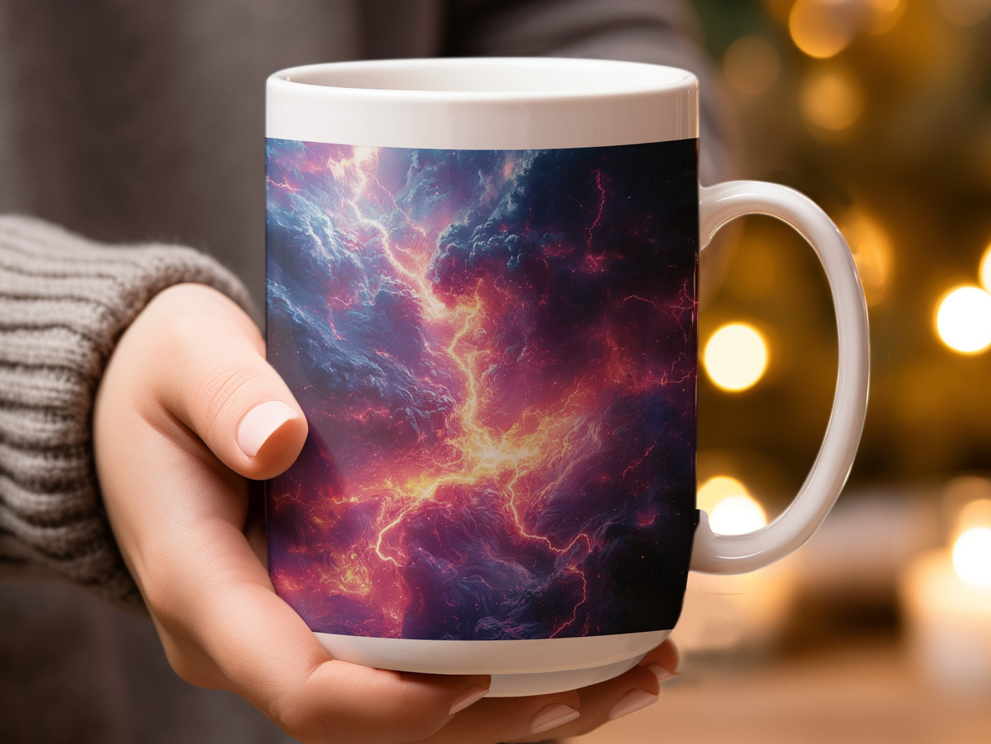 Elevate your mug collection with this stunning cosmic energy design featuring a vibrant nebula. Perfect for space lovers add a touch of the universe to your daily brew.