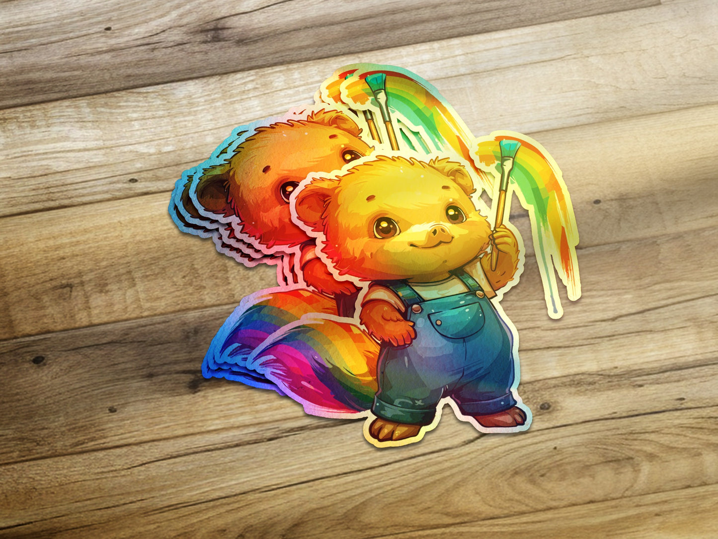 Bringen Sie mit diesem süßen Bärenaufkleber einen Hauch von Farbe in Ihr Zuhause! Mit einem fröhlichen Bären, der einen Regenbogen malt, ist er perfekt, um Ihrem Laptop, Telefon, Ihrer Wasserflasche und vielem mehr etwas Freude zu verleihen.