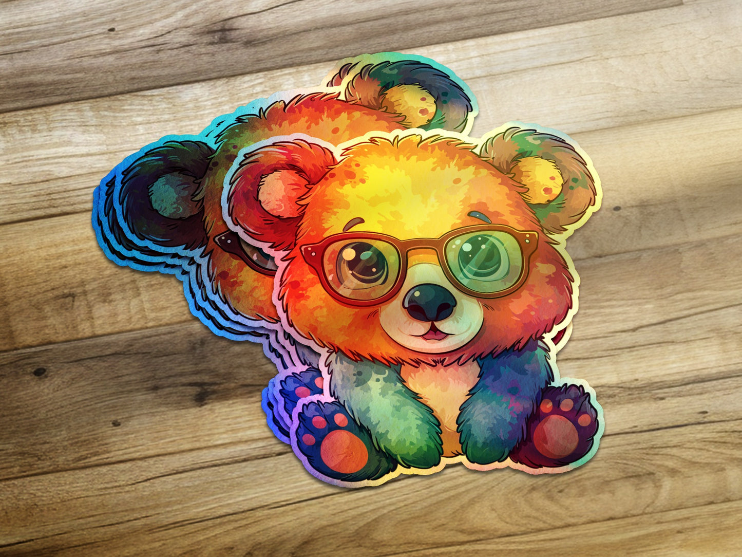 Niedlicher Aufkleber mit einem bunten Cartoon-Bären mit Brille! Perfekt für Laptops, Wasserflaschen oder andere Oberflächen. Hol dir jetzt deinen!