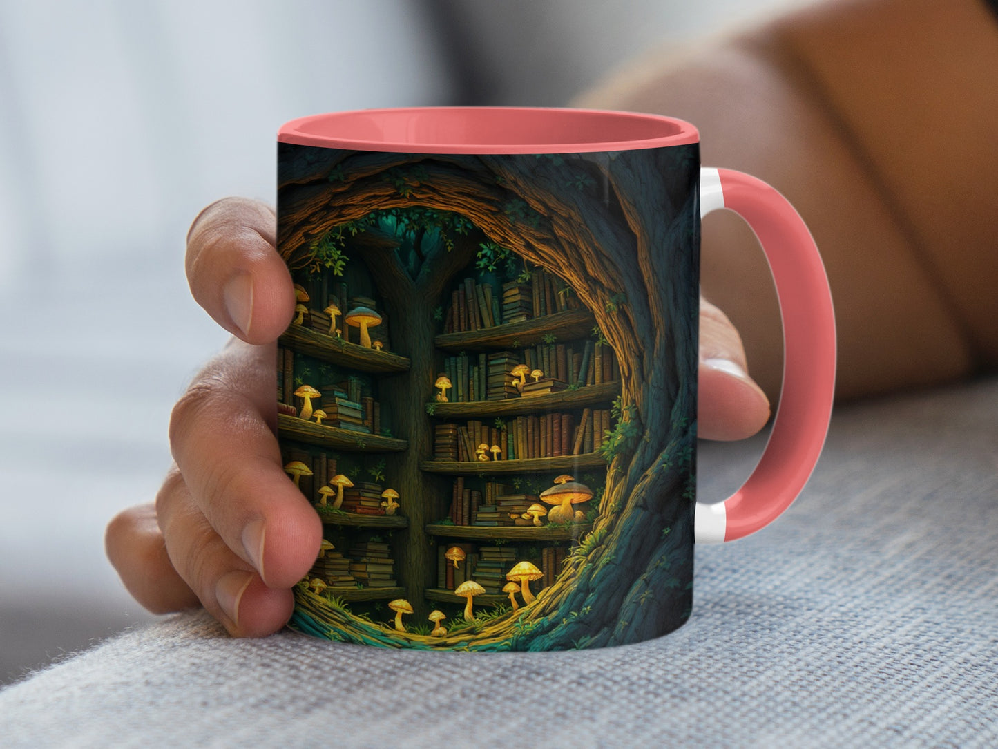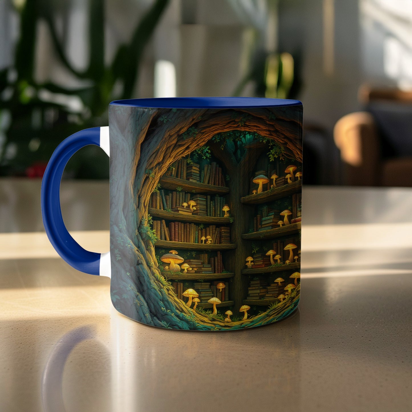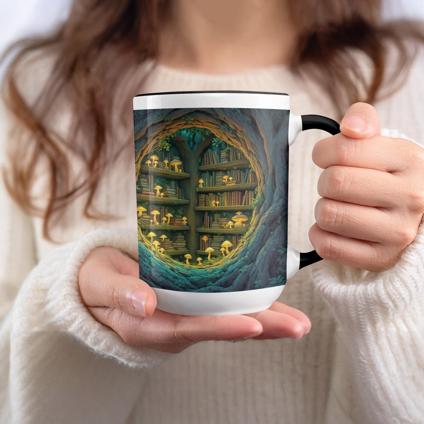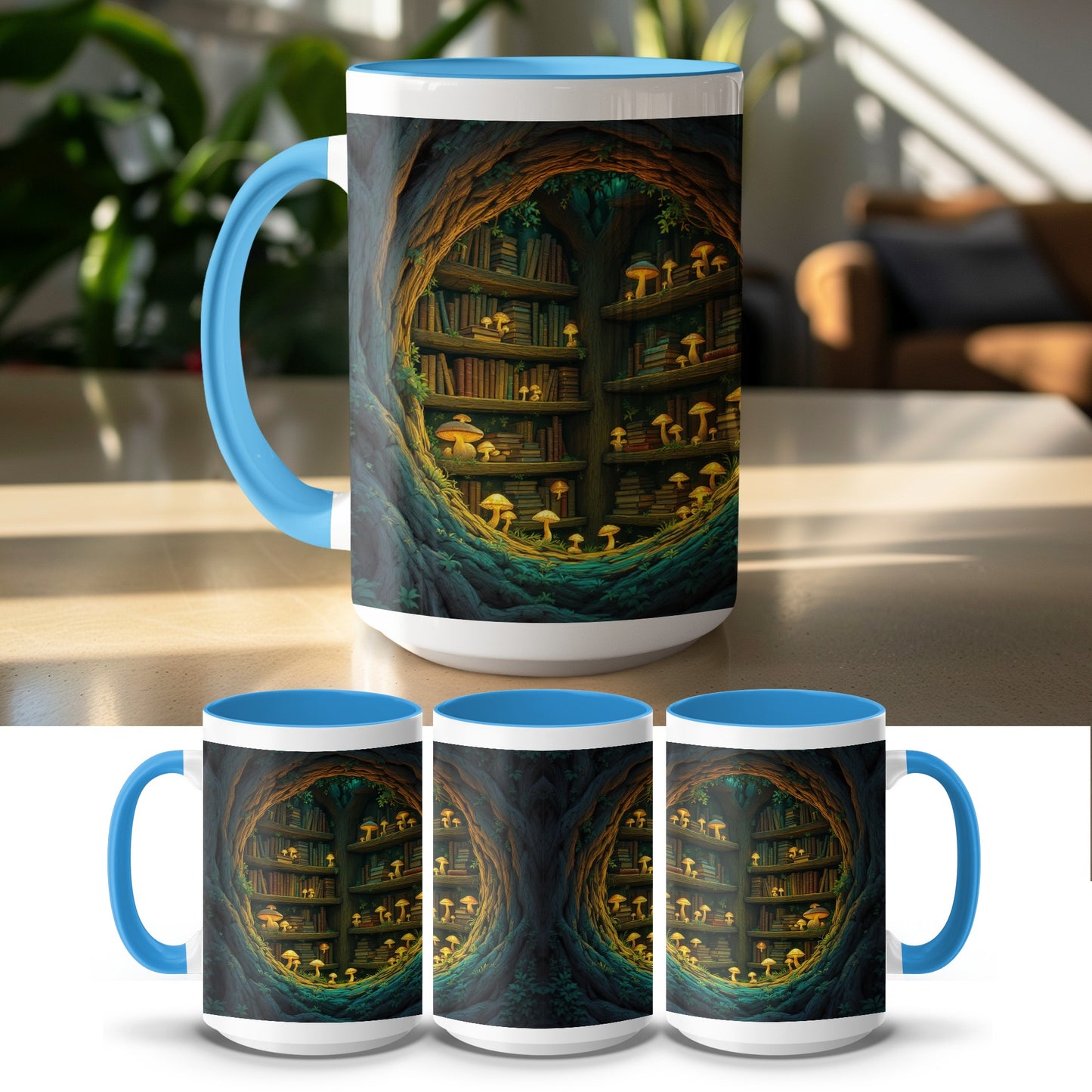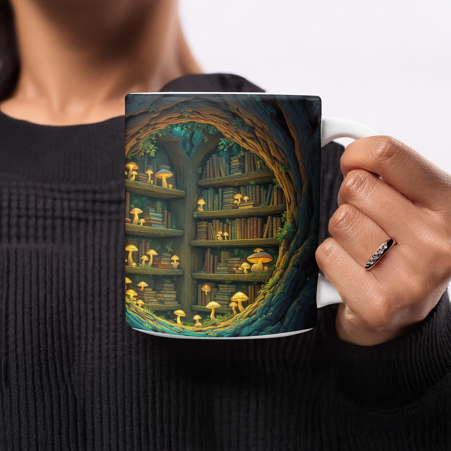 Enchanted Forest Library Shelf with Glowing Mushrooms Mug