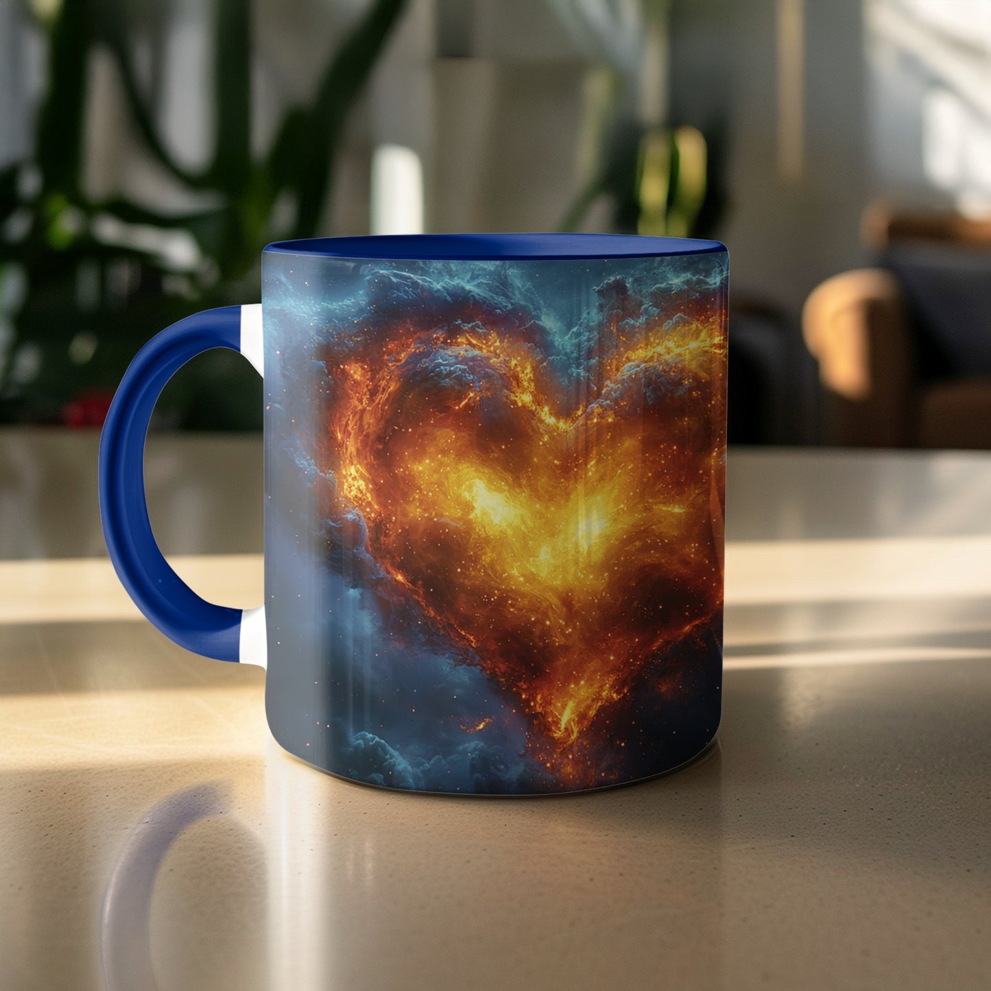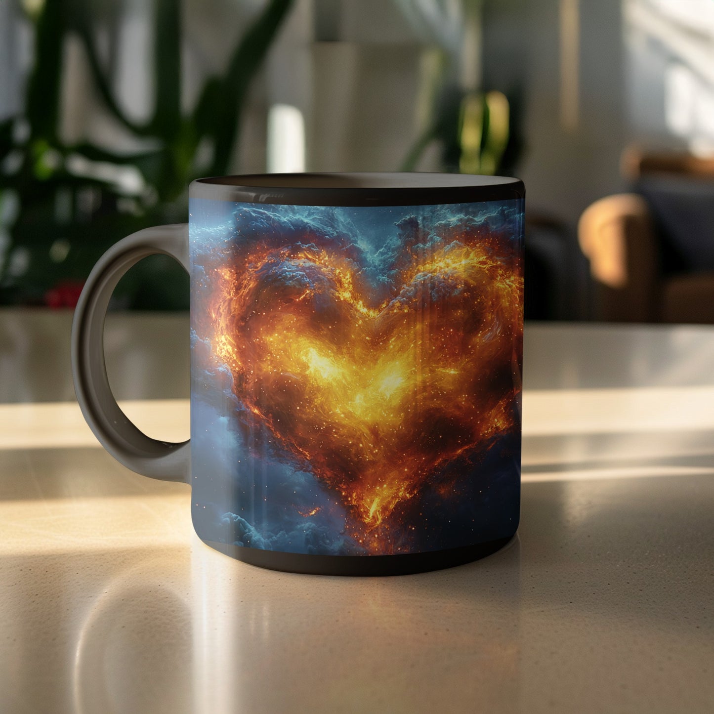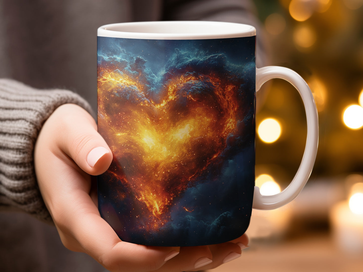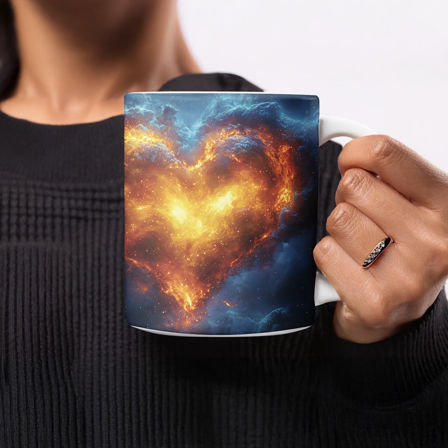 Feurige Galaxie Herzform Visuell spektakuläre Weltraumtasse