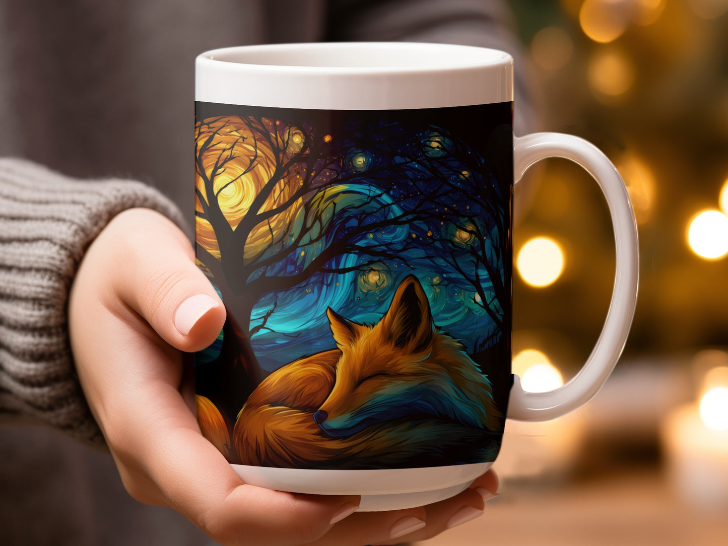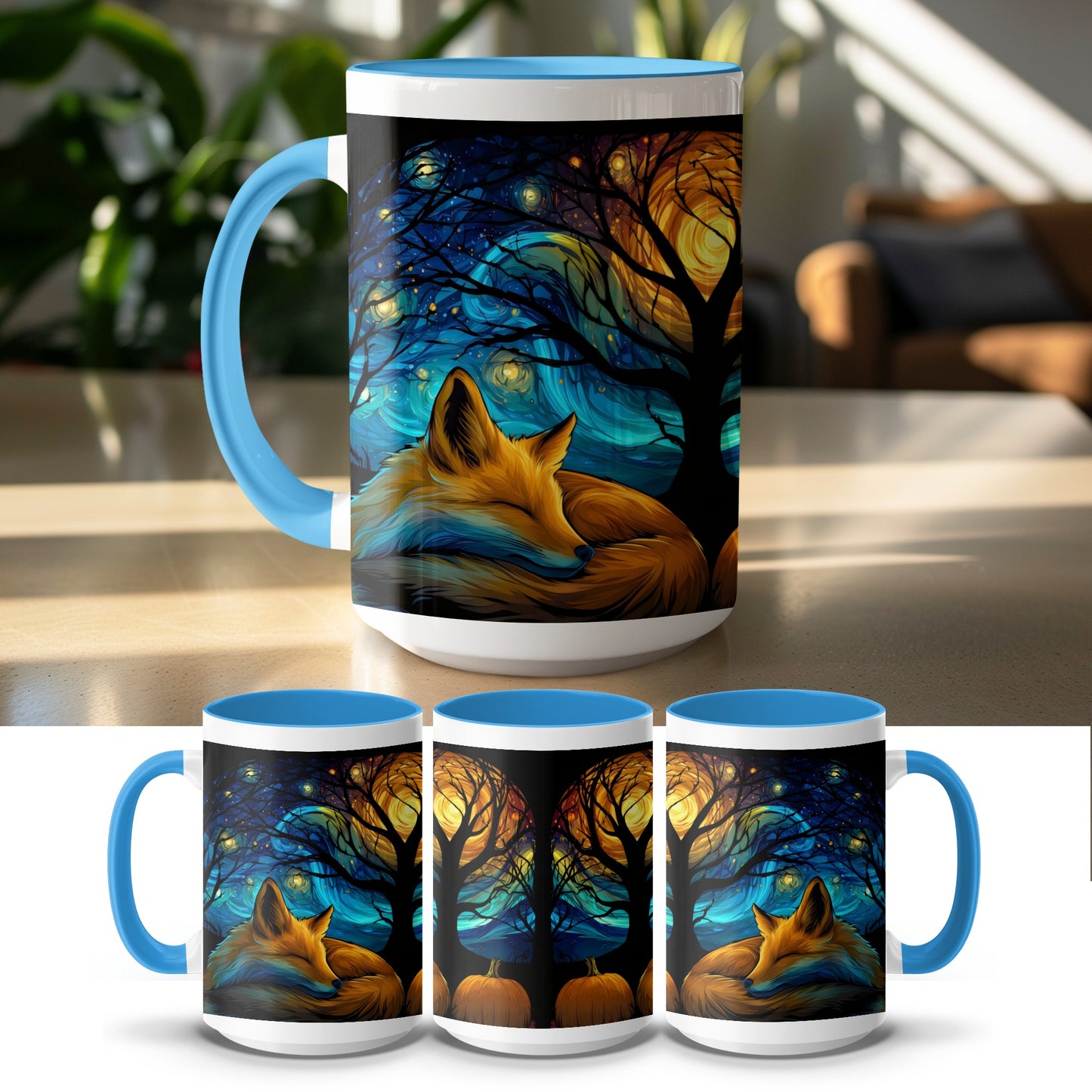Fox Pumpkin Night Stars Artistic Design Perfect Gift Mug