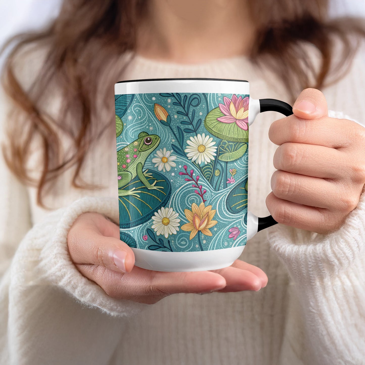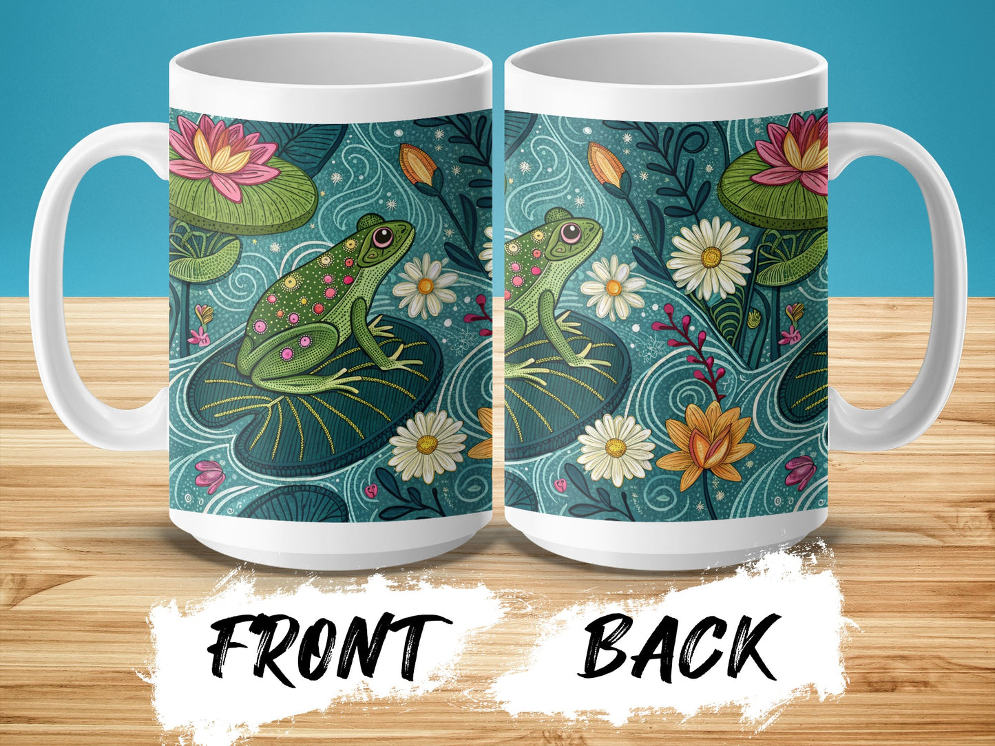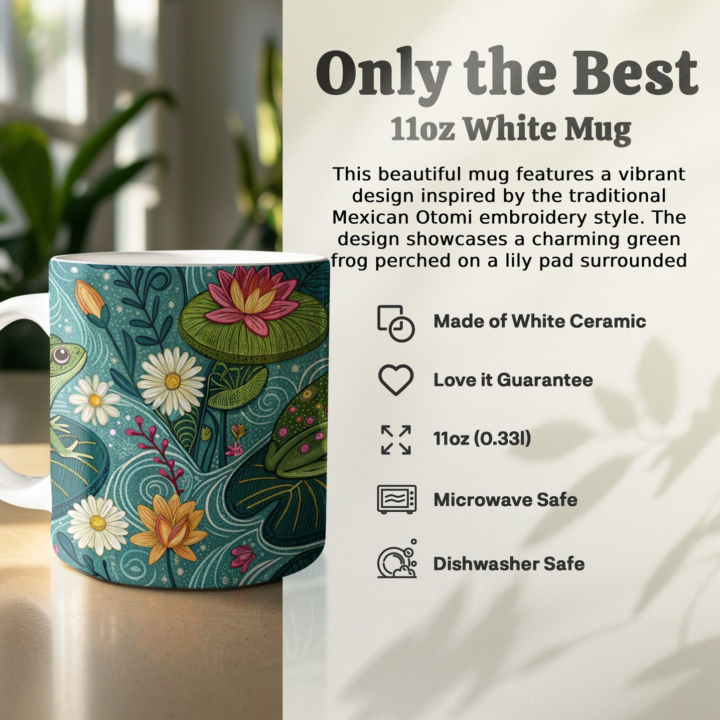 Frog Lotus Flowers Mexican Otomi Embroidery Style Mug
