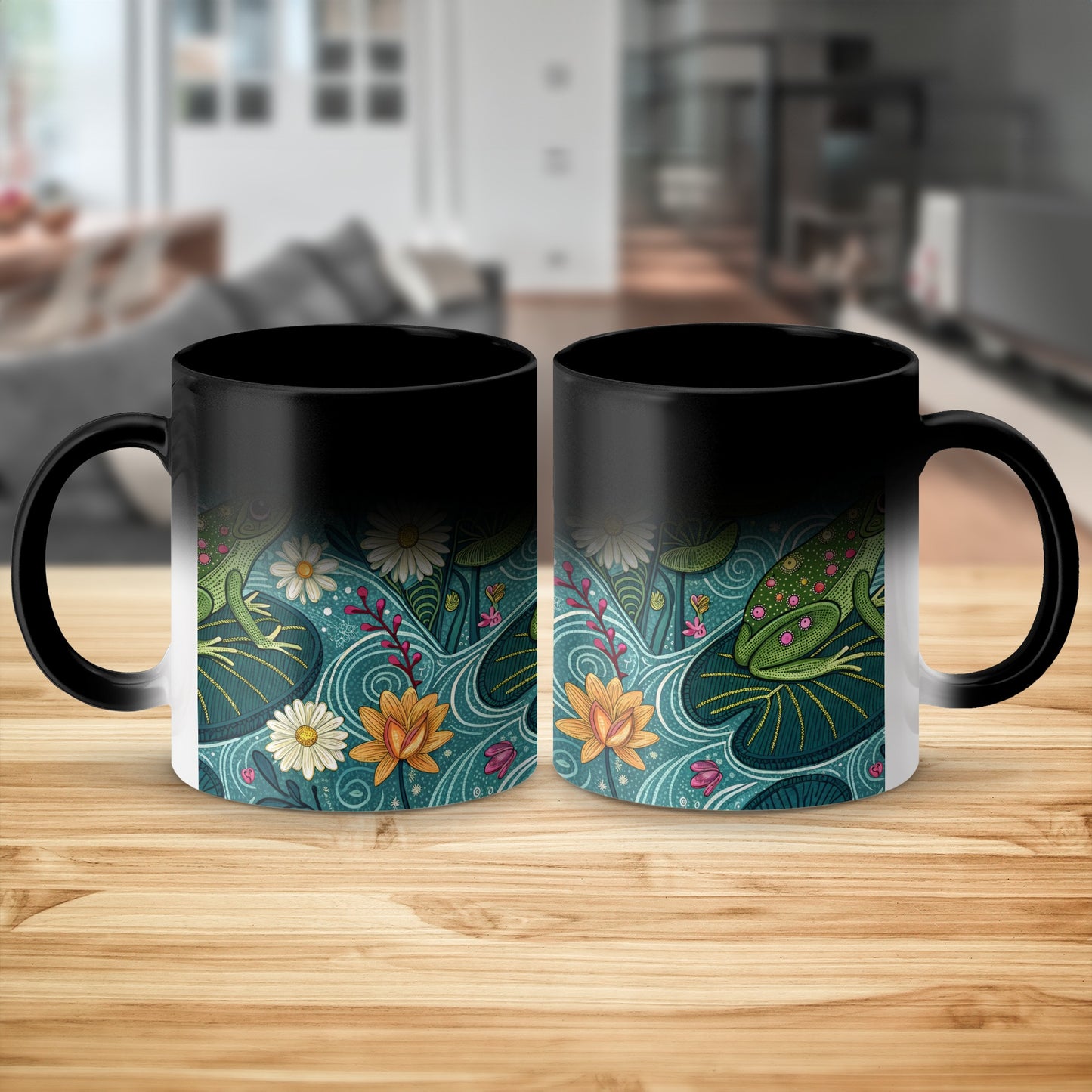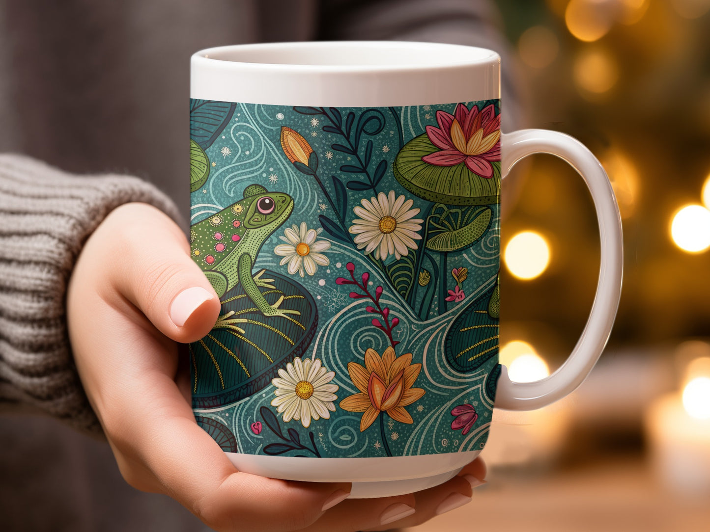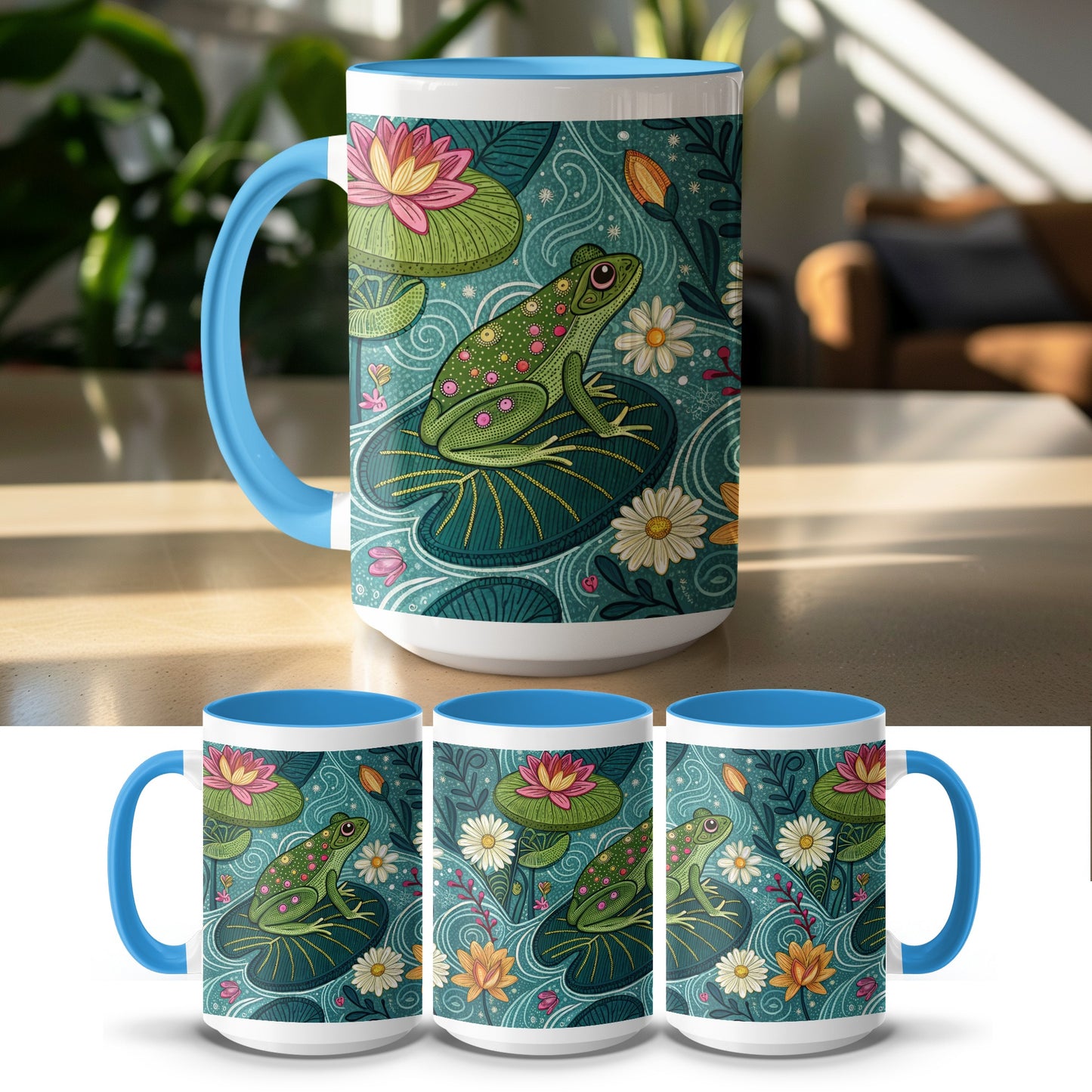Frog Lotus Flowers Mexican Otomi Embroidery Style Mug