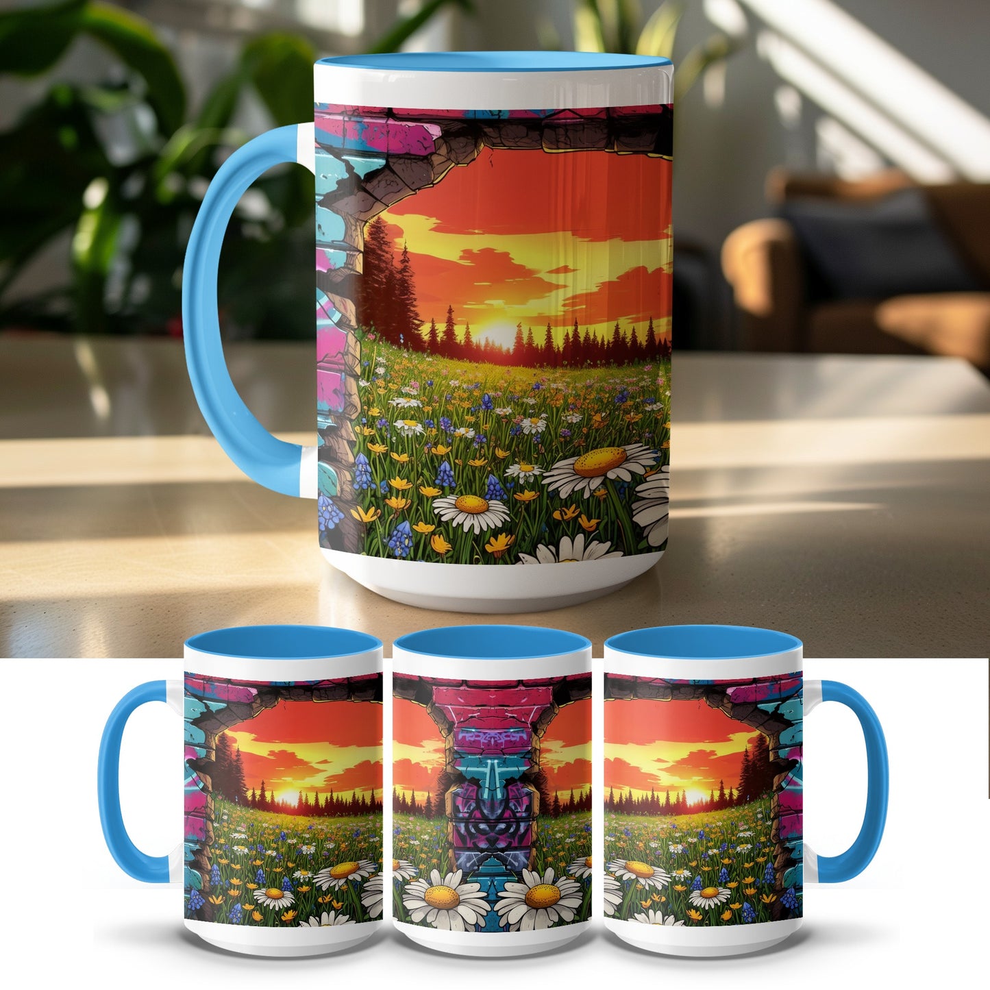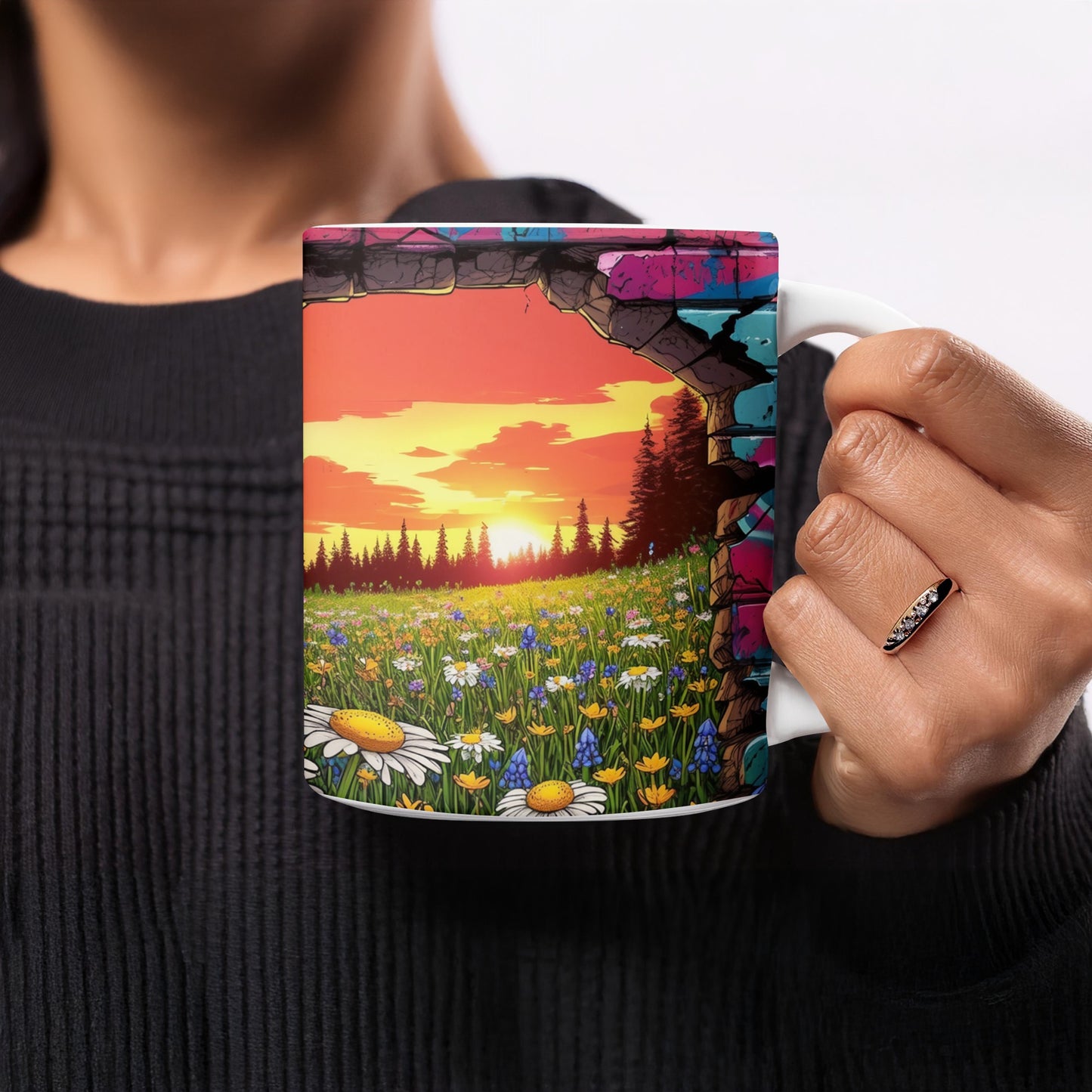 Graffiti Sunset Meadow Artistic Design Image Print Mug