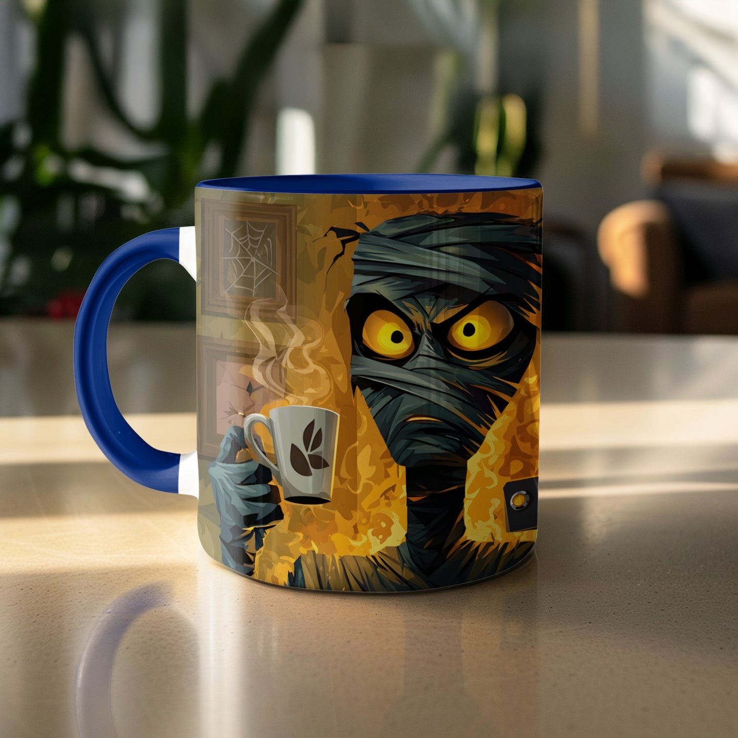Halloween-Mumie genießt Kaffee-Illustrationskunst Tasse