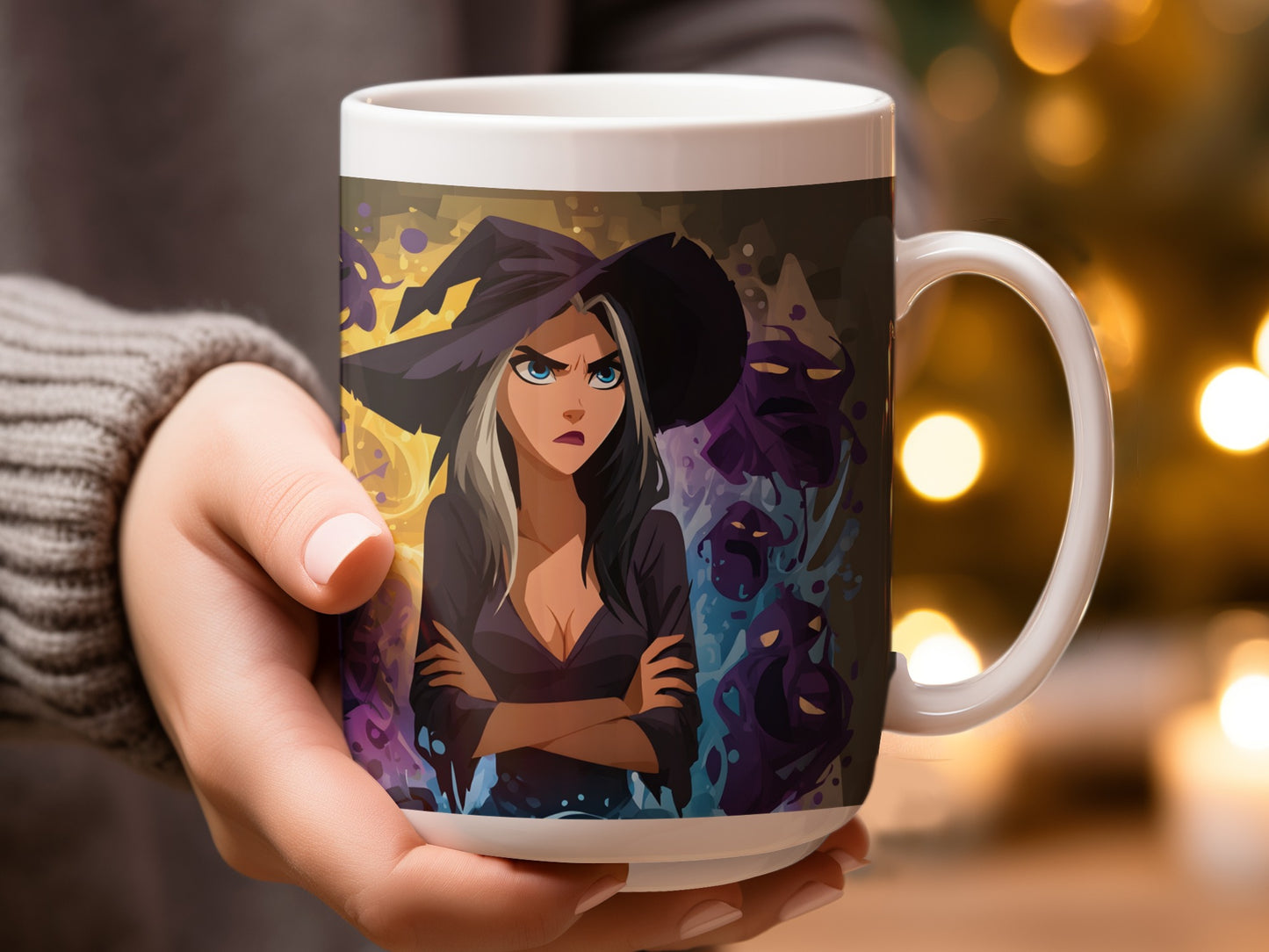 Cartoon Witch Mug: Colorful, Halloween, Modern Design