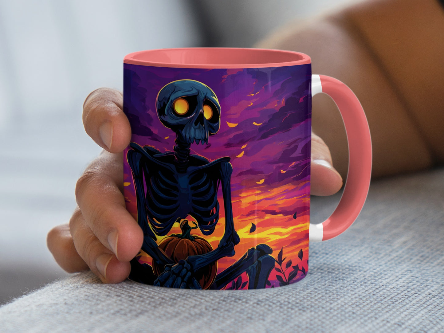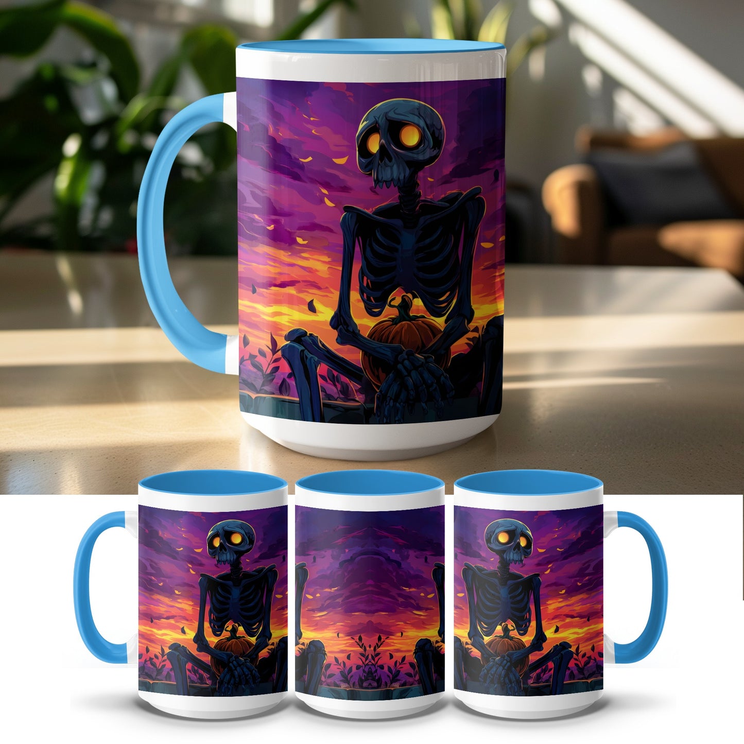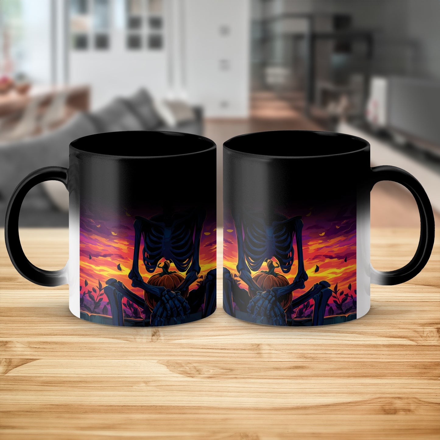 Halloween Skelette und Kürbisse Gruselige Sonnenuntergang Kunst Tasse