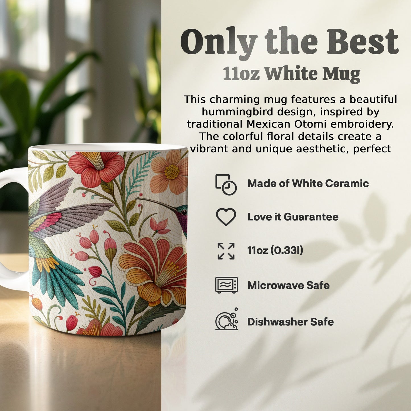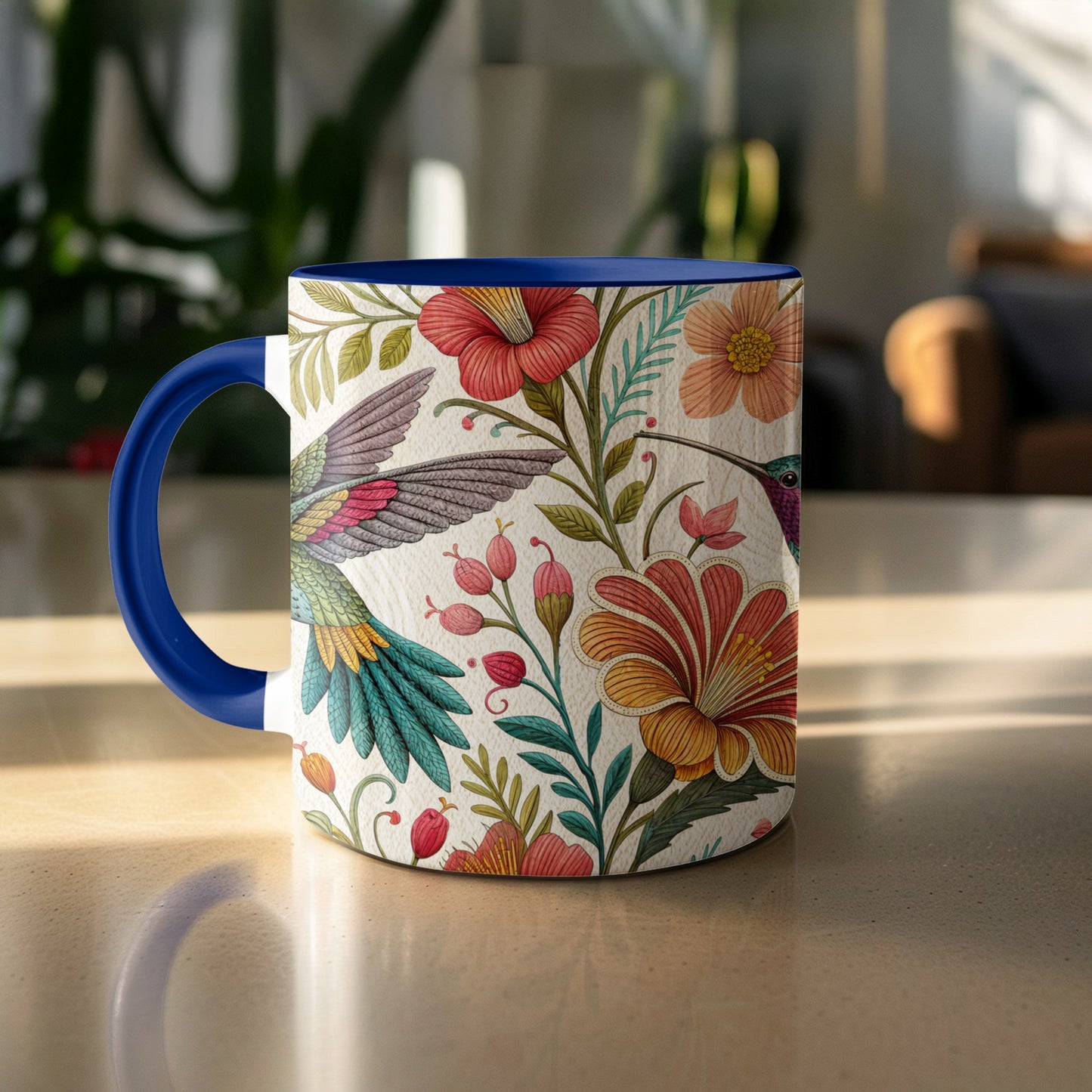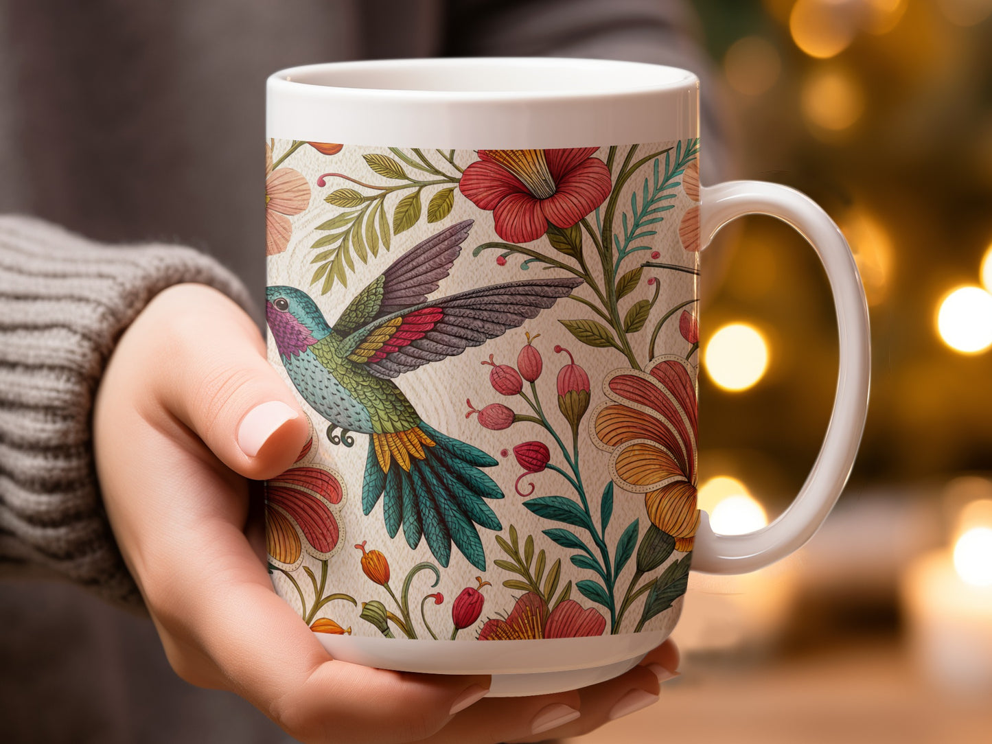 Hummingbird Floral Design Mexican Otomi Inspired Mug