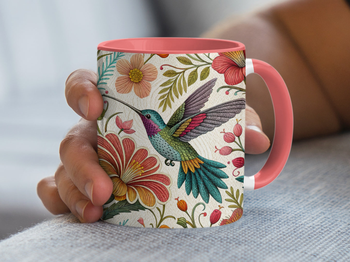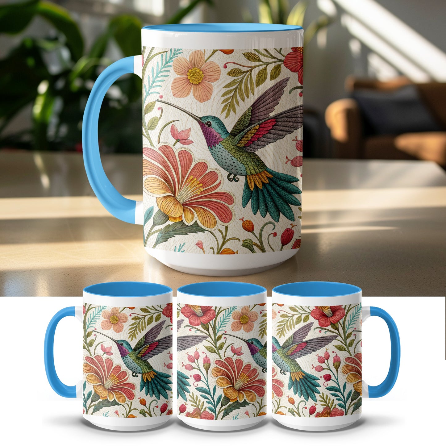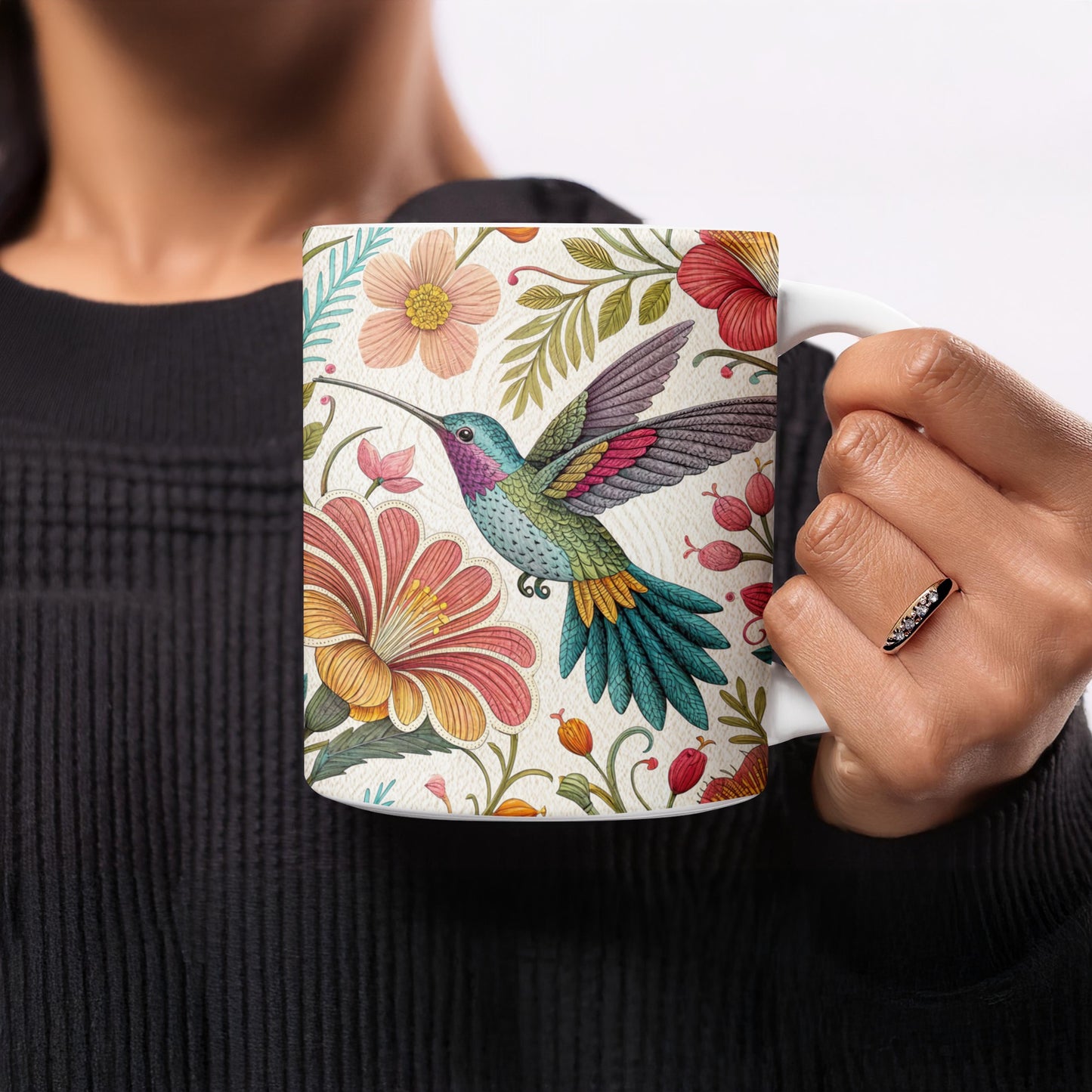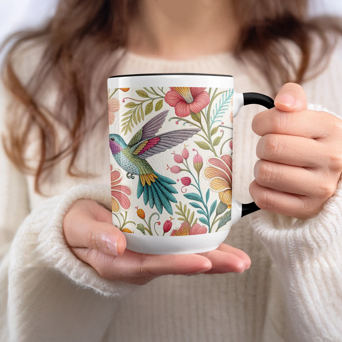 Hummingbird Floral Design Mexican Otomi Inspired Mug