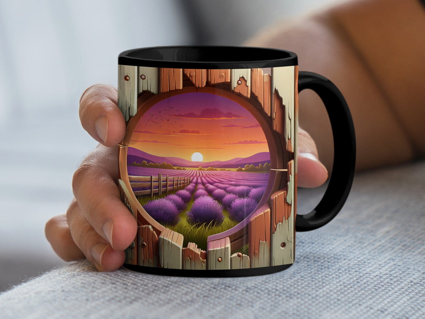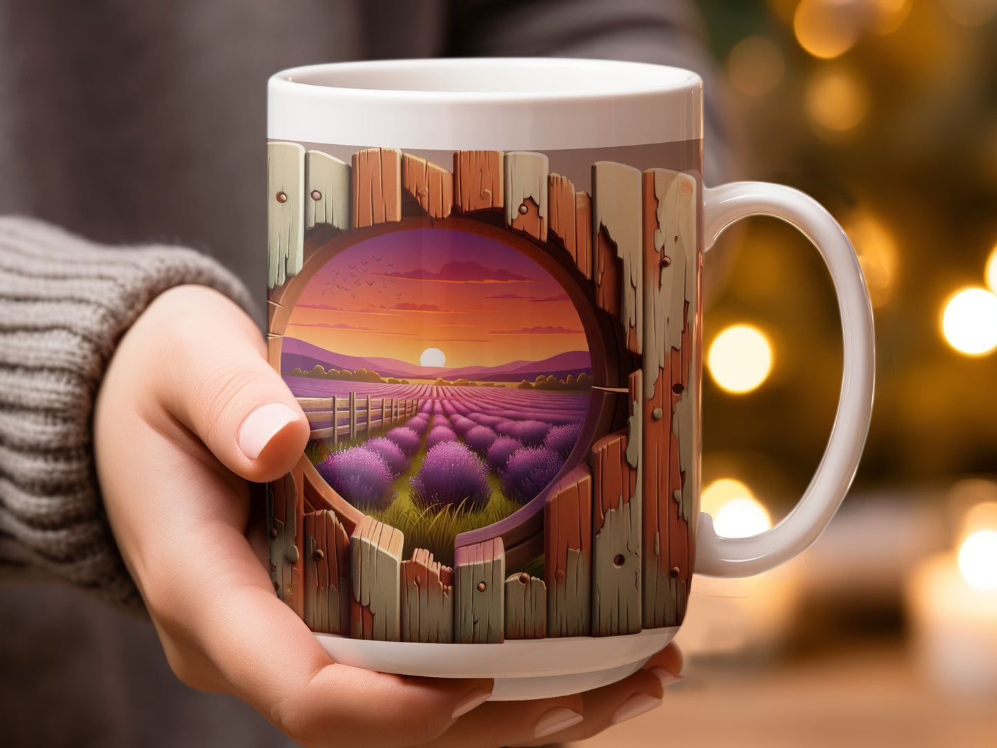 Lavender Field Through Wooden Doorway Design Decor Mug