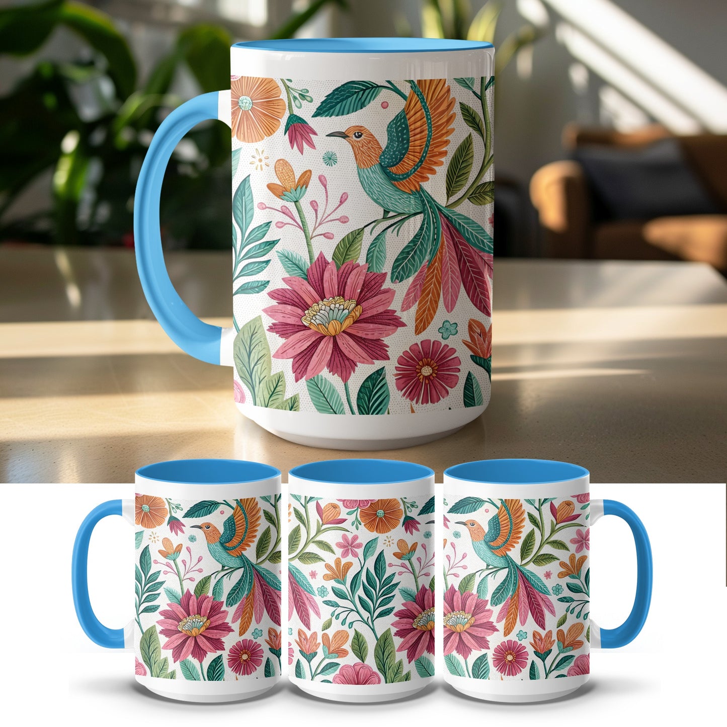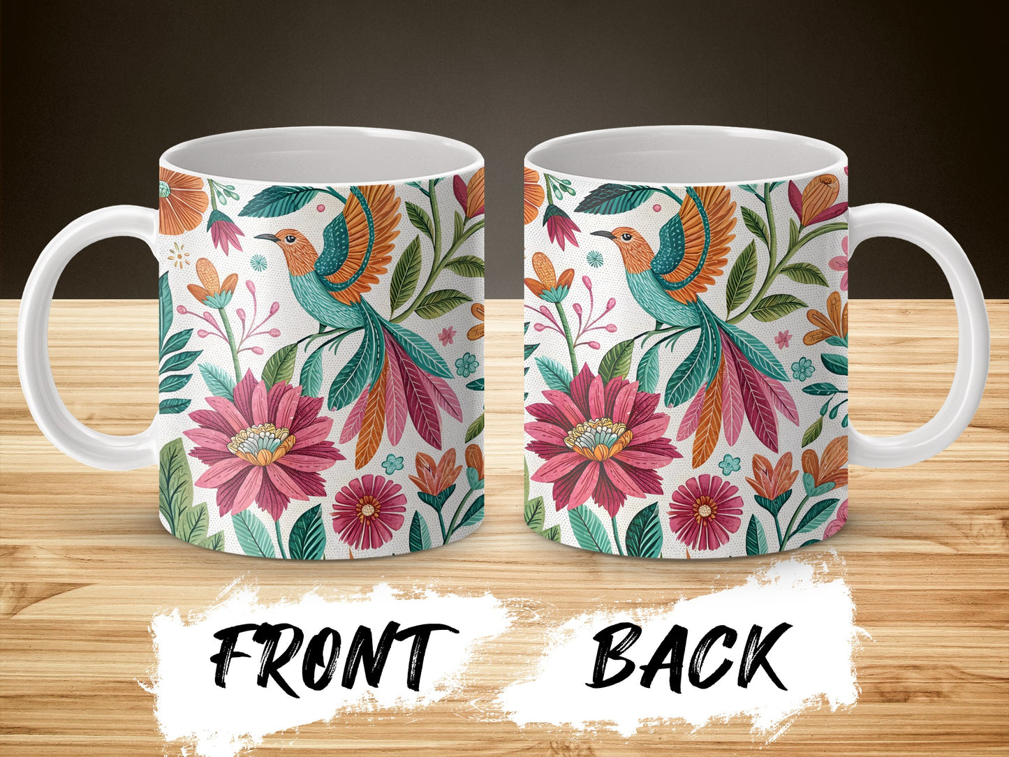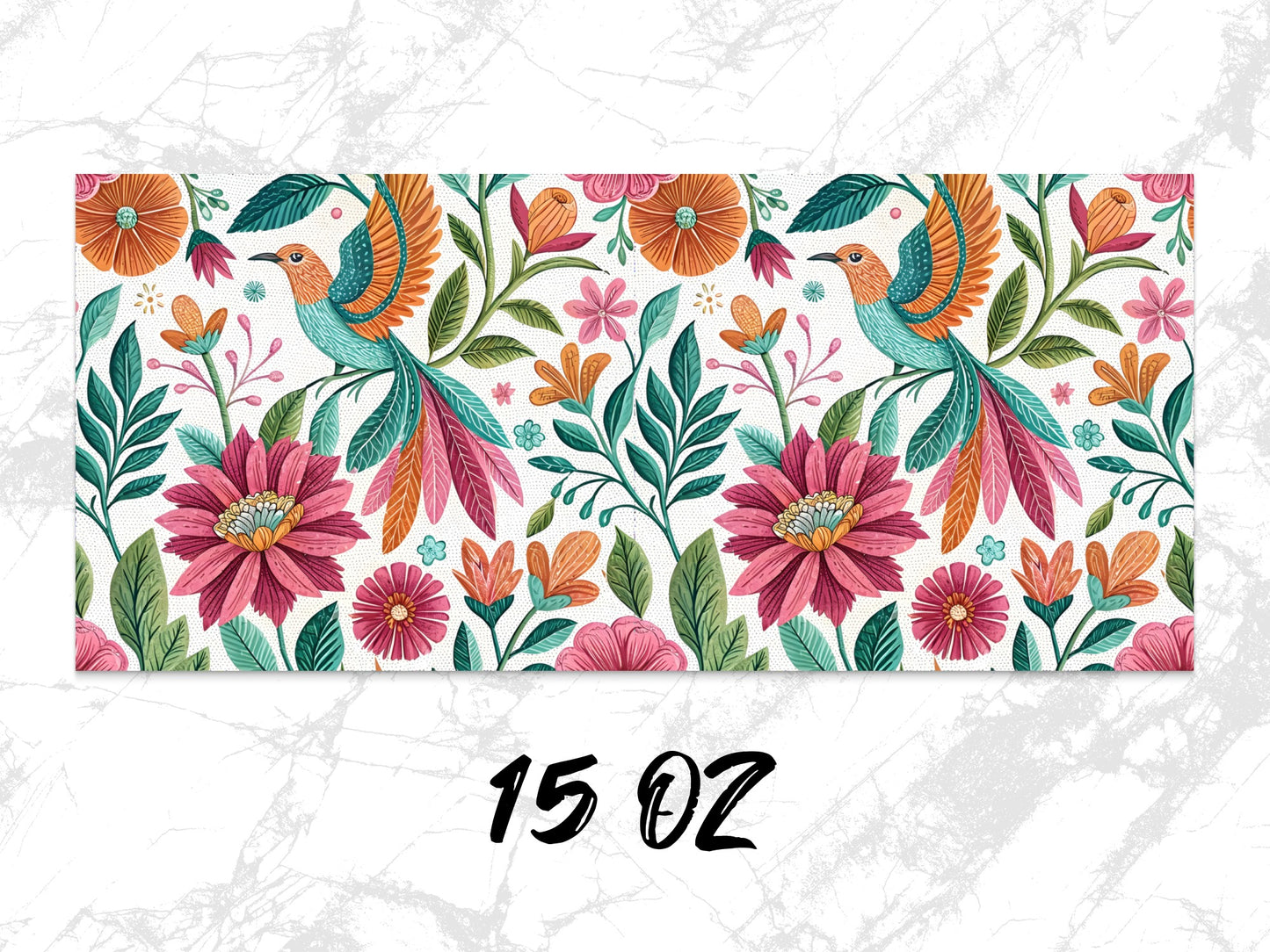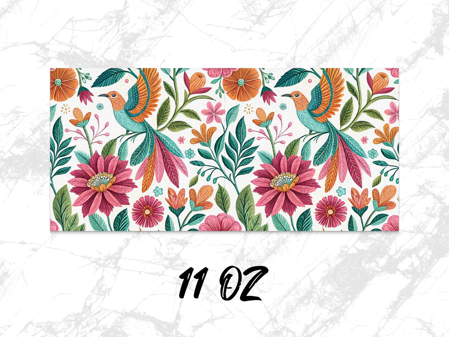 Discover vibrant Otomi embroidery inspired art with birds flowers print! Perfect addition to your decor. Download this digital product and create a stunning space.
