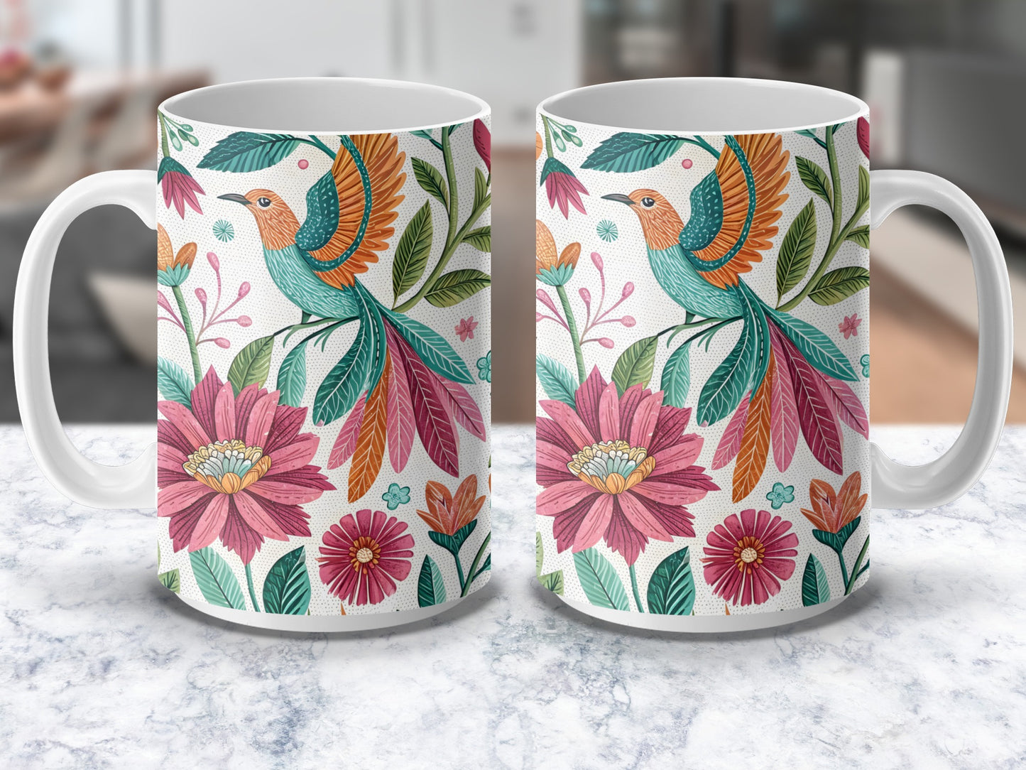 Otomi Birds Flowers Digital Print Wall Art Decor Digital