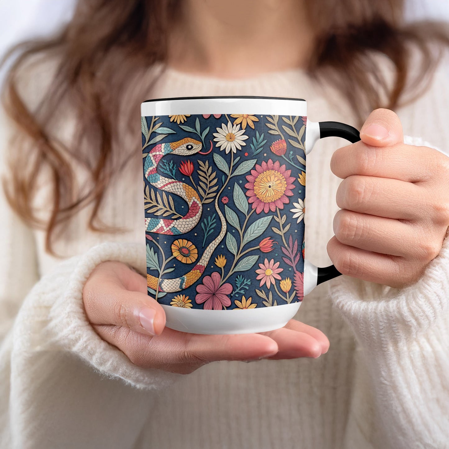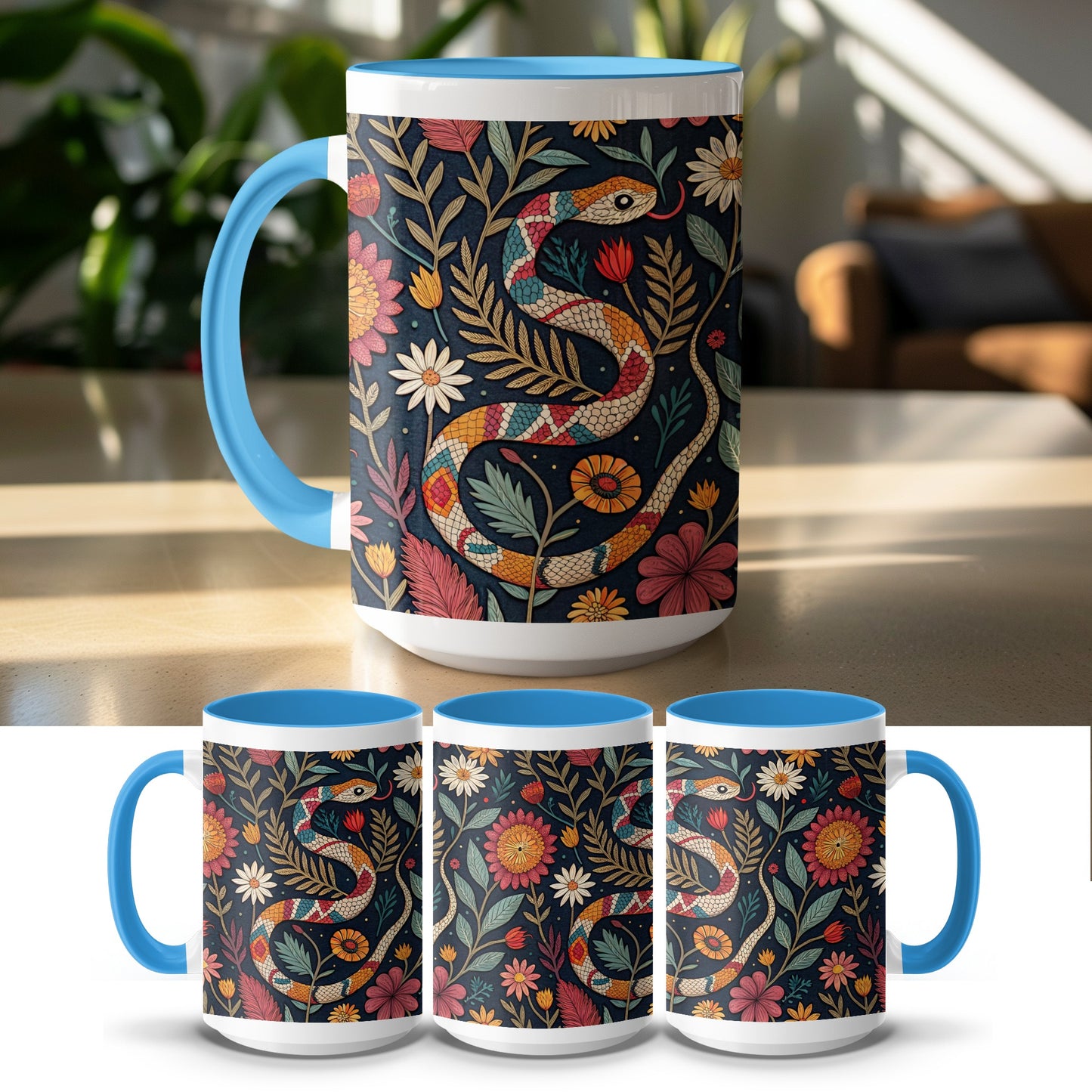 Otomi Embroidered Snake Floral Pattern Unique Design Mug