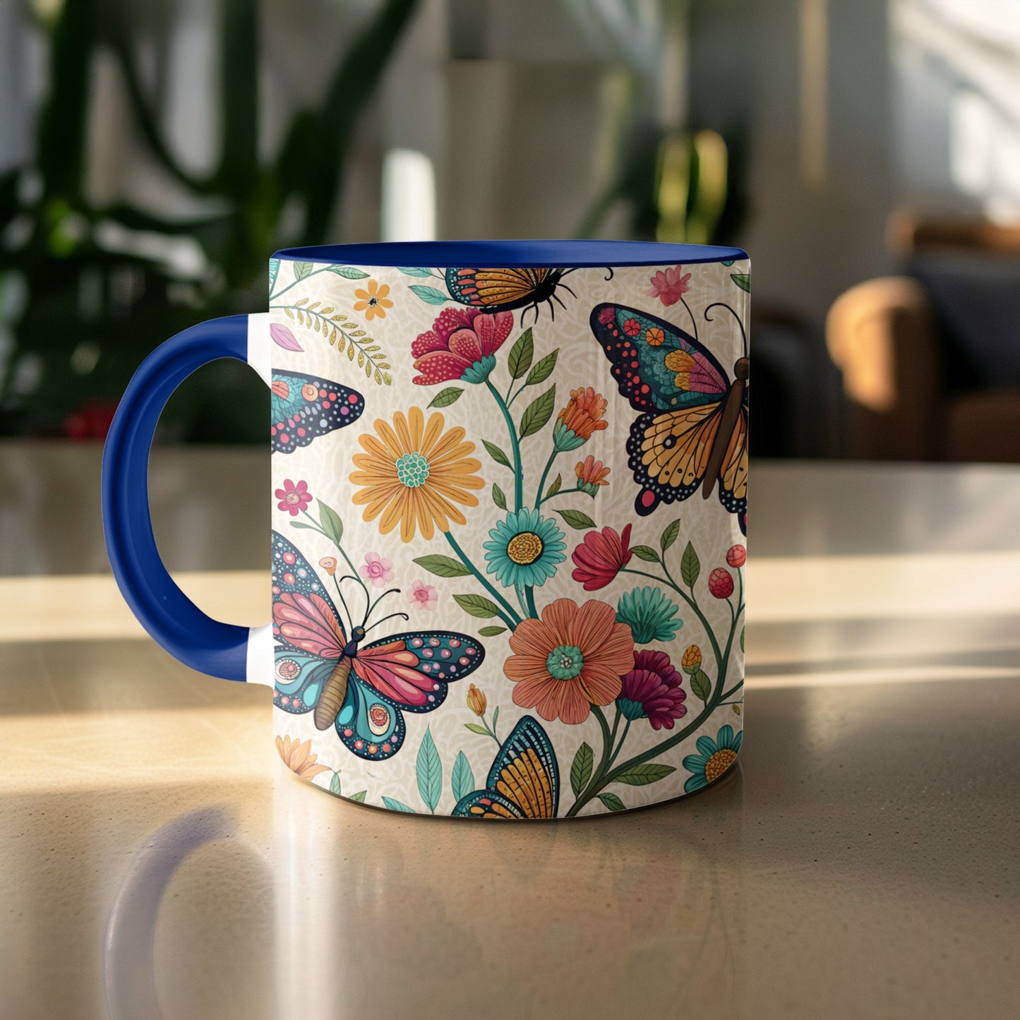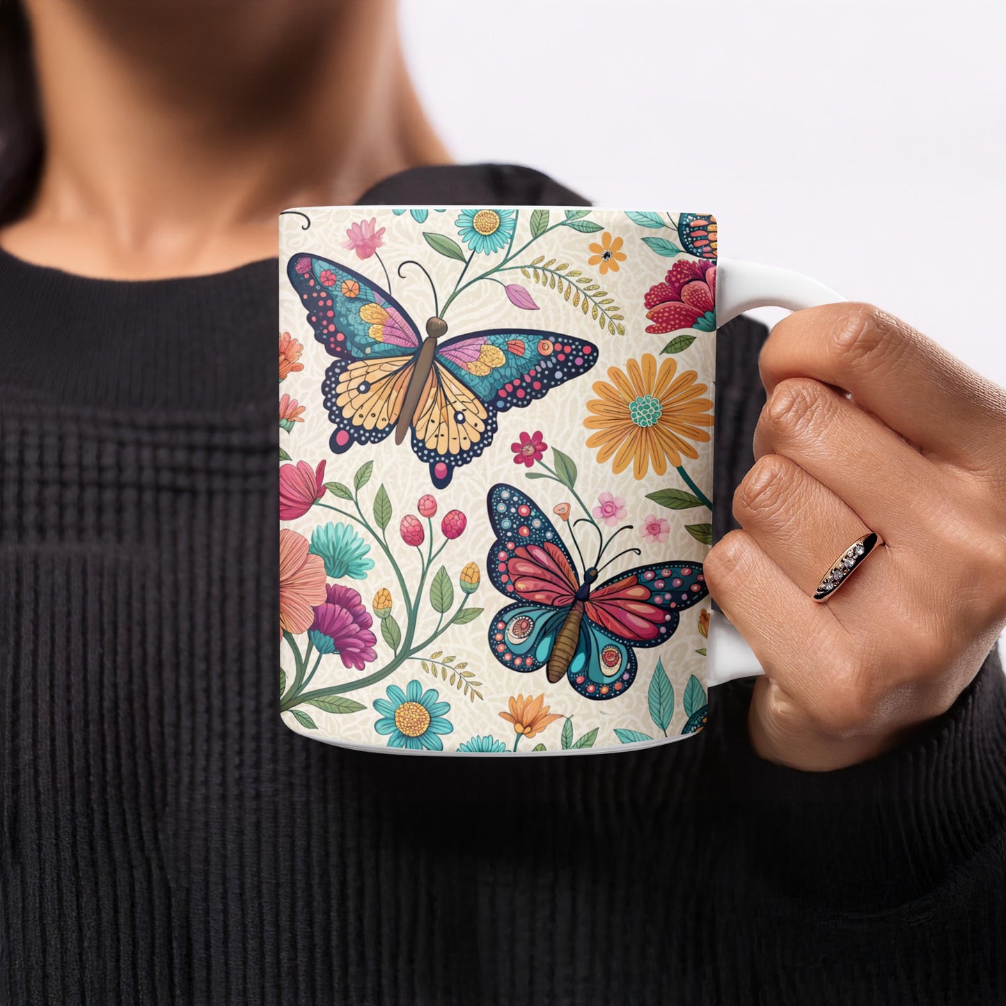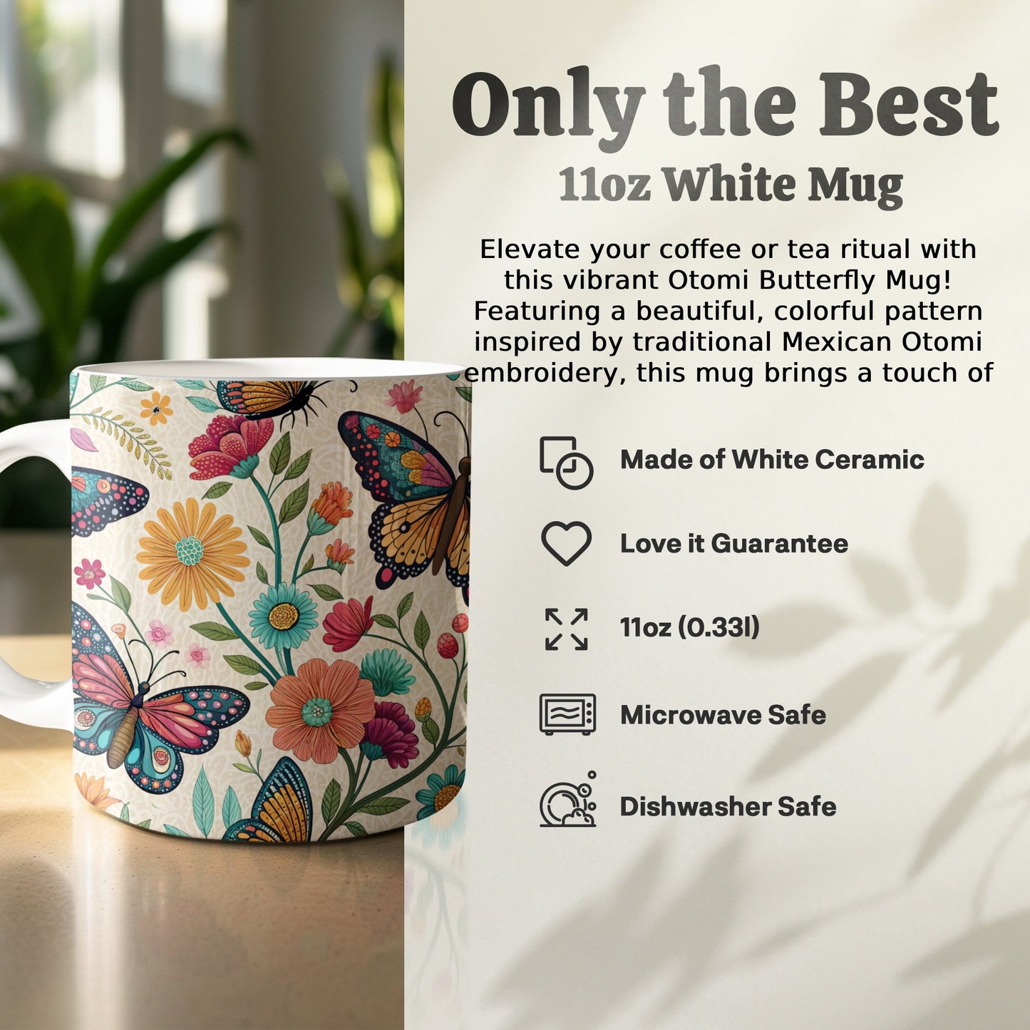 Otomi Embroidery Butterflies and Flowers Design Mug Product