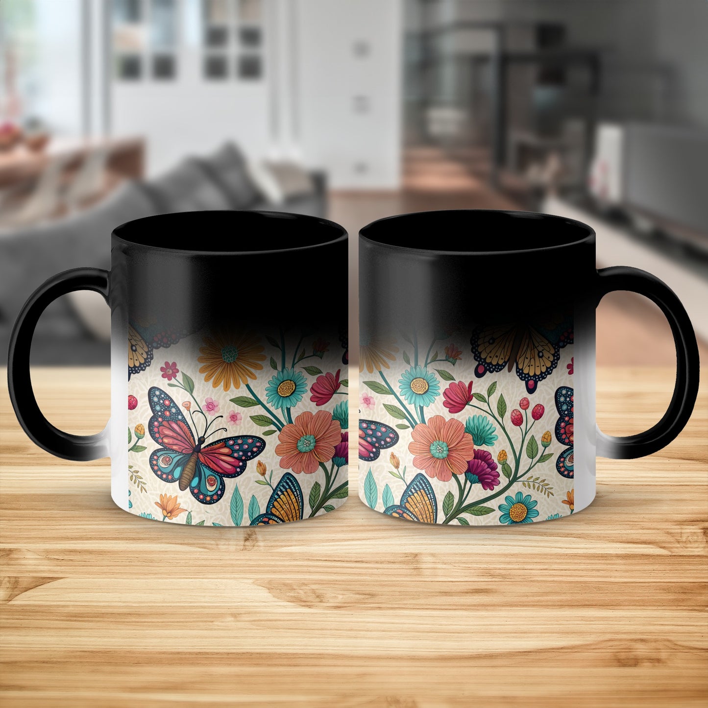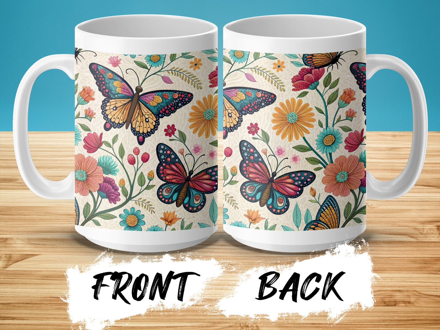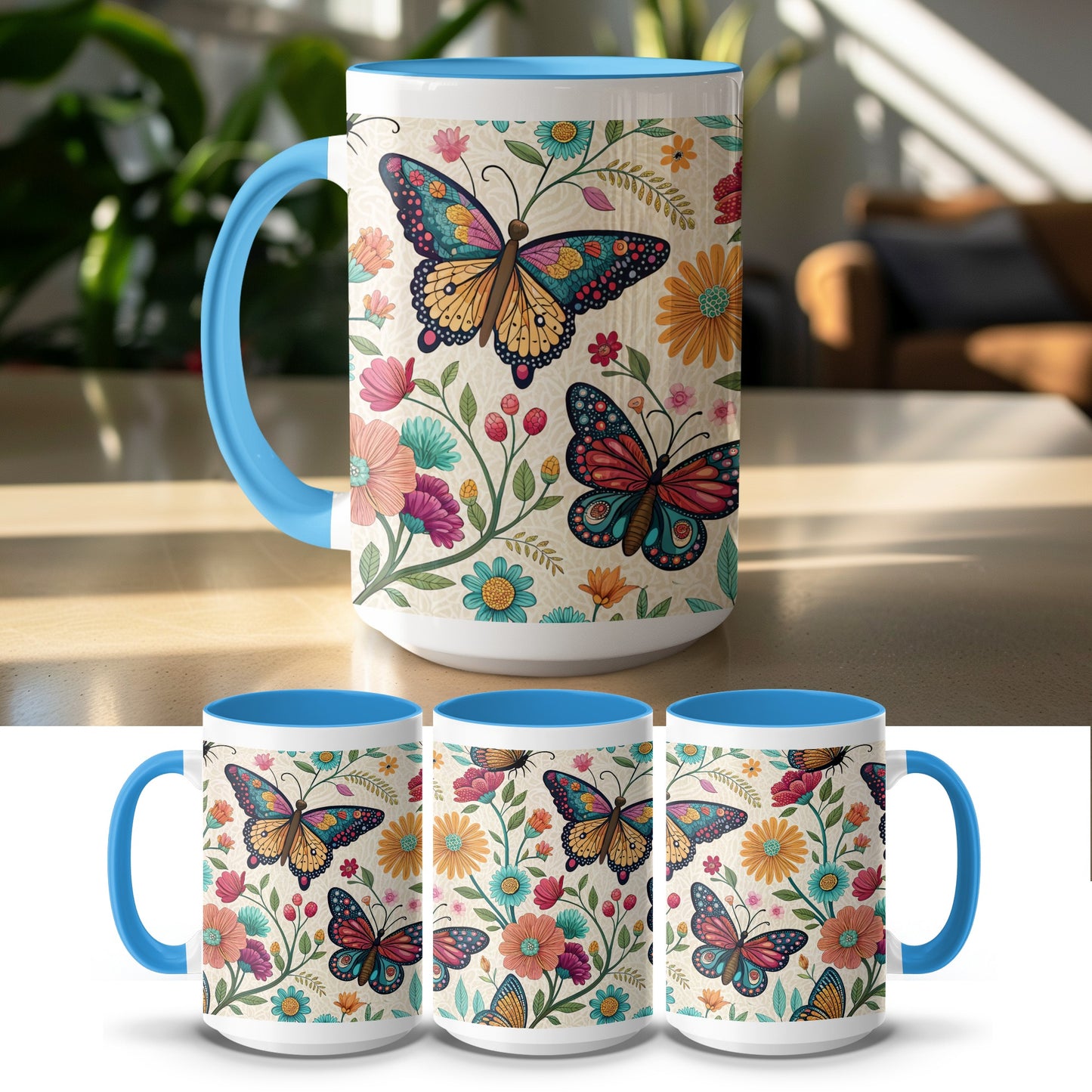 Otomi Embroidery Butterflies and Flowers Design Mug Product