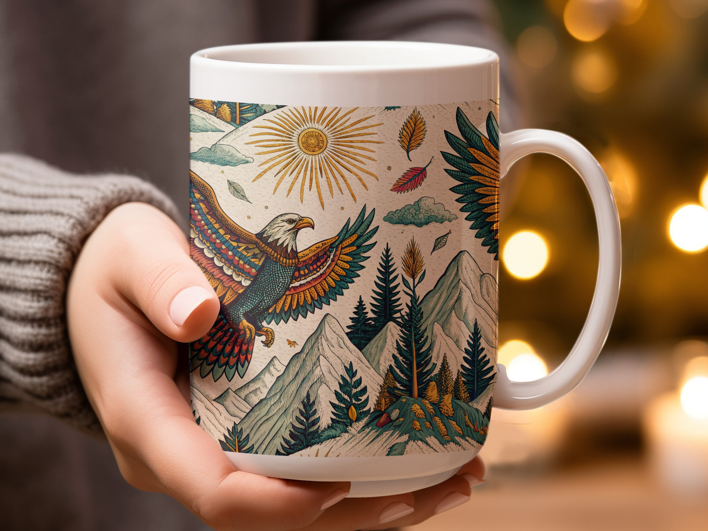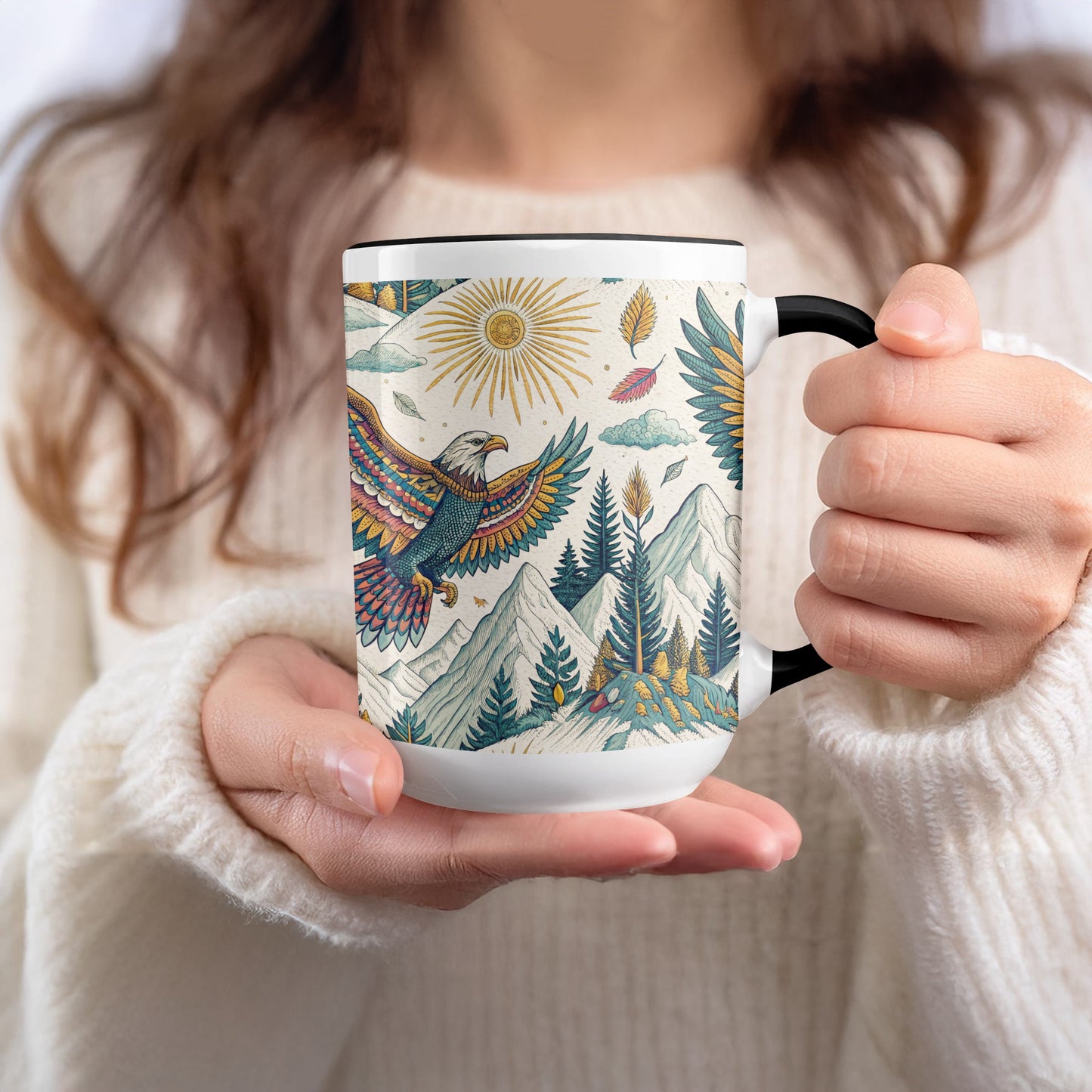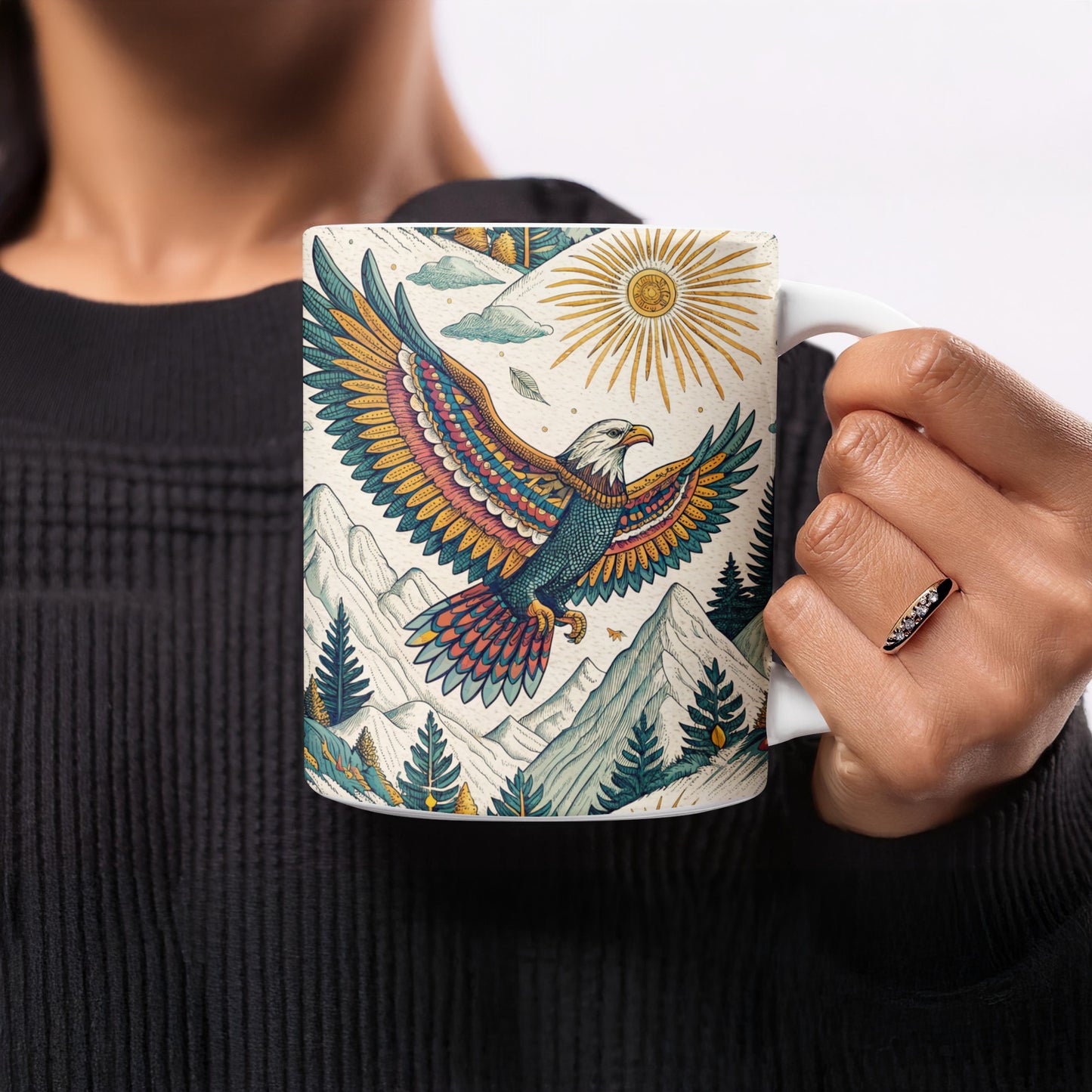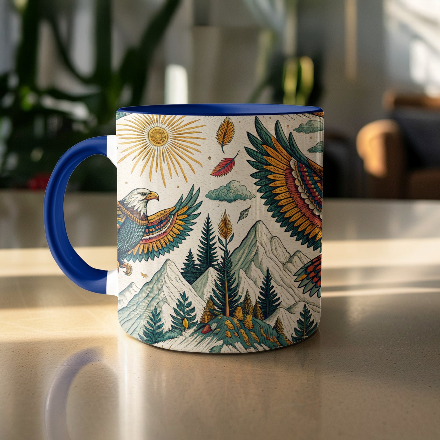 Otomi Embroidery Eagle Mountain Sunrise Patterned Mug