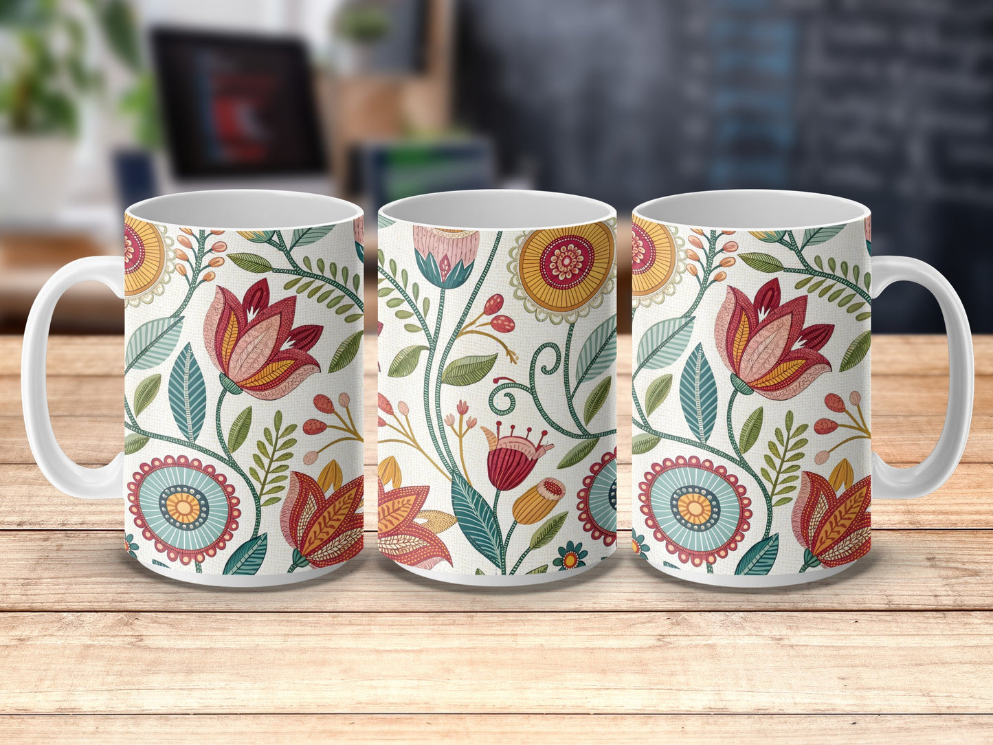 Beautiful seamless floral design in vibrant colors inspired by traditional Otomi embroidery. This unique pattern is perfect for adding a touch of folk art to your projects.