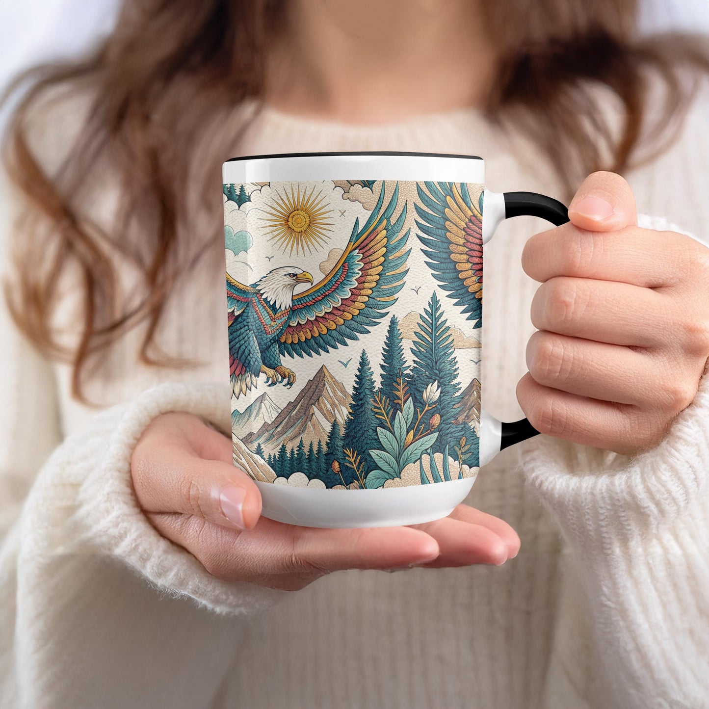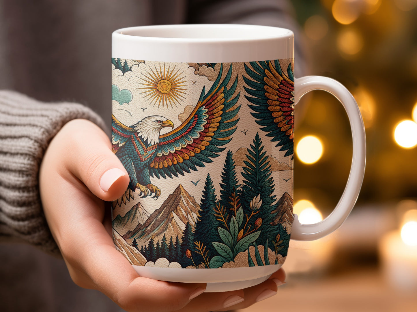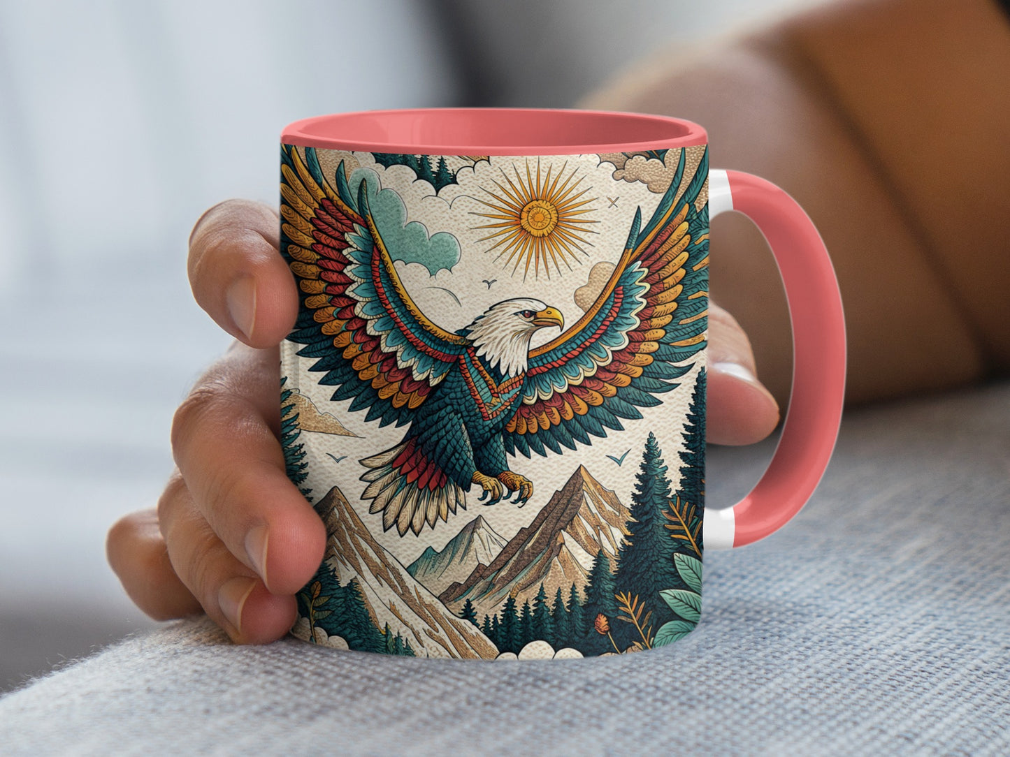 Otomi Style Eagle and Mountain Design Decoration Mug