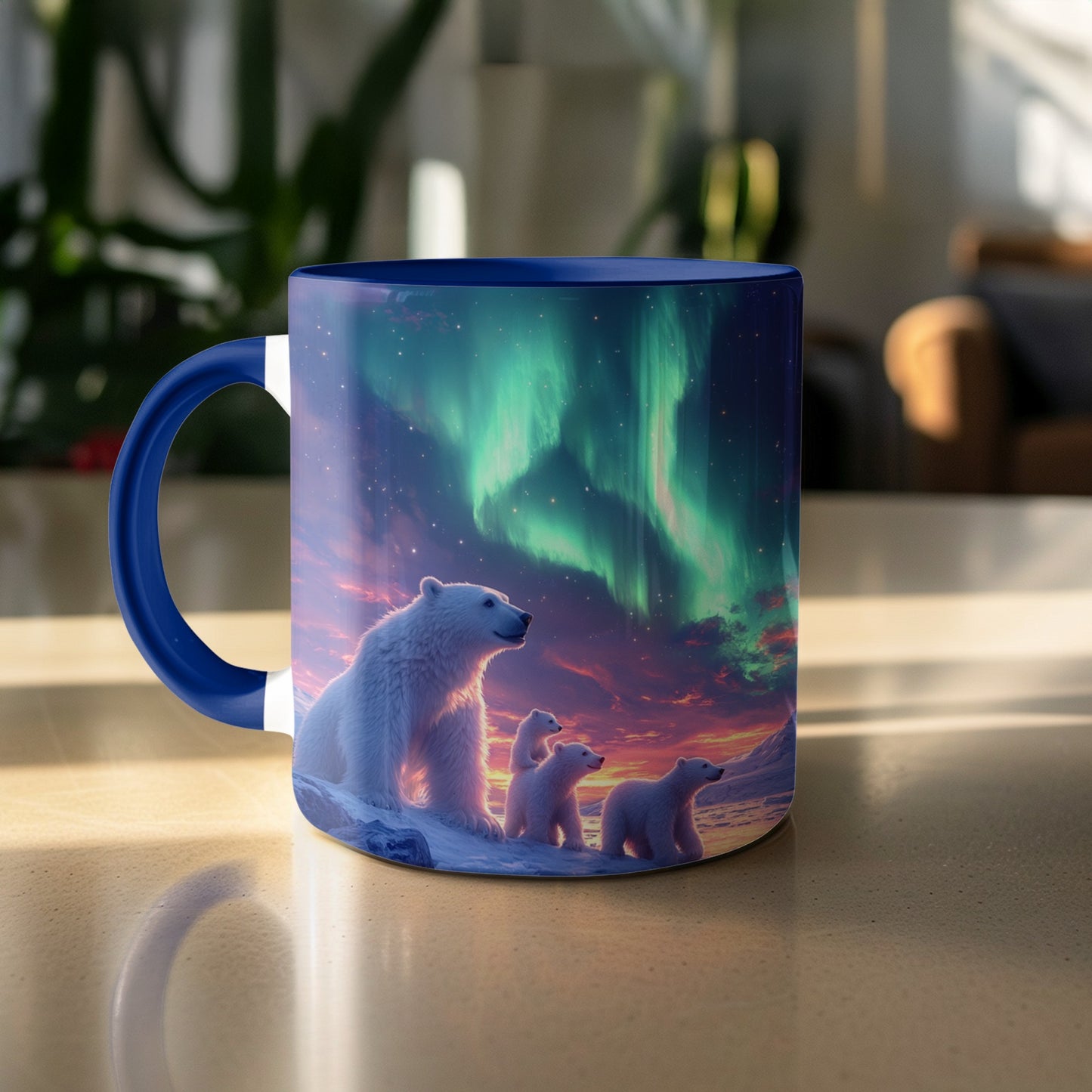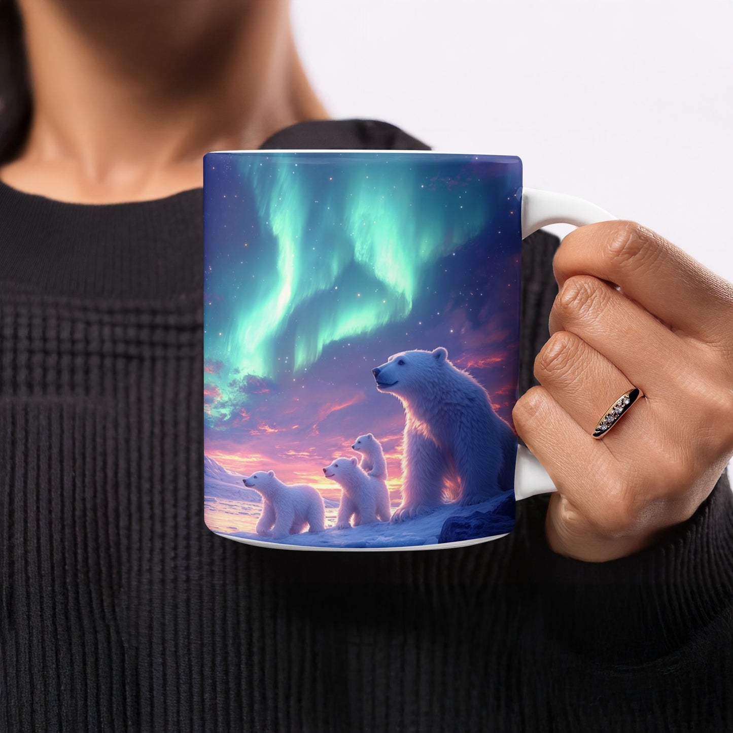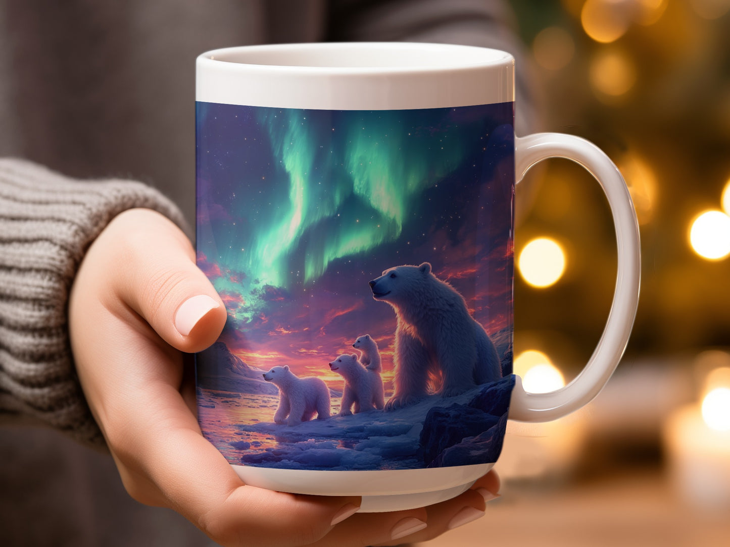Arktische Aurora Bären unter Nordlichtern Fantasy Tasse