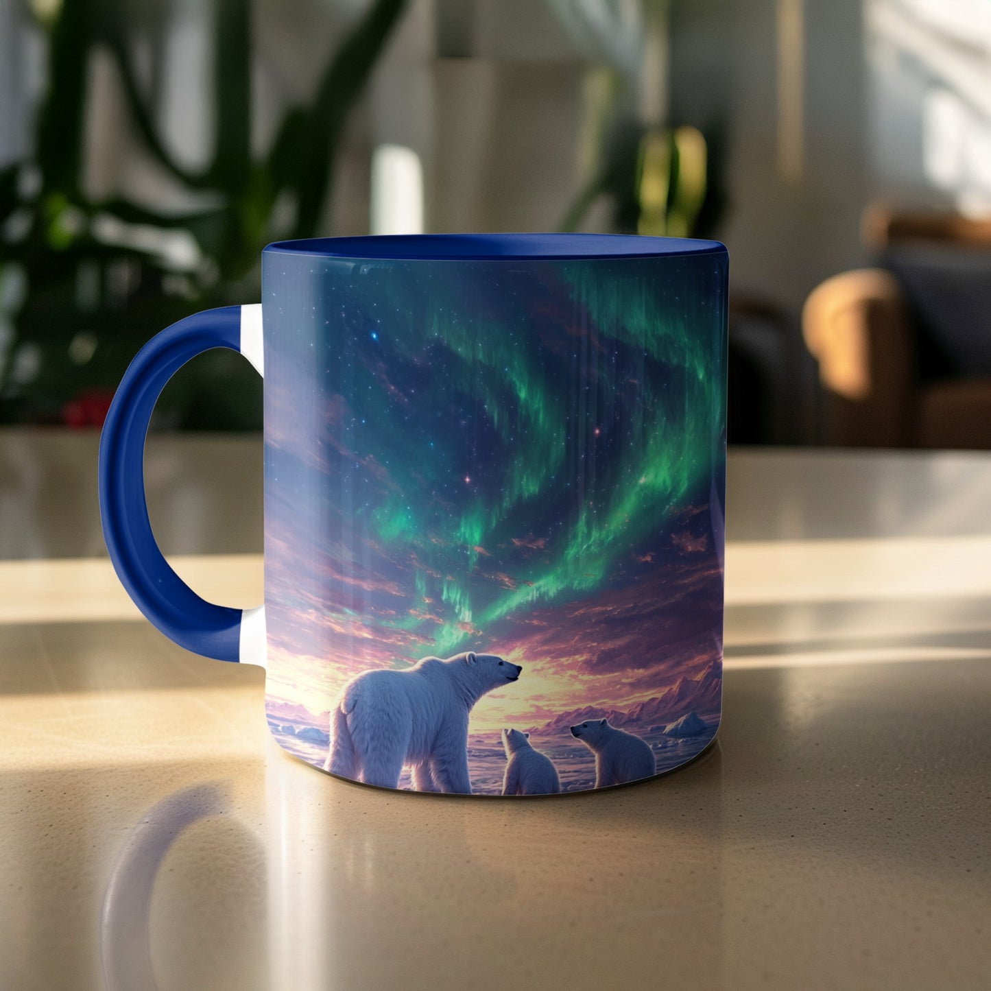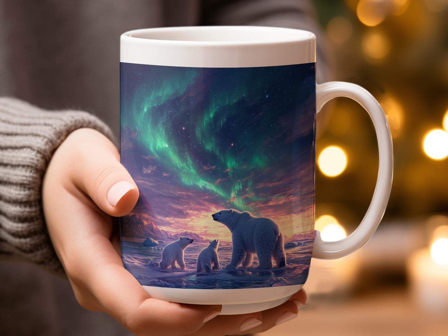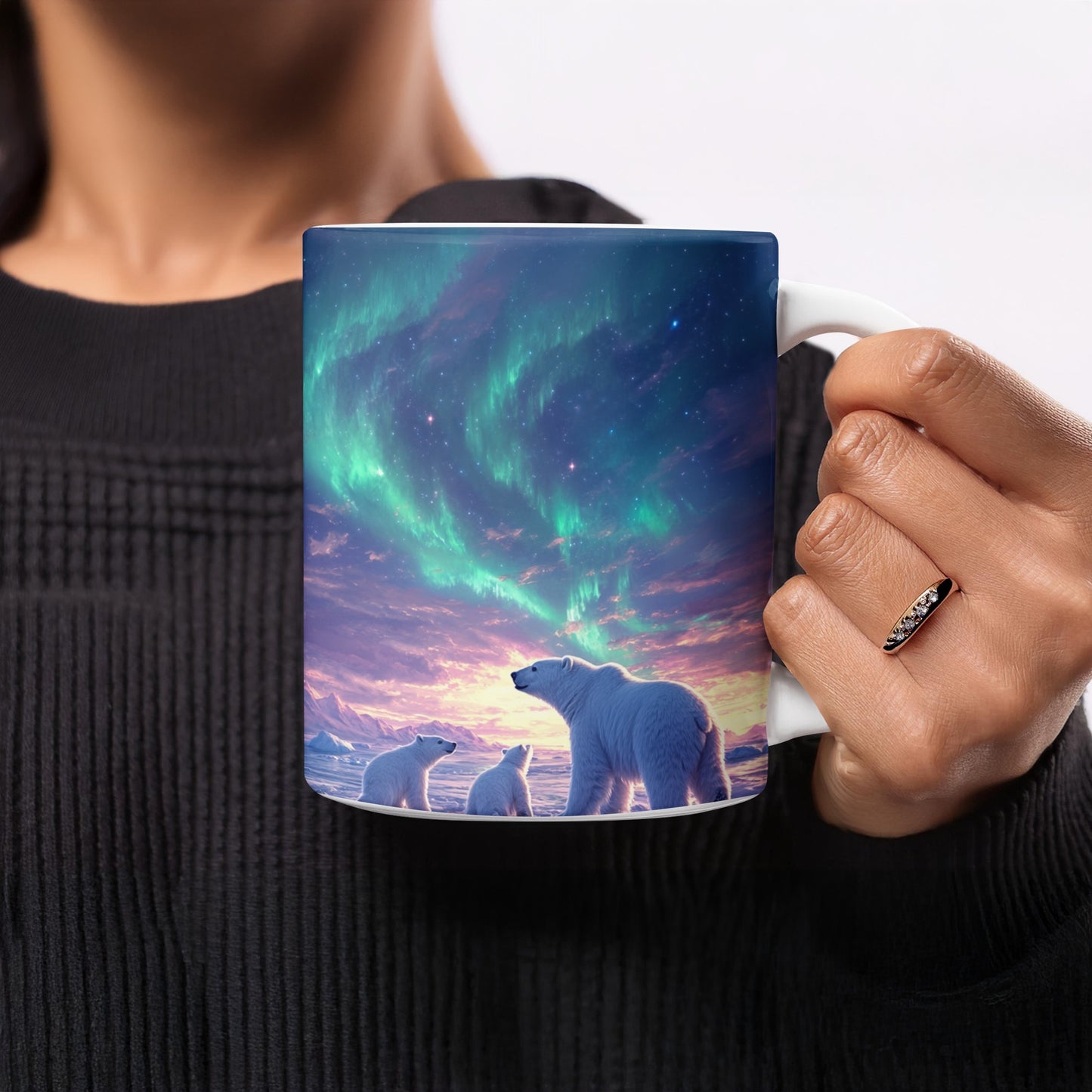 Arktische Aurora Eisbär Familie Natur Himmel Design Tasse