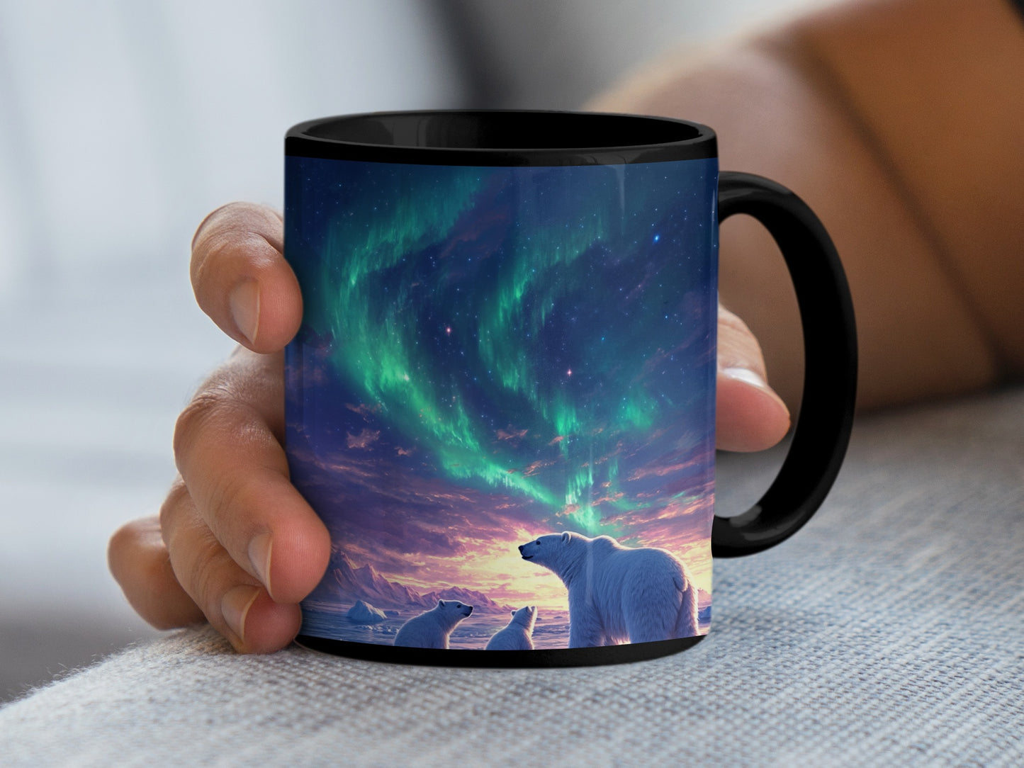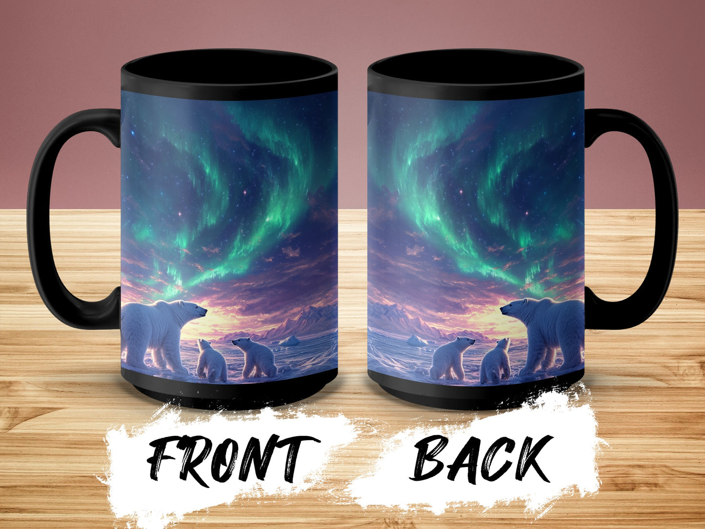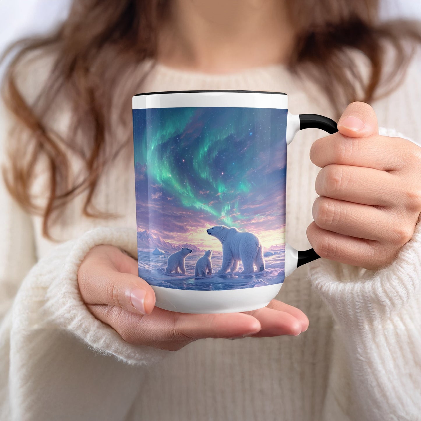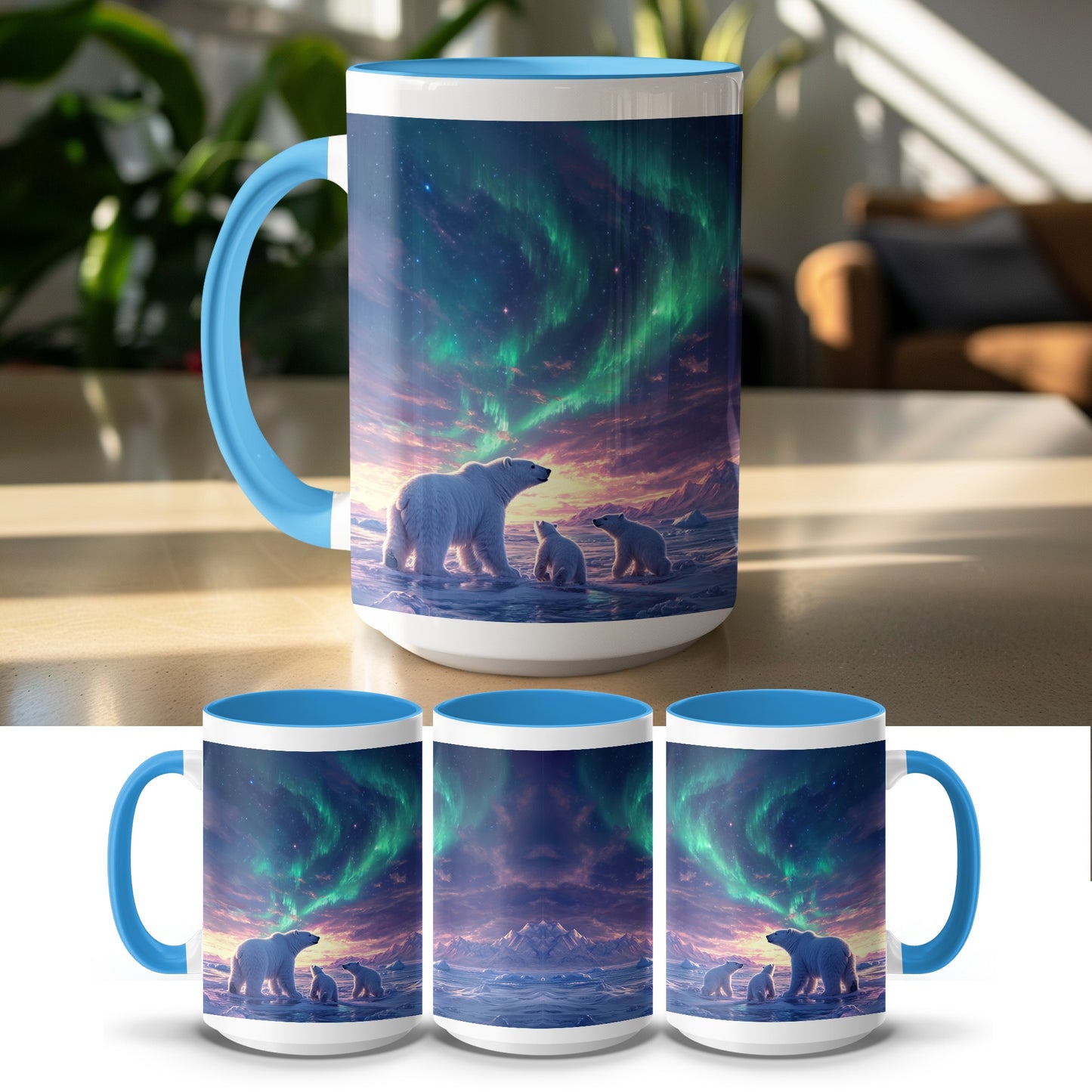 Arktische Aurora Eisbär Familie Natur Himmel Design Tasse