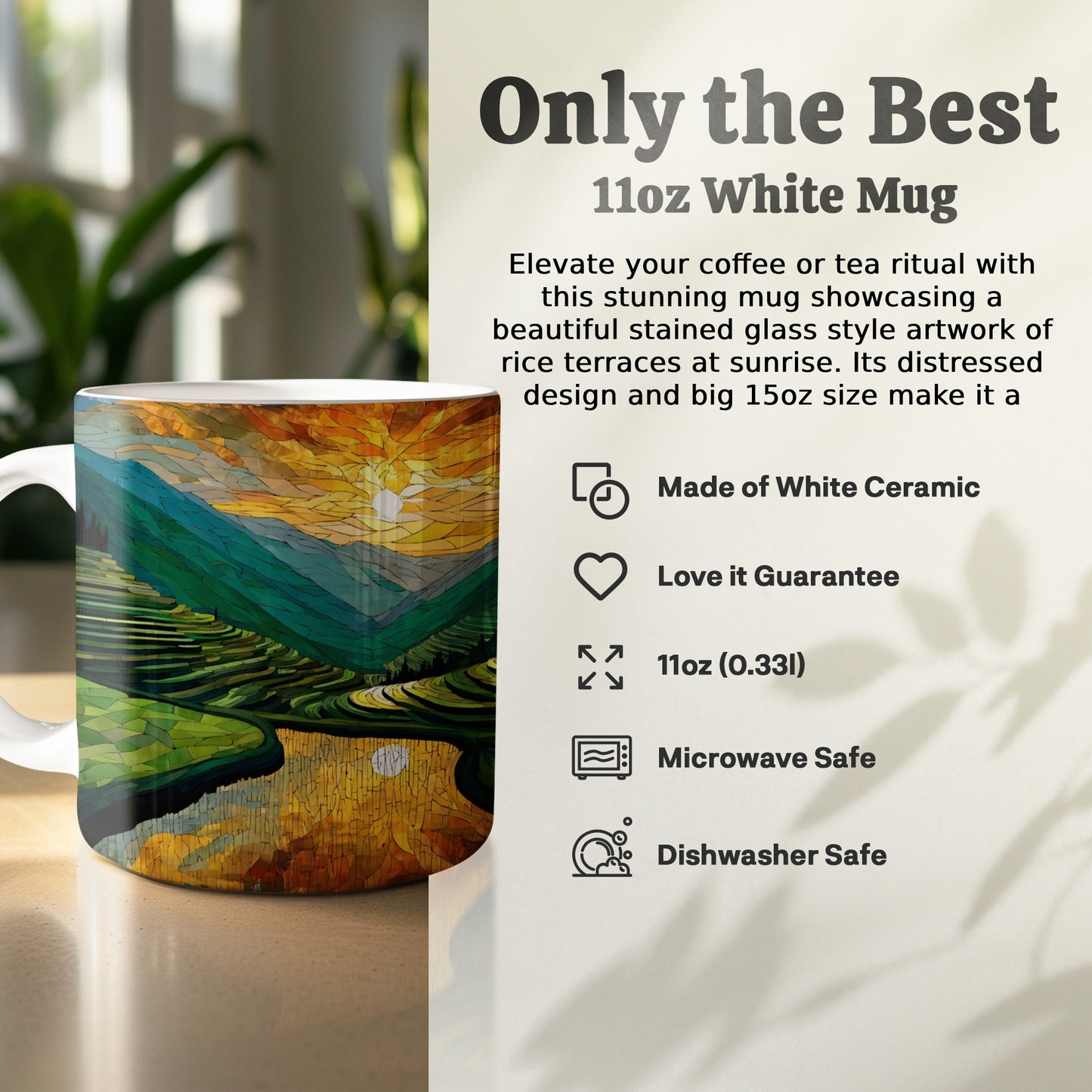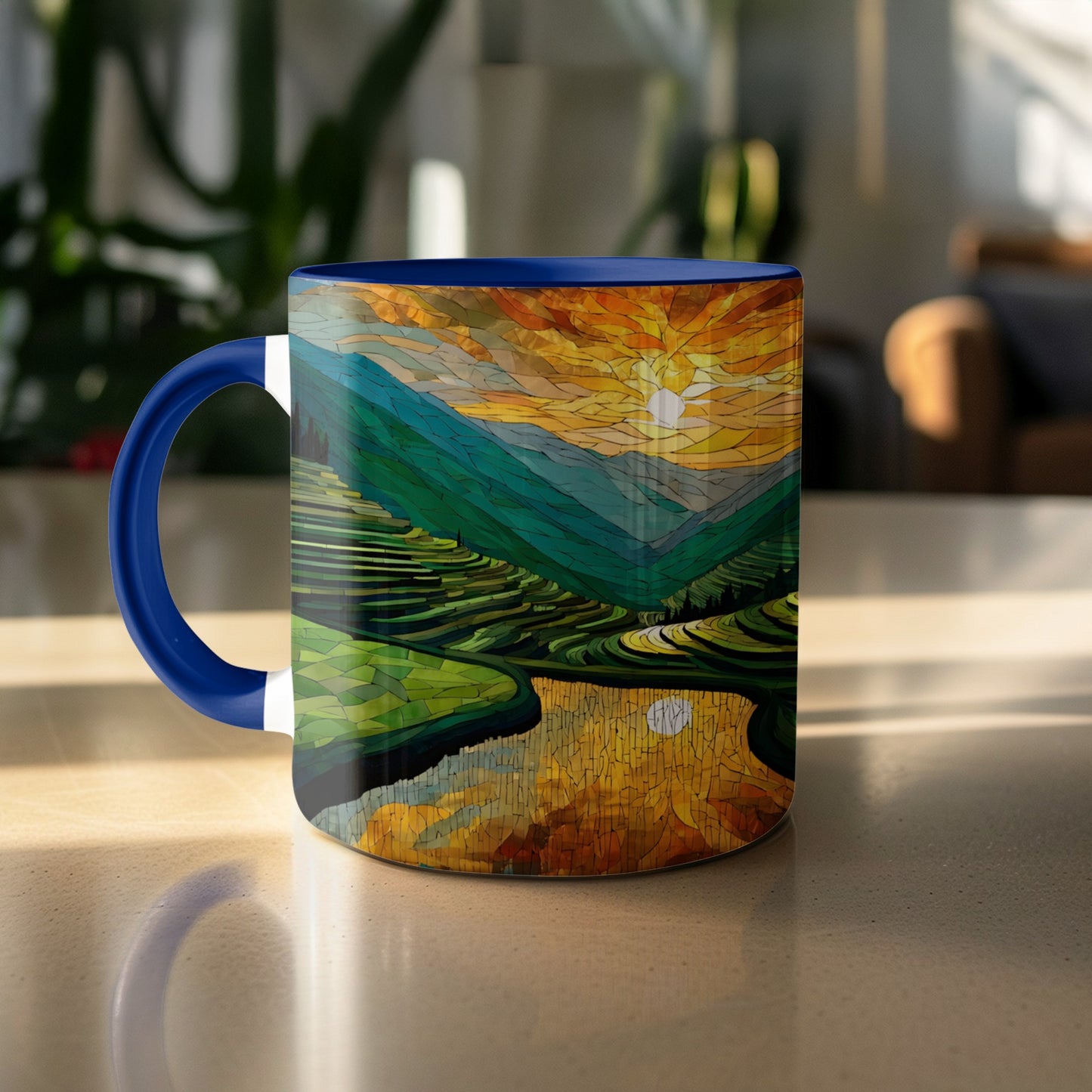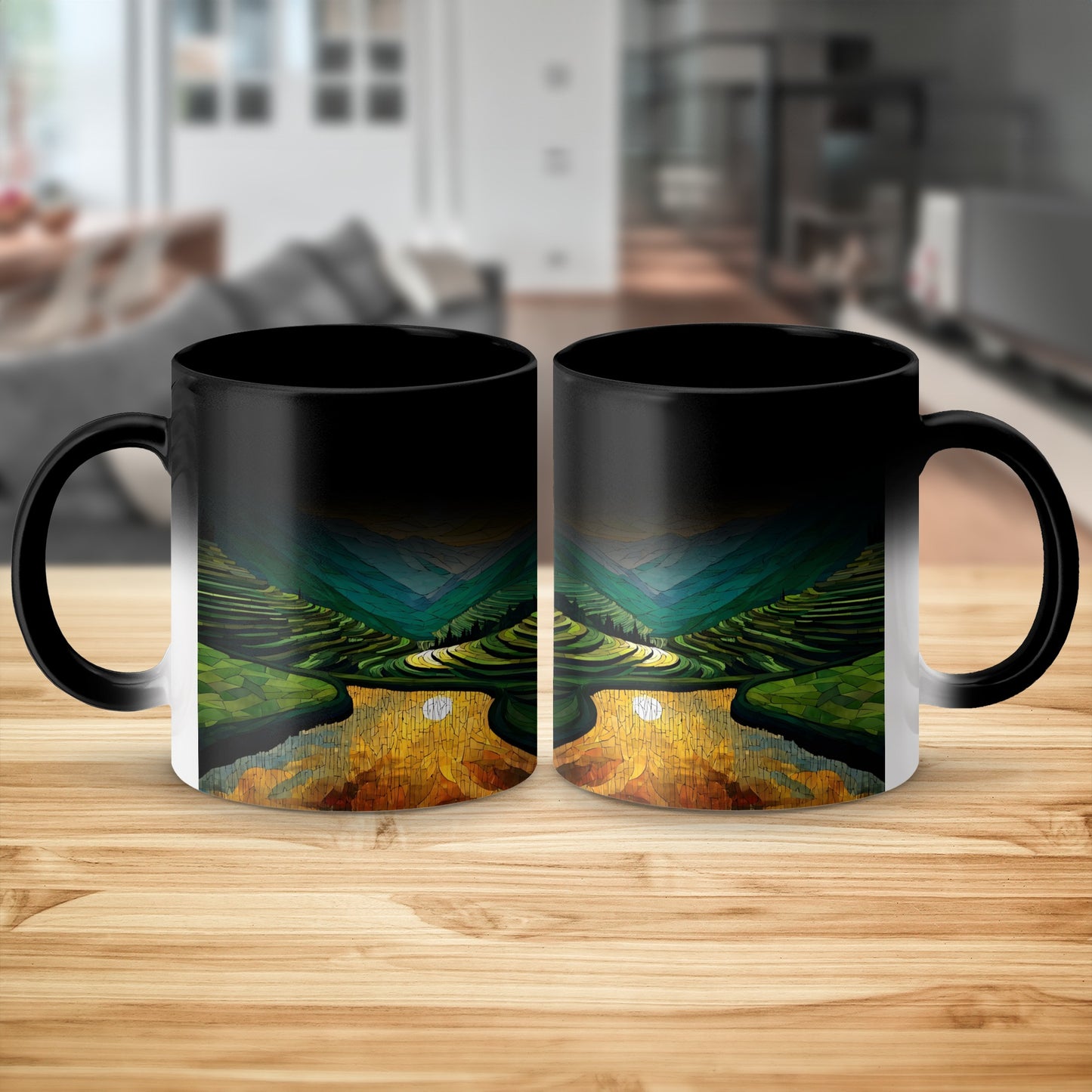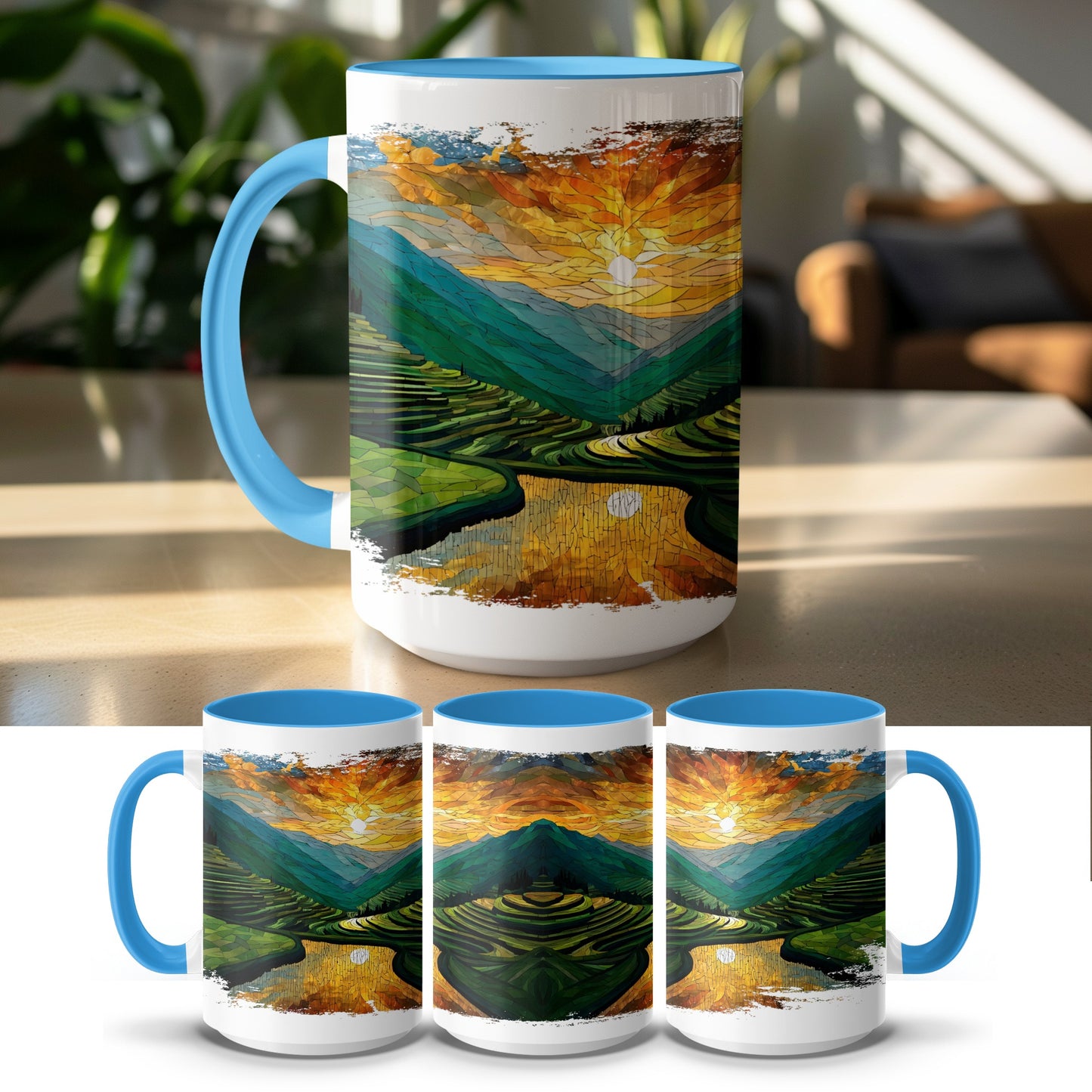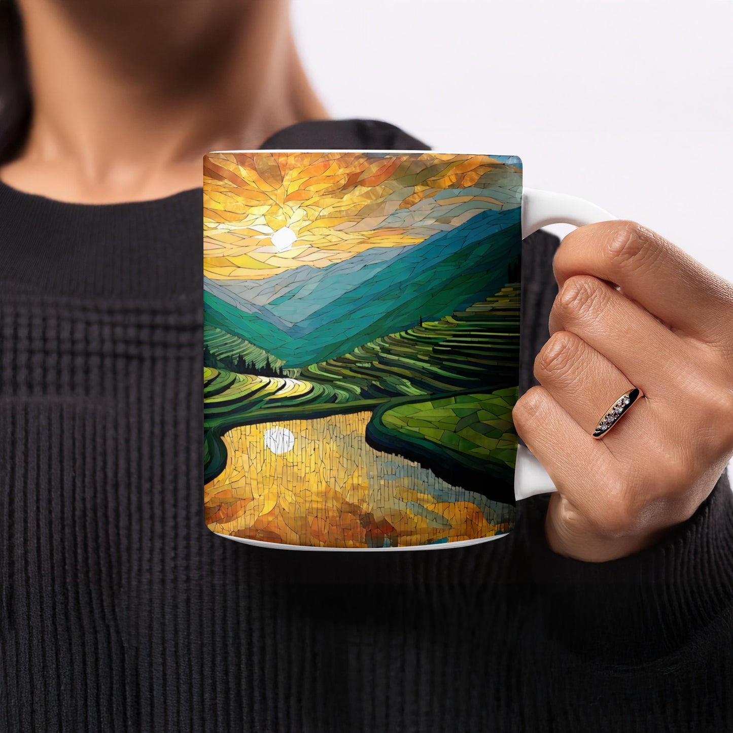 Gespiegelte Reisterrassen bei Sonnenuntergang Künstlerische Landschaft Tasse