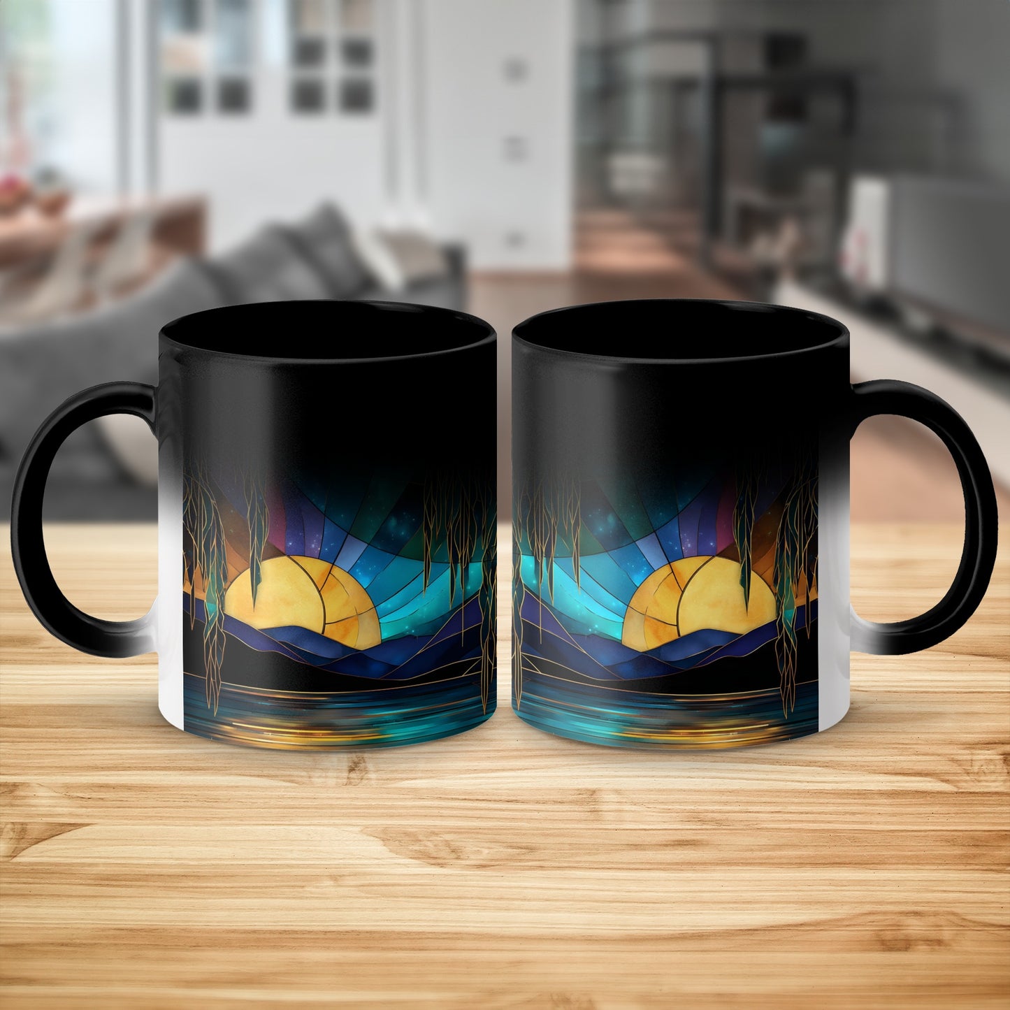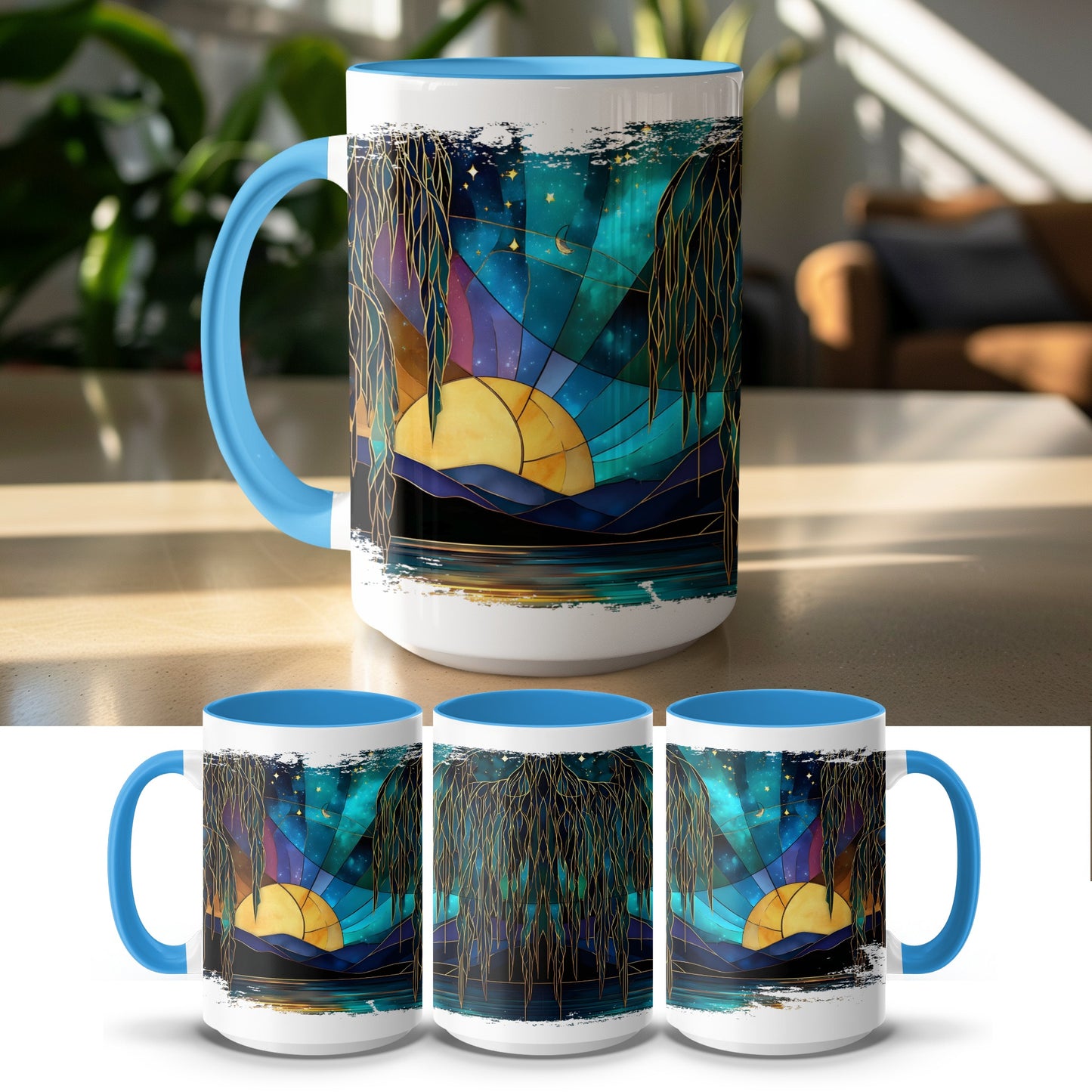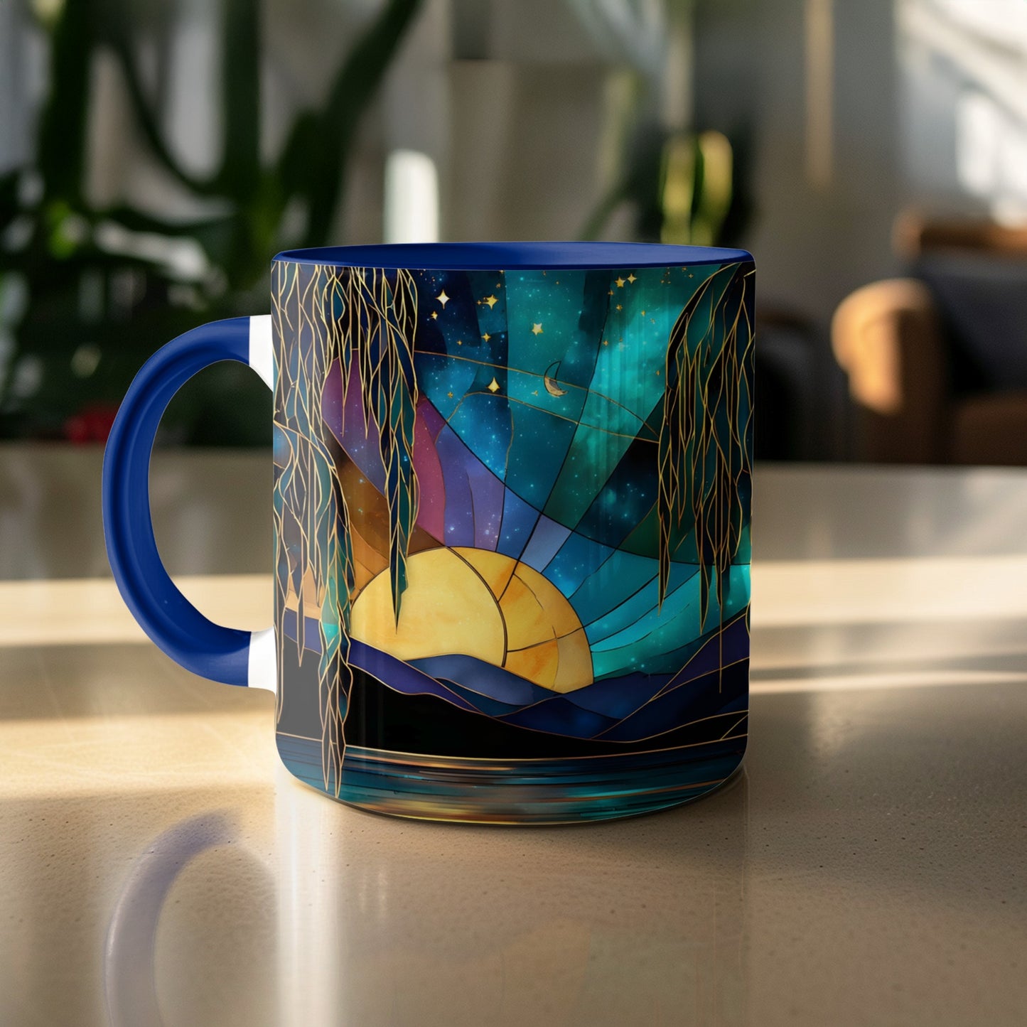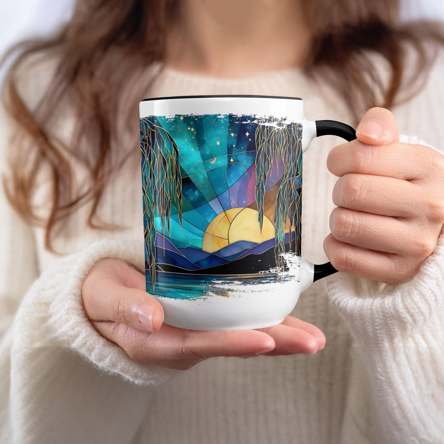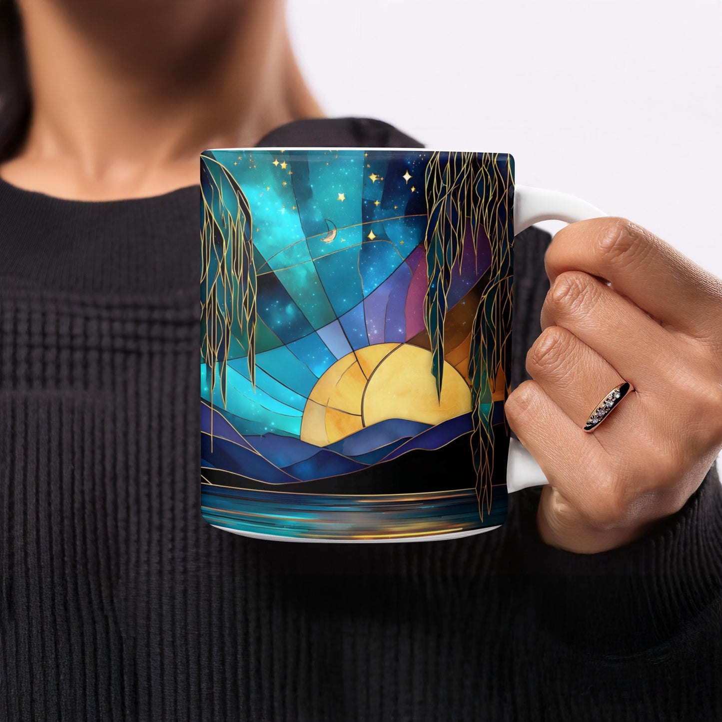Weidenbaum über Wasser Nachthimmel Ästhetische Kunst Tasse