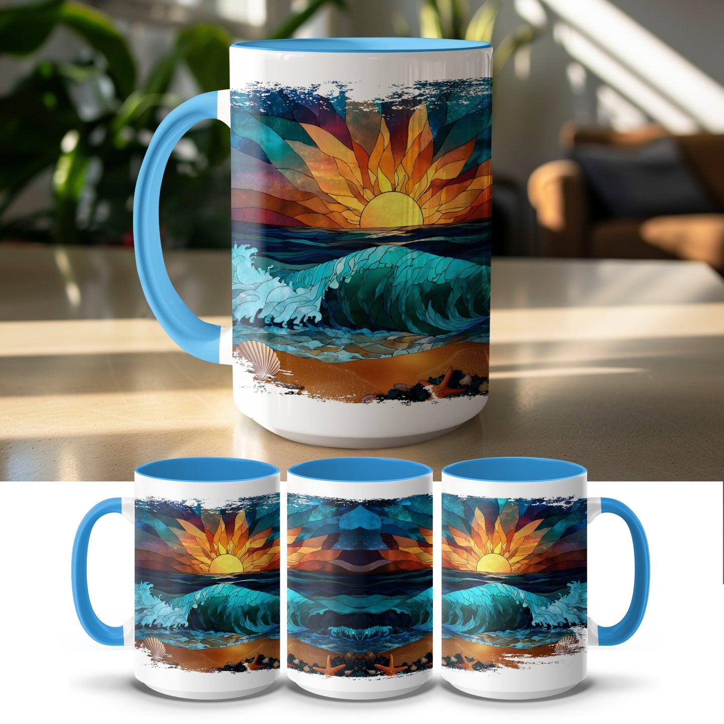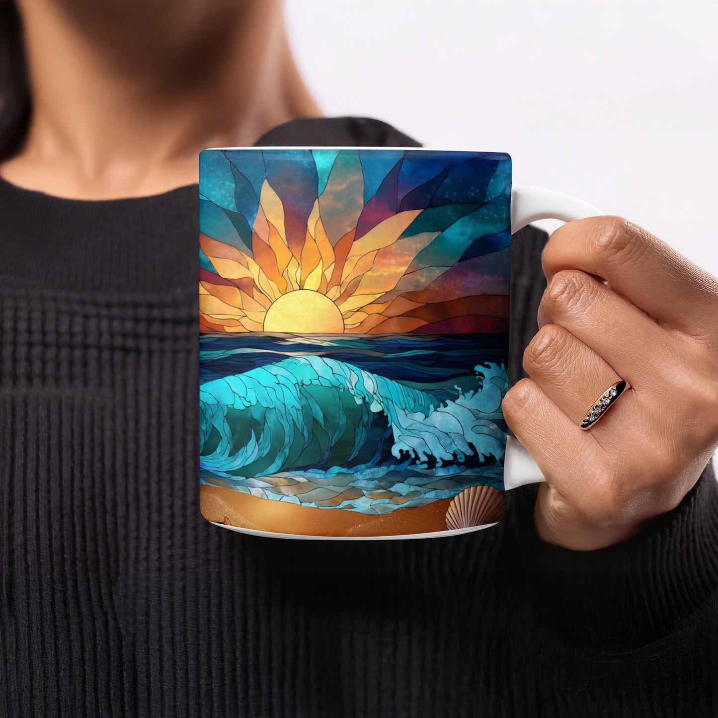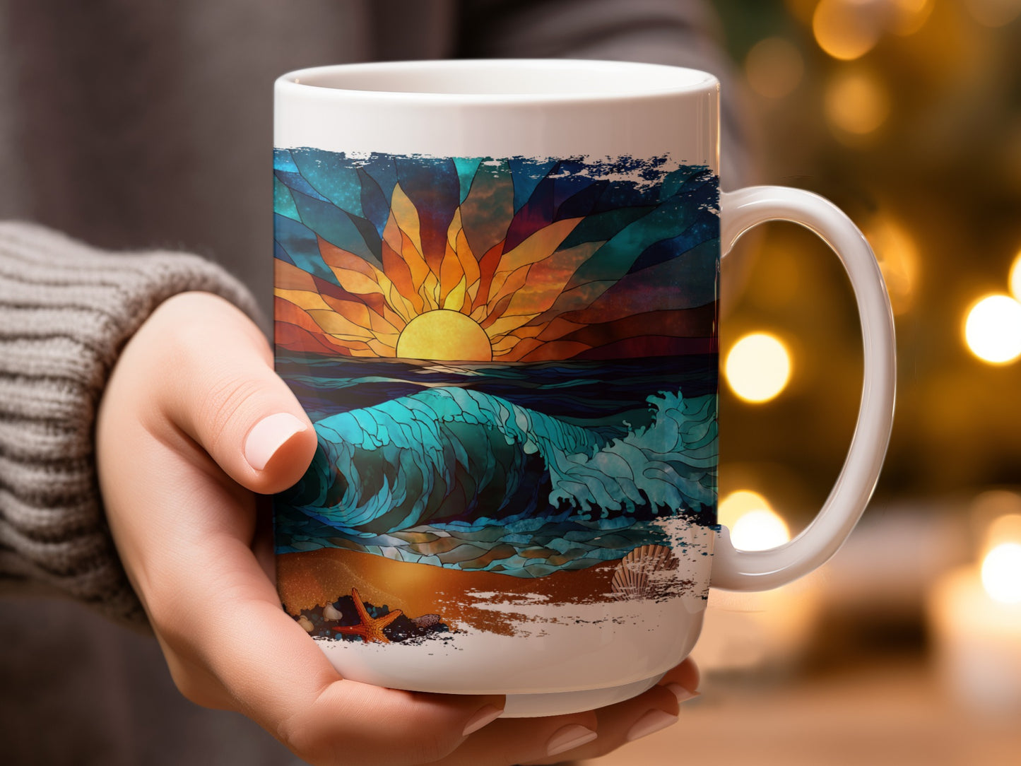 Strand Glasmalerei Ozean Wellen und Muscheln malerischen Becher