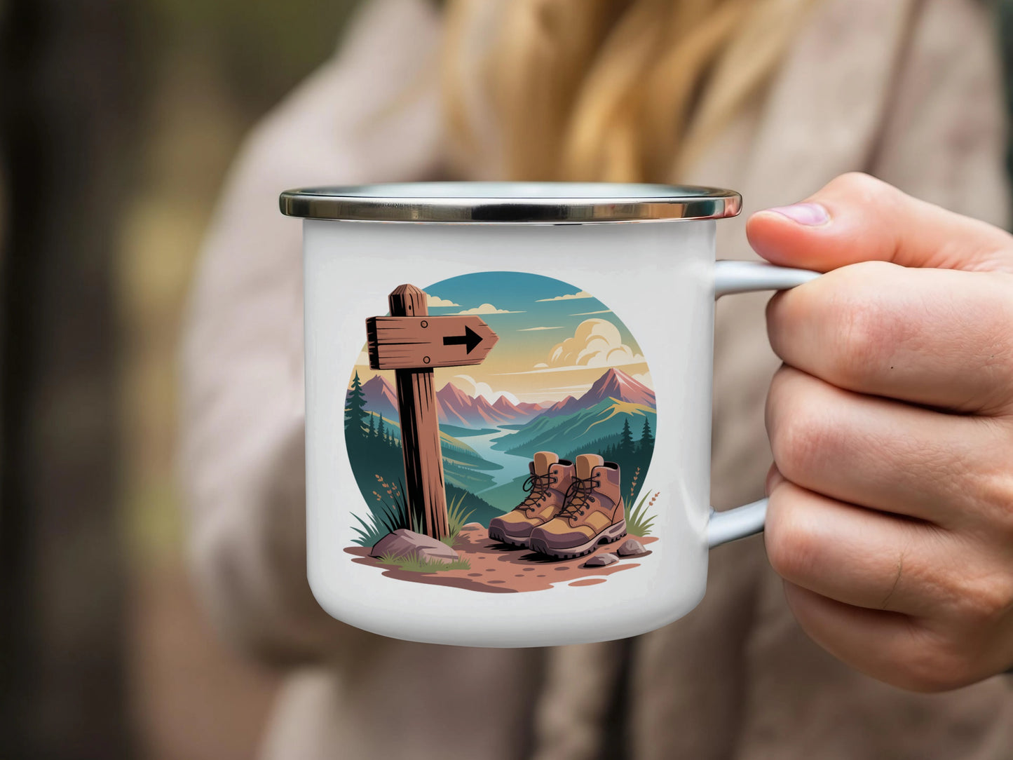 Step Into Adventure Hiking Boots Artwork Novelty Mug