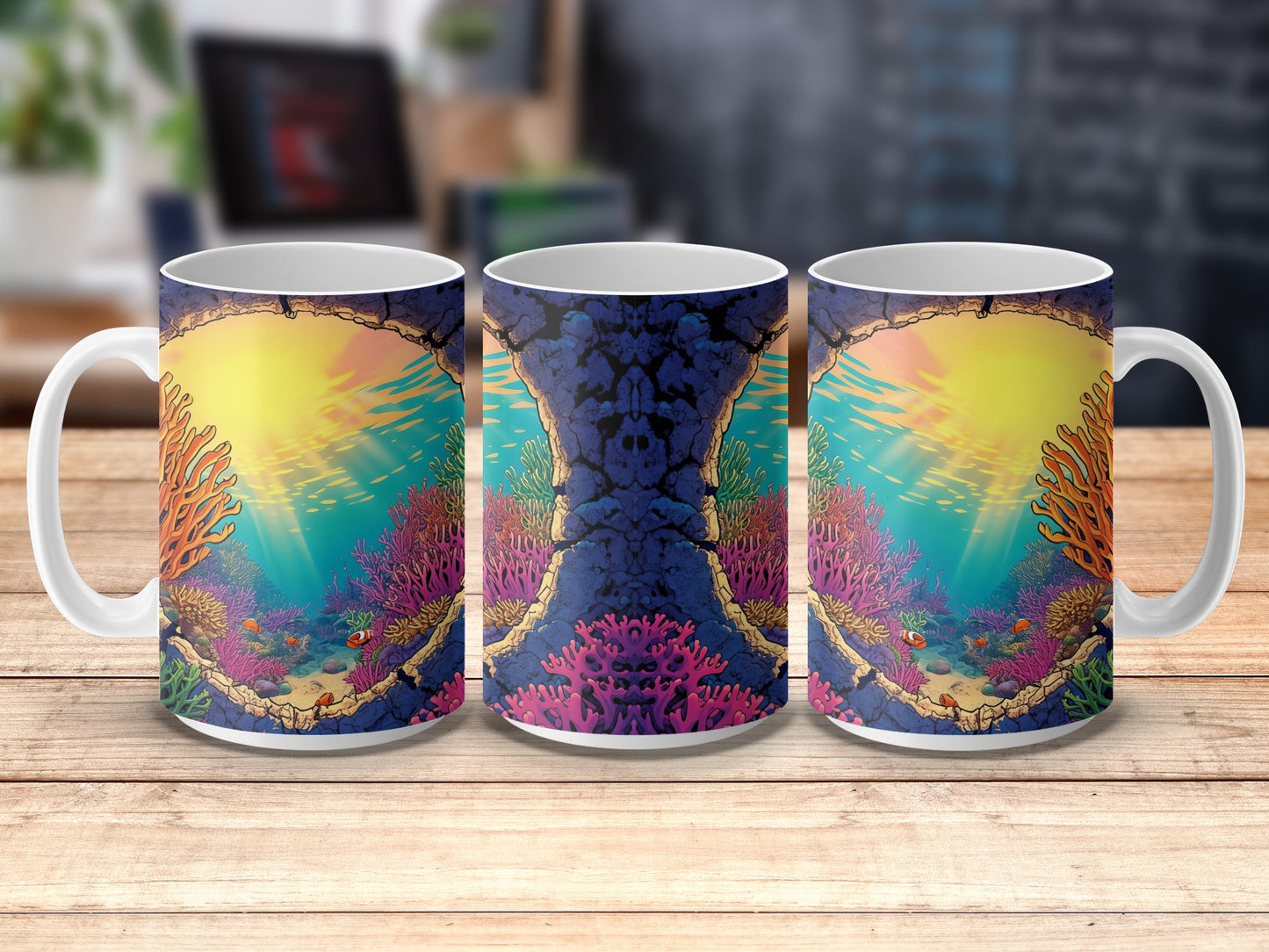 Dive into a vibrant underwater world. This digital image showcases a beautiful coral reef teeming with life including colorful corals and playful clownfish. A perfect addition!