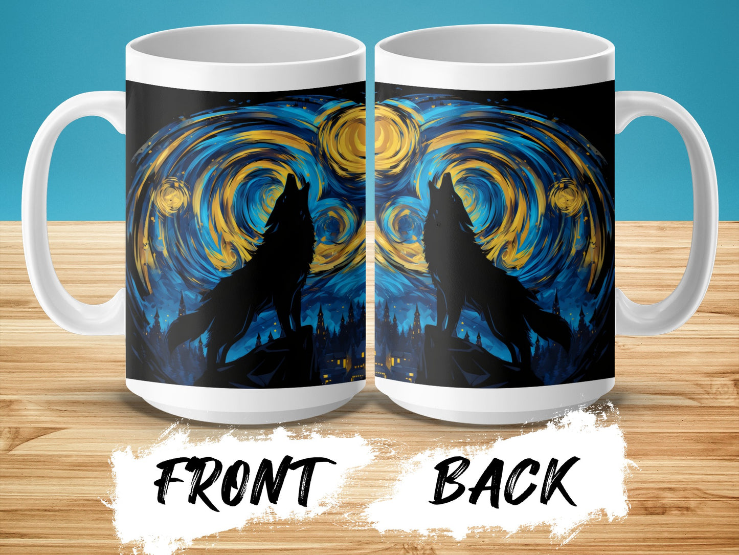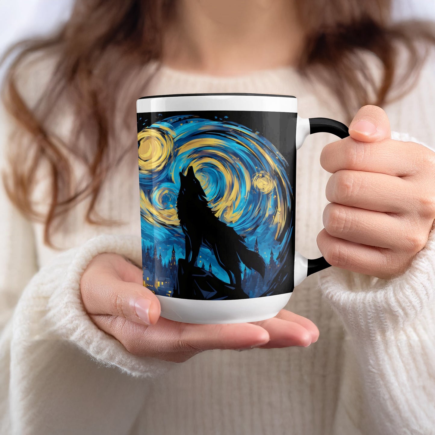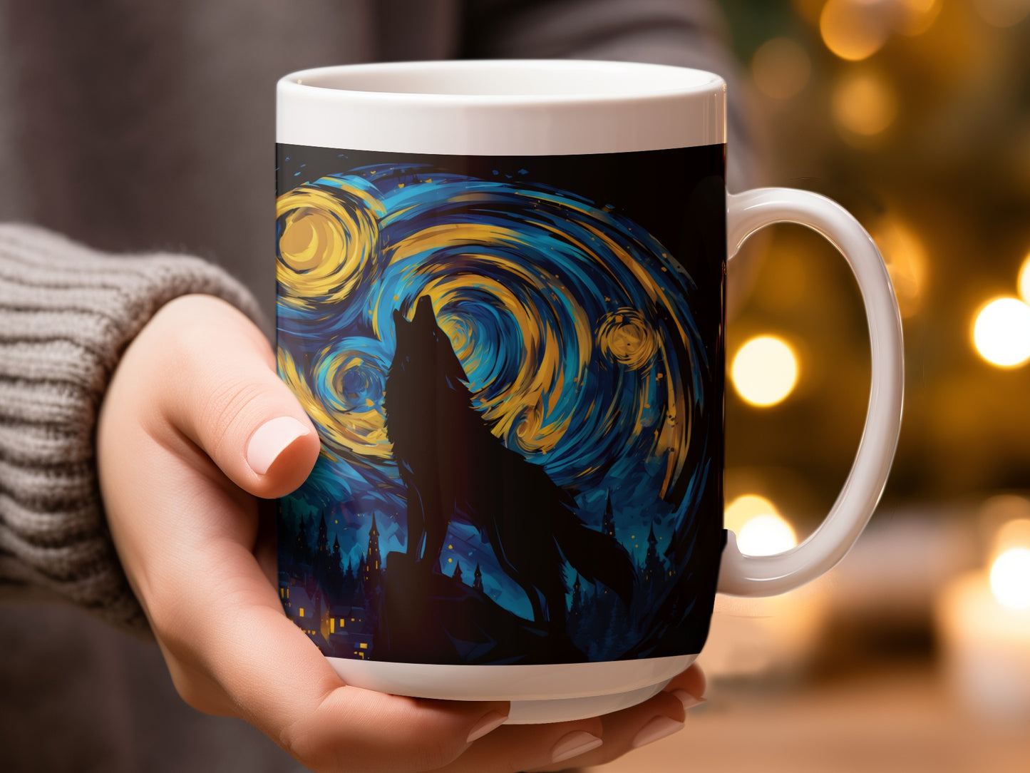 Wolf Howling Under Swirling Night Art Illustration Mug