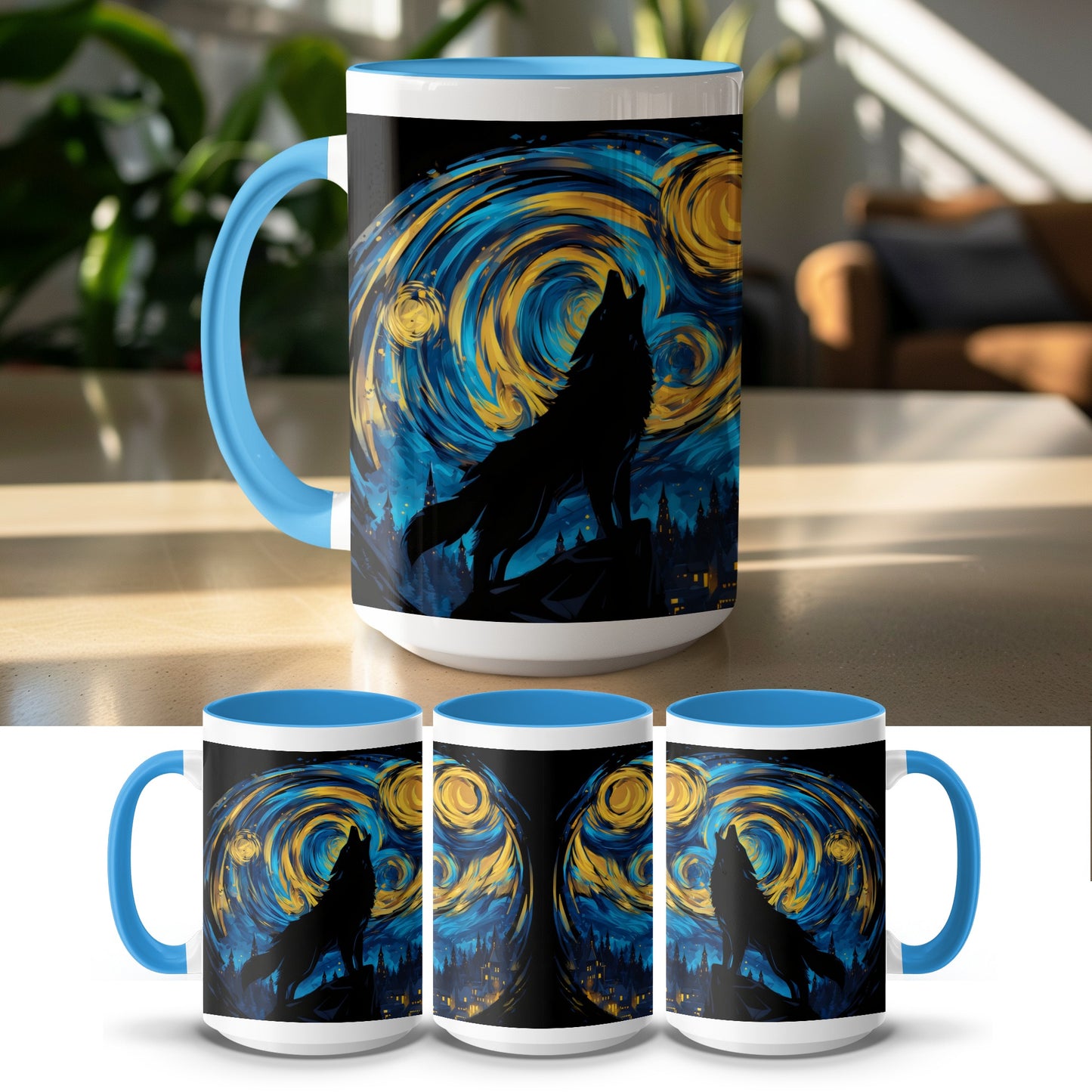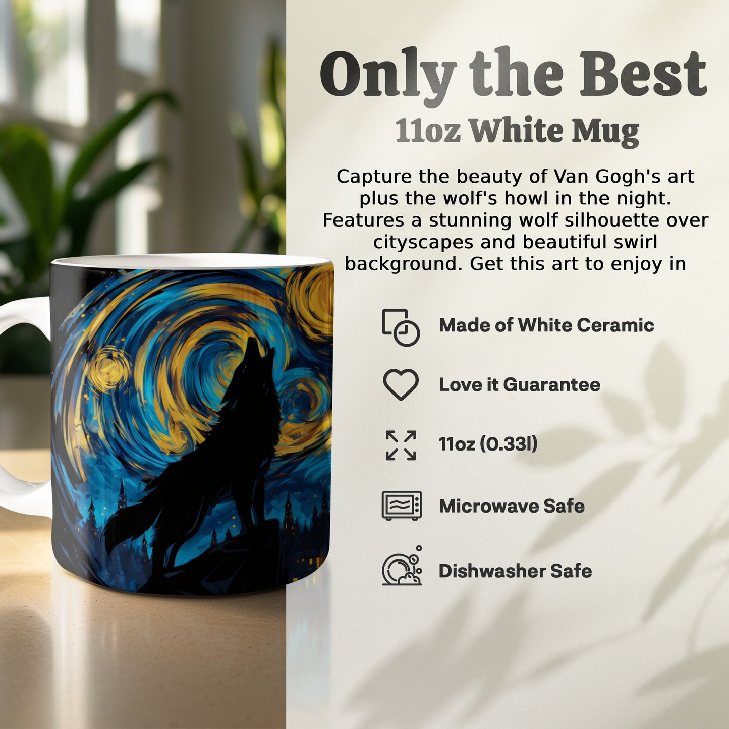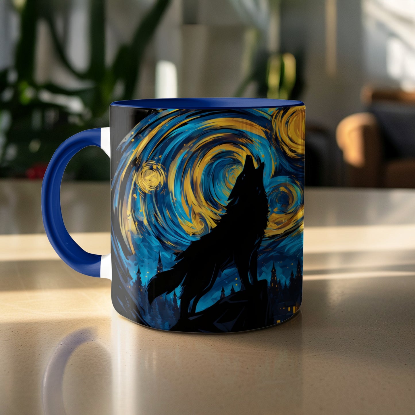 Wolf Howling Under Swirling Night Art Illustration Mug