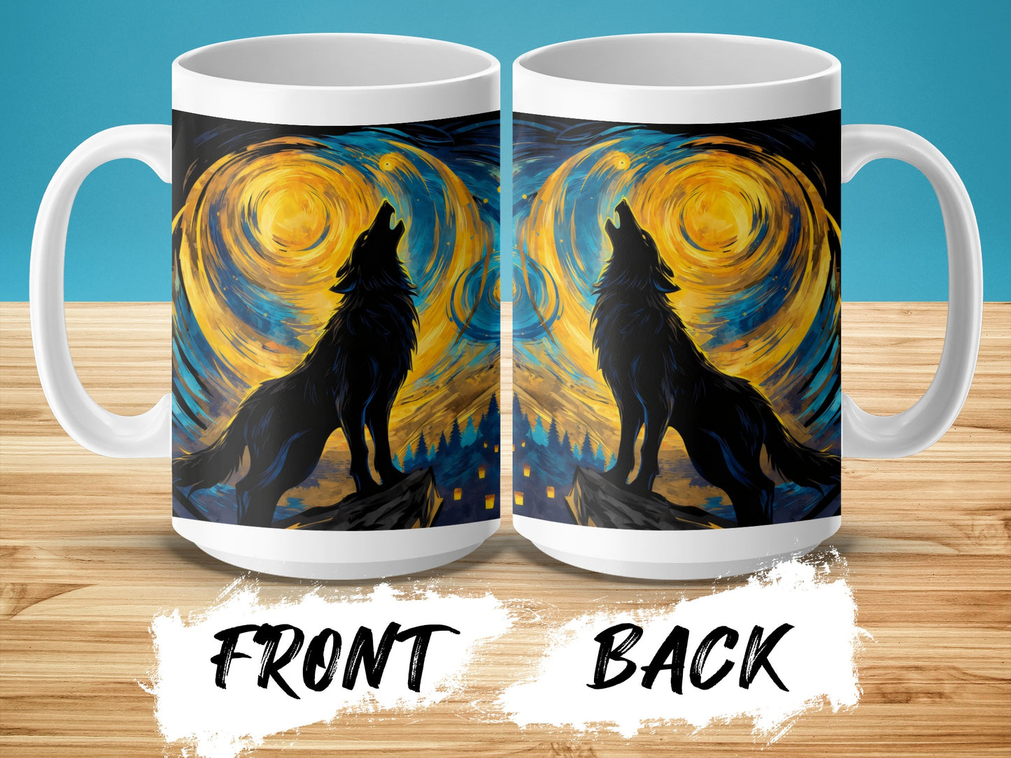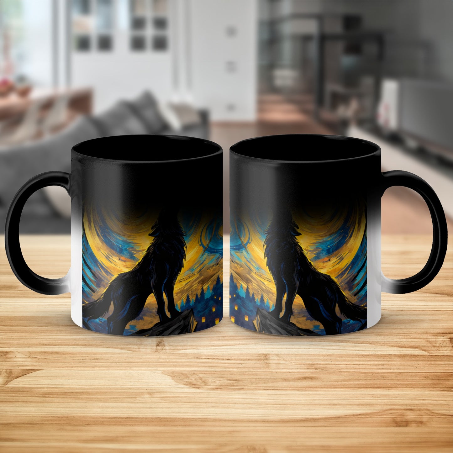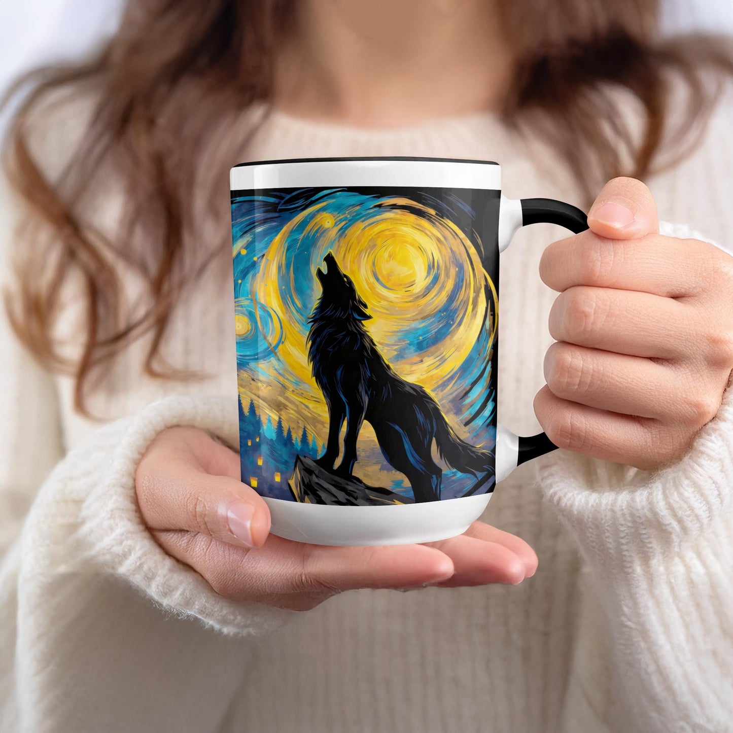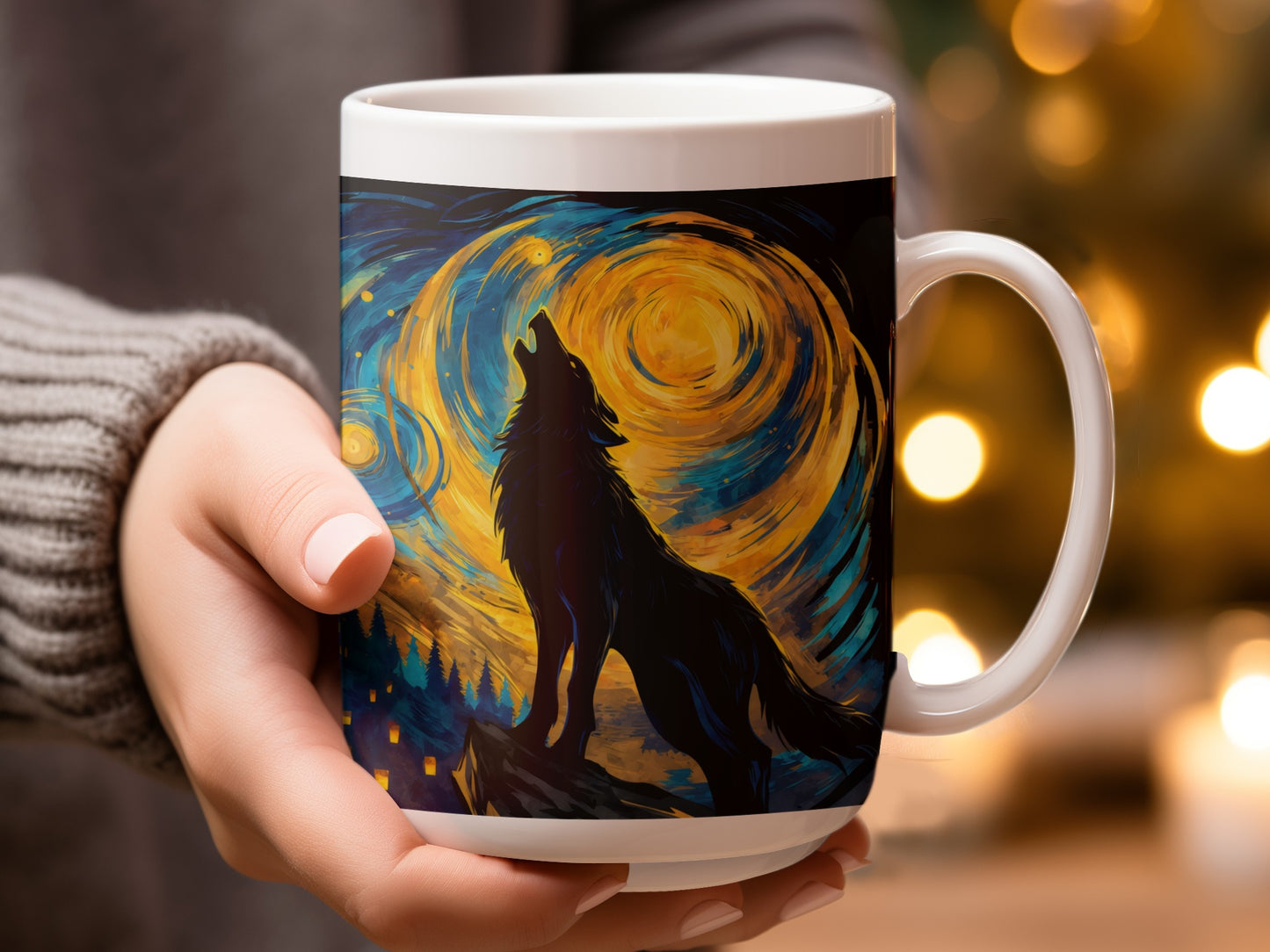 Wolf Howling Under the Night Sky Dreamscape Art Mug