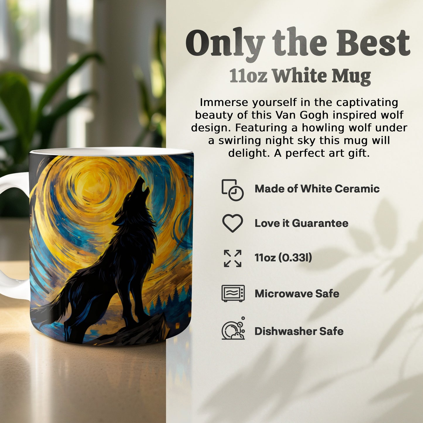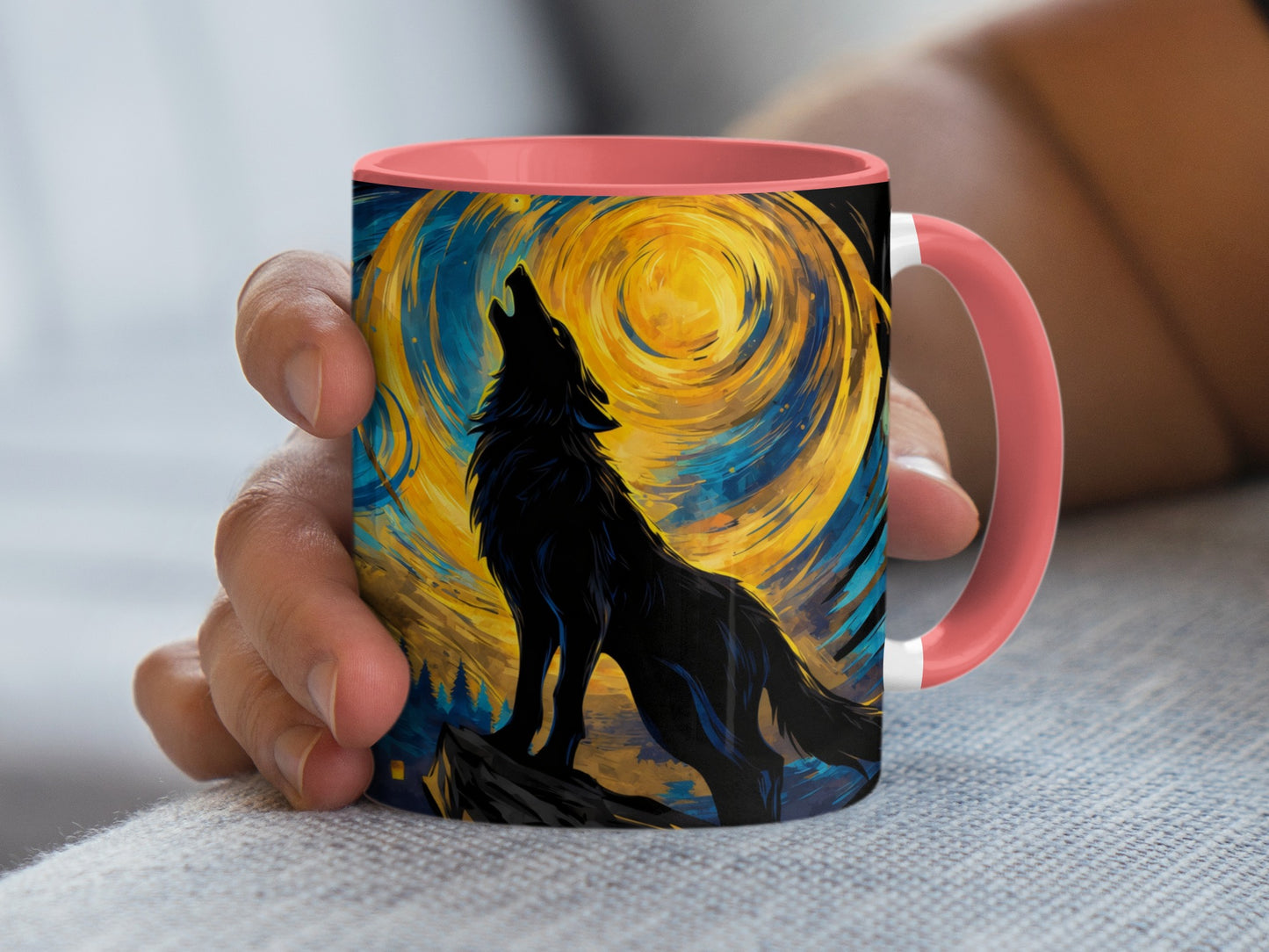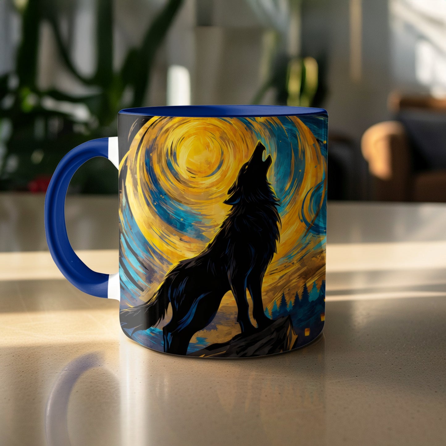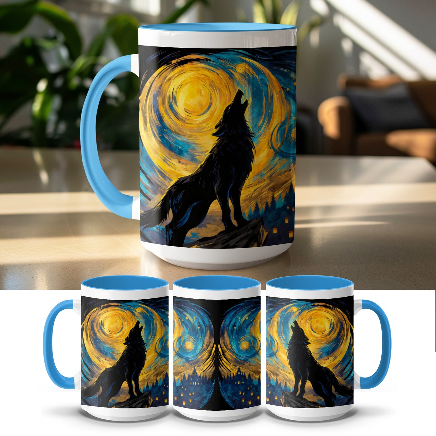 Wolf Howling Under the Night Sky Dreamscape Art Mug