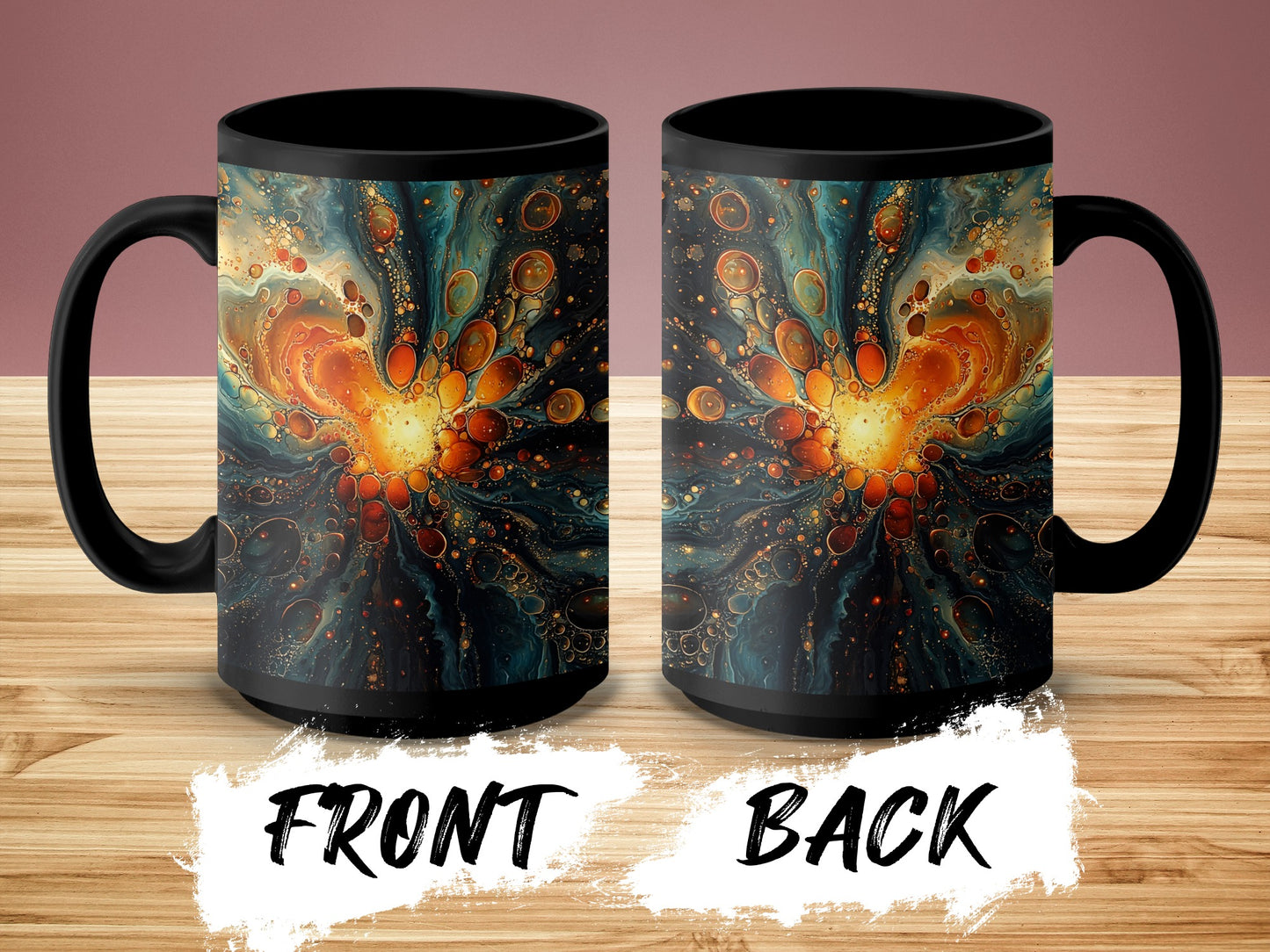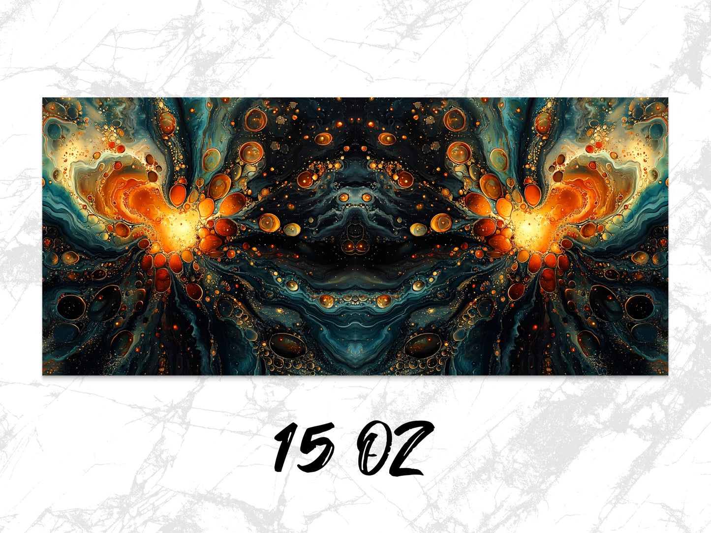 Decorate your favorite mug with unique abstract design featuring gold bubbles and teal hues. Perfect for adding style to your coffee or tea! Get yours now and stand out.
