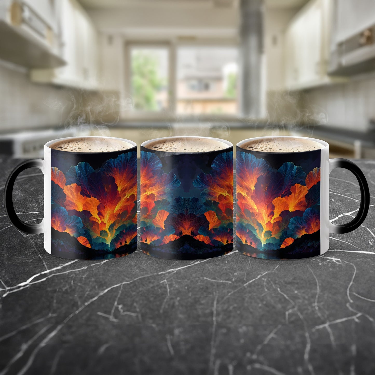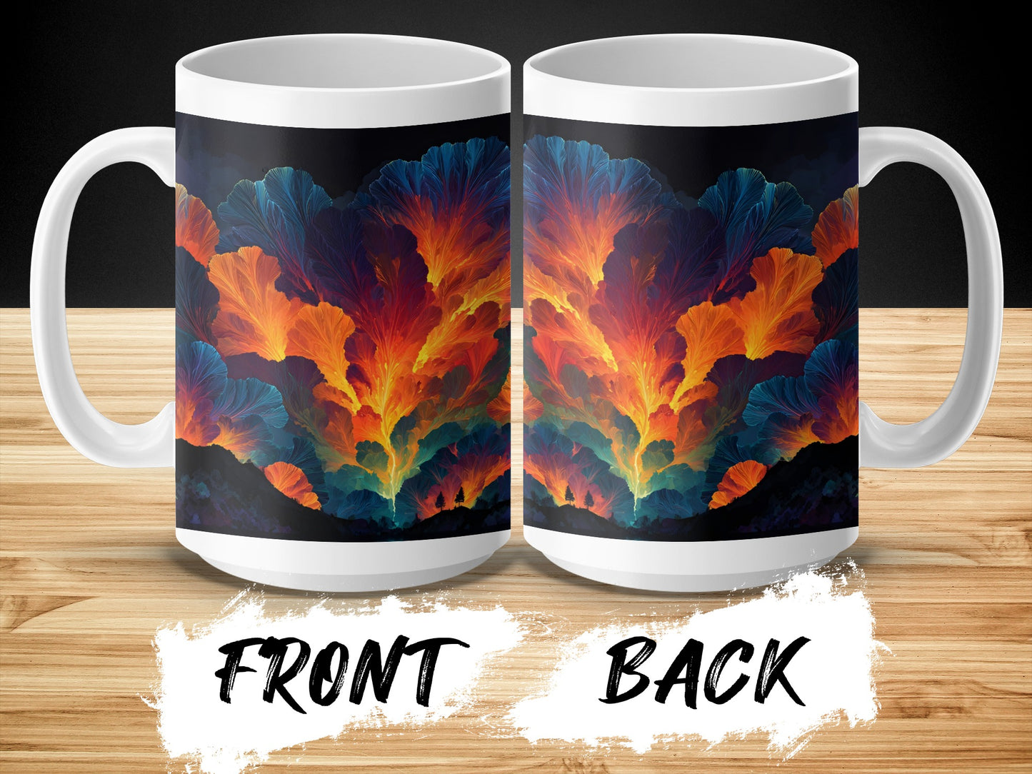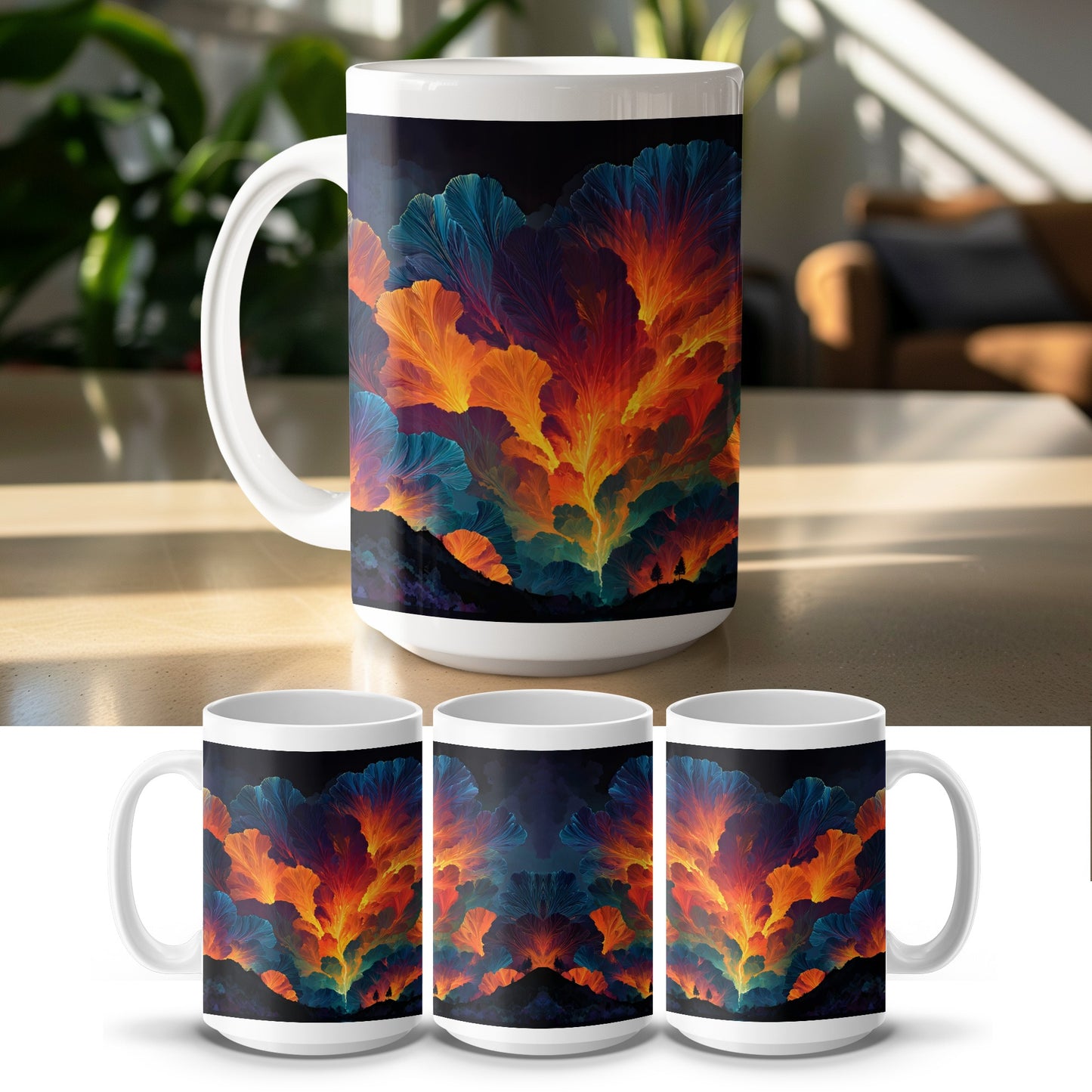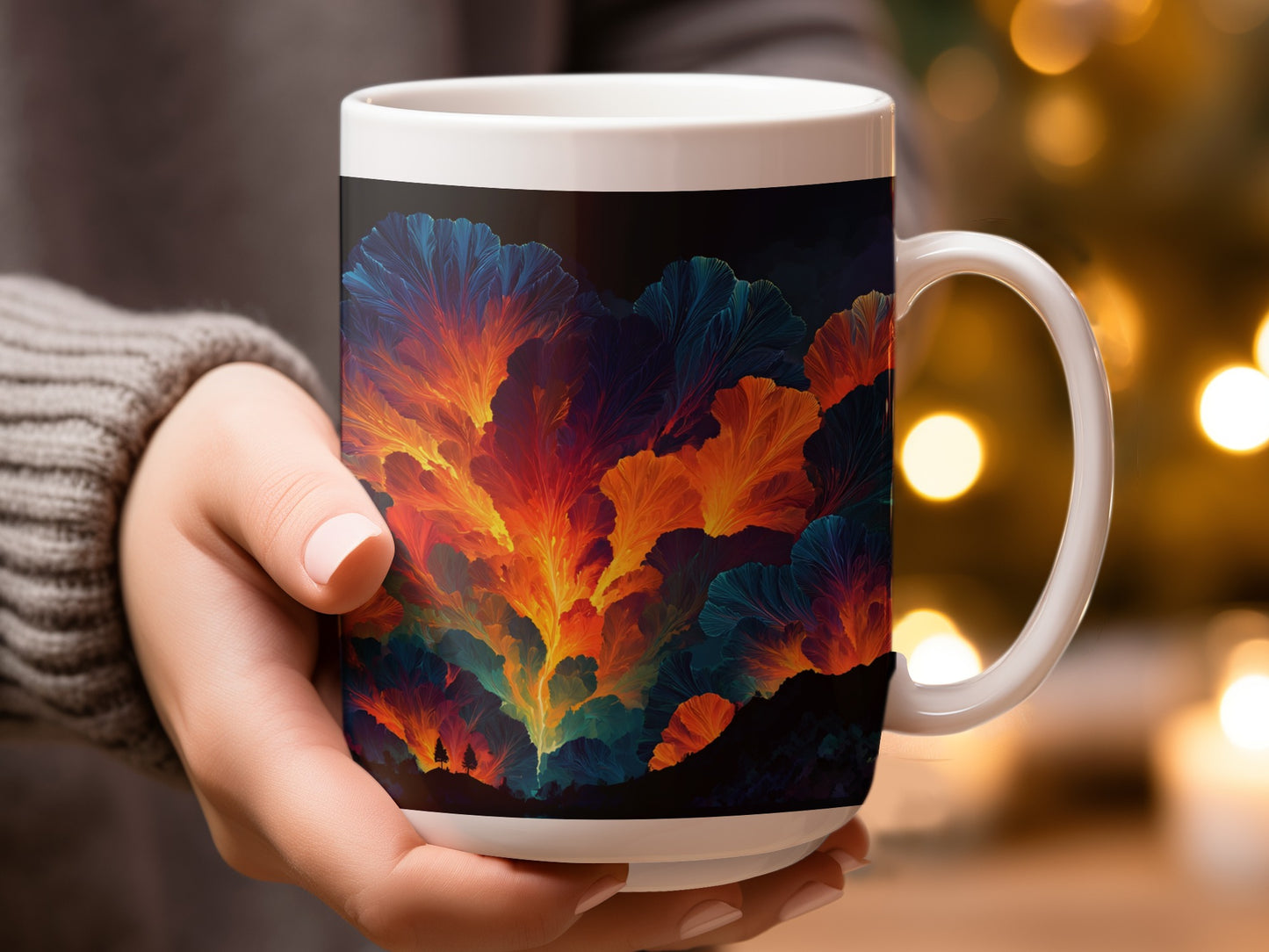 Abstract Floral Explosion Over Dark Landscape White Mug