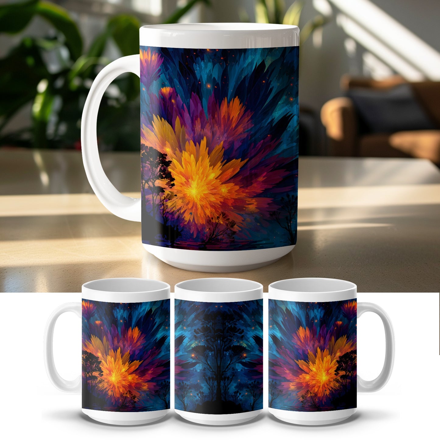 Abstract Flowers and Trees Night Illustration Novelty Mug
