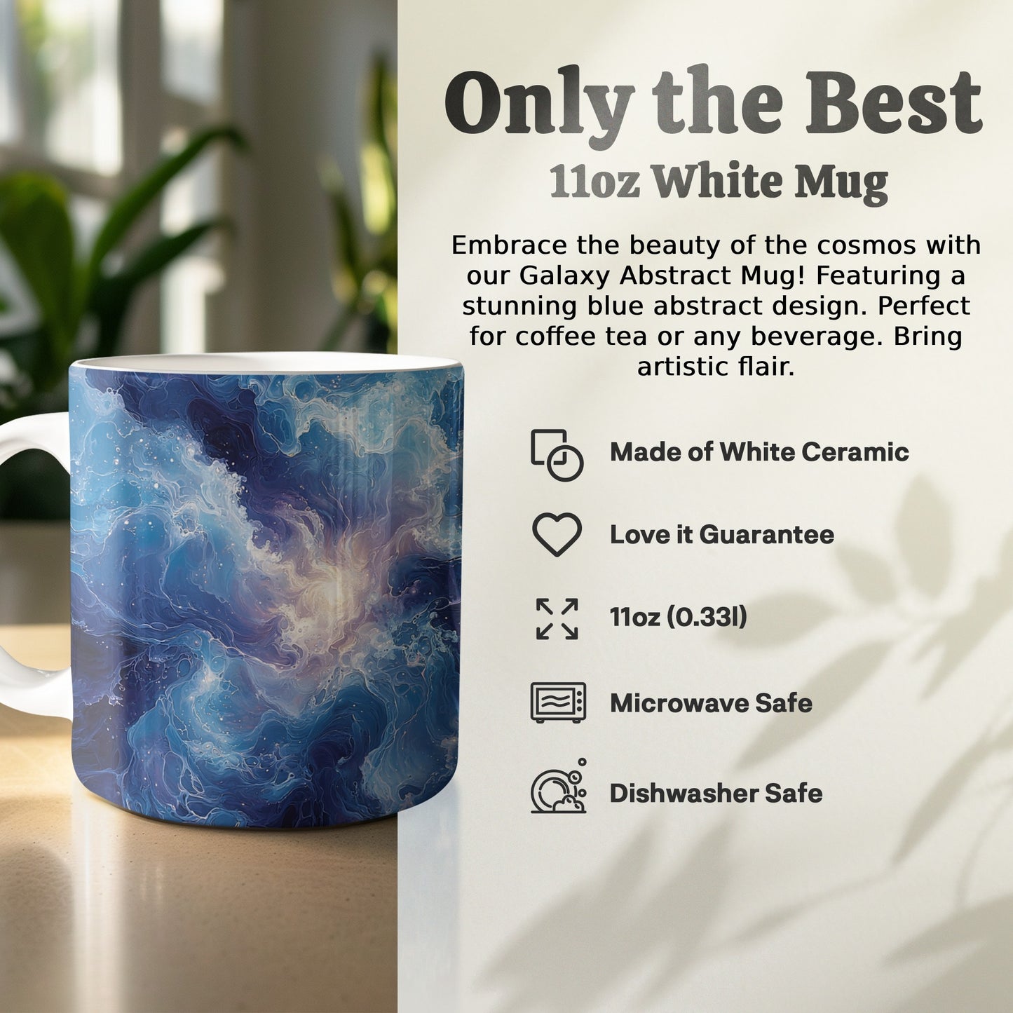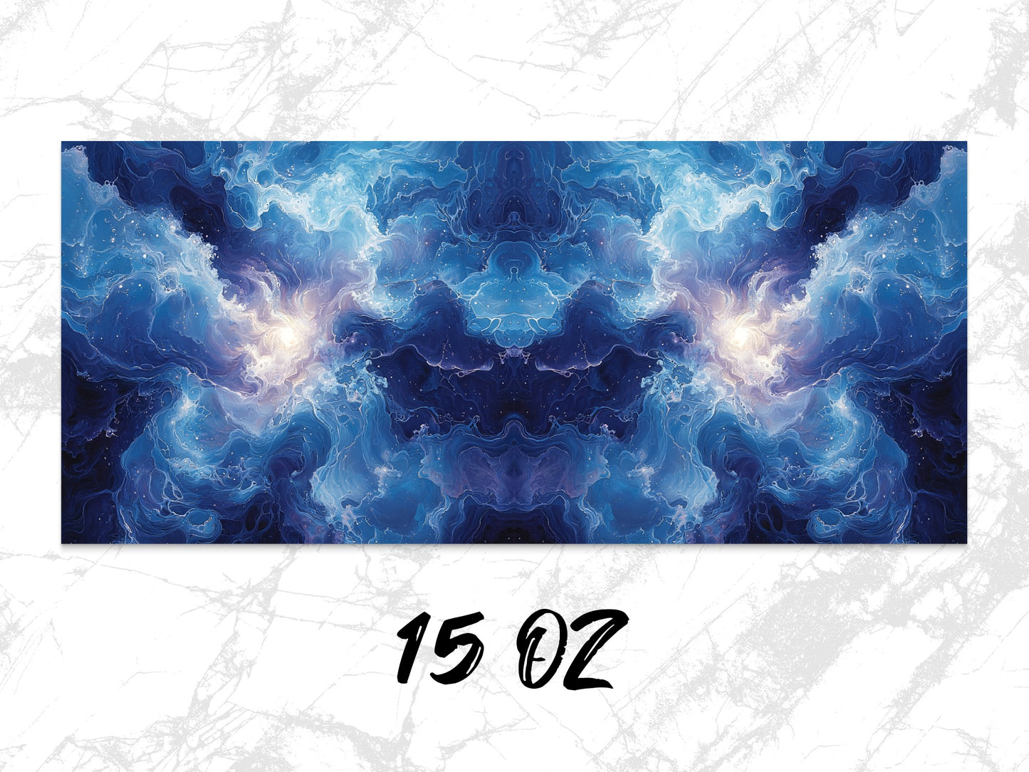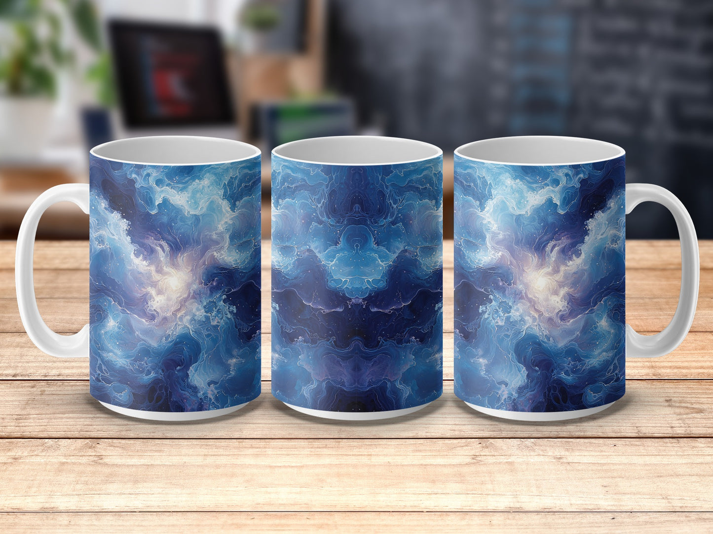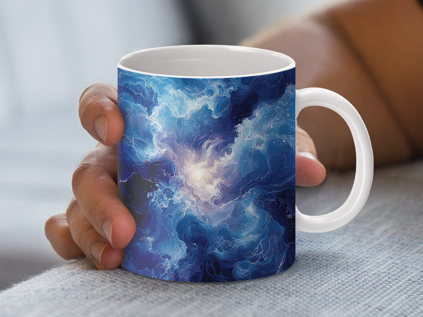 Transform your drinkware with this breathtaking abstract blue and white galaxy design. A stunning visual that will add artistic flair to any mug. Perfect gift idea.