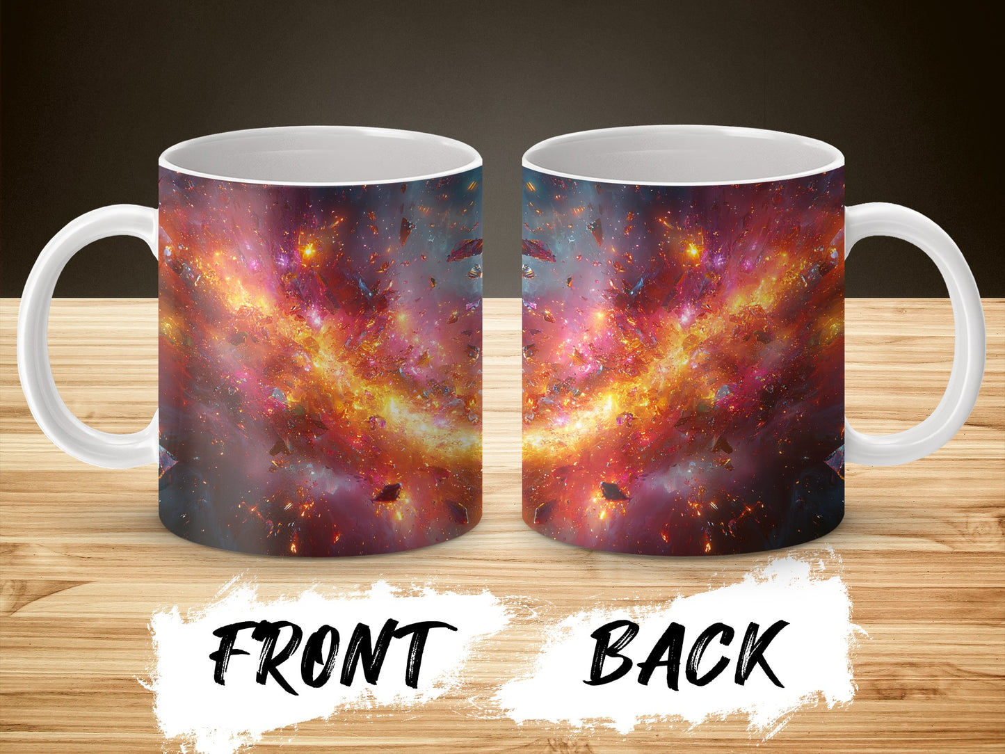 Transform your mugs with this stunning abstract galaxy design featuring vibrant colors and mesmerizing patterns. Perfect for coffee tea or any beverage. Get it now for a unique mug.