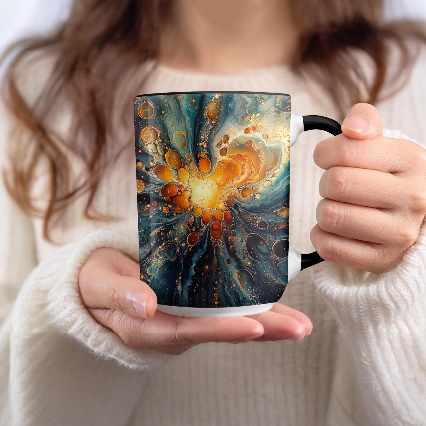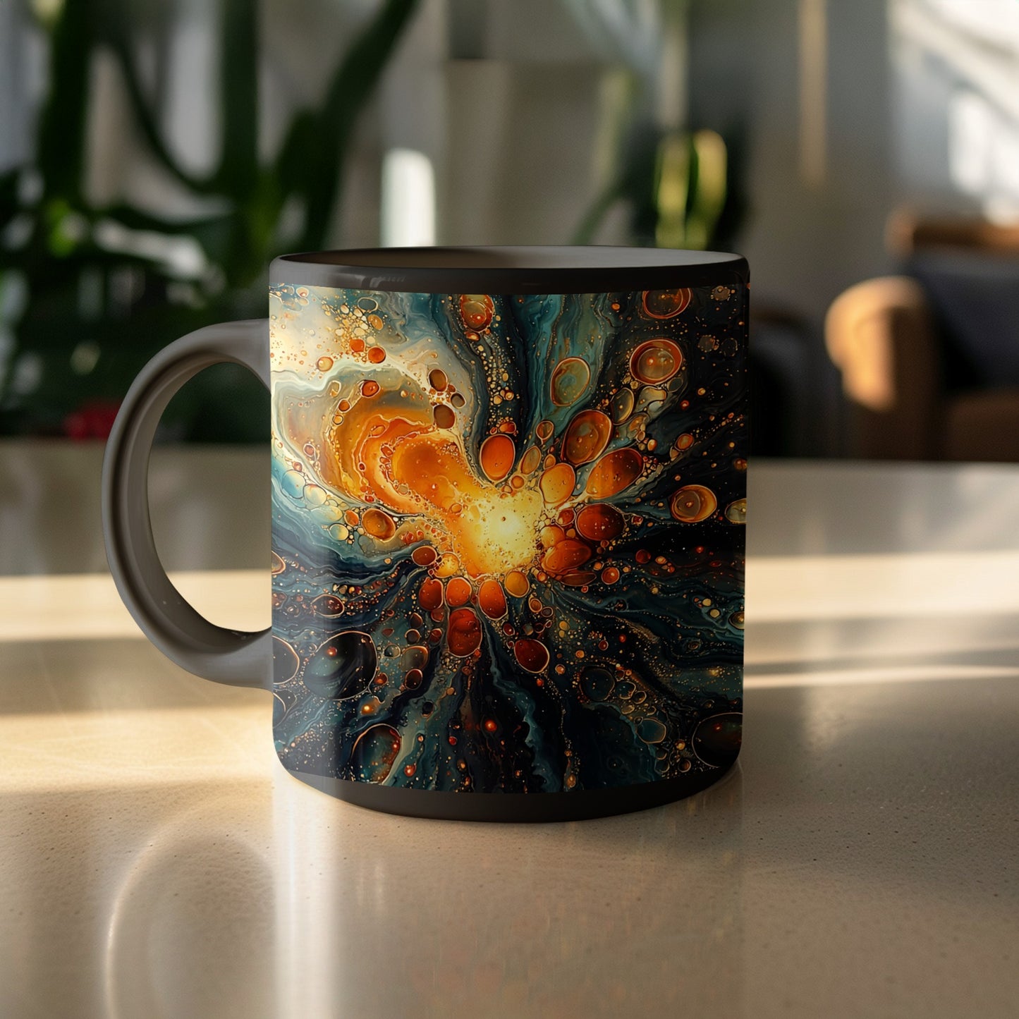Abstract Golden Bubbles on Dark Blue Background Art Mug