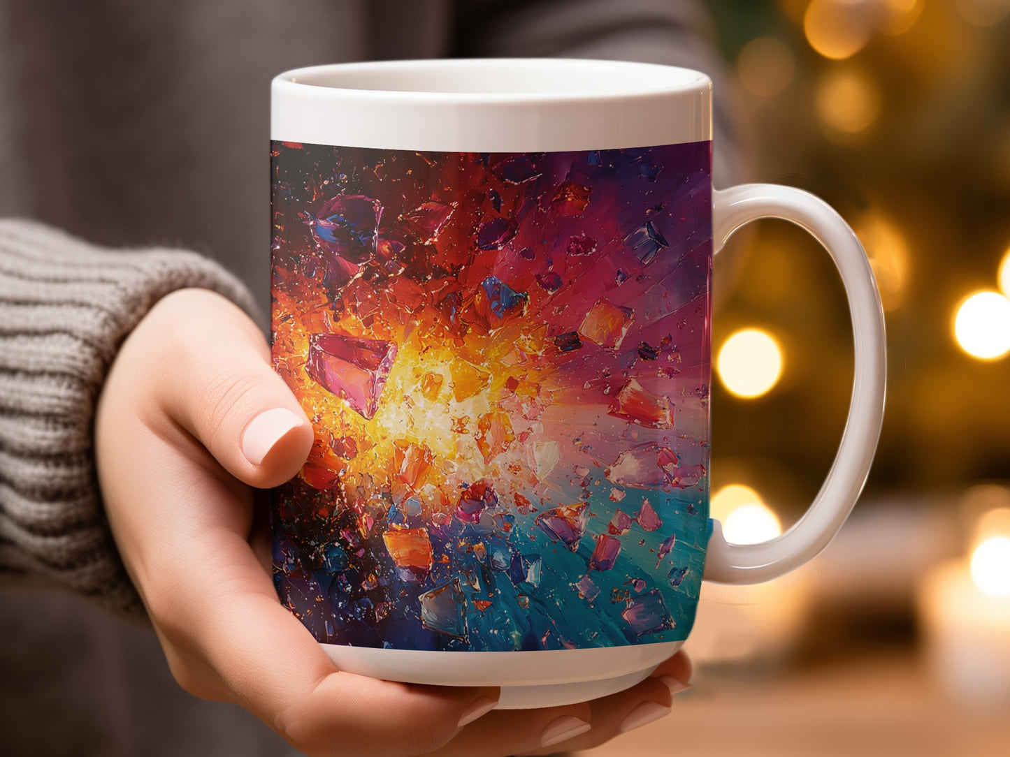 Personalize your mug with a vibrant abstract fractal explosion design. This colorful art will bring energy to your morning coffee. Get unique 11oz & 15oz mug wraps today!