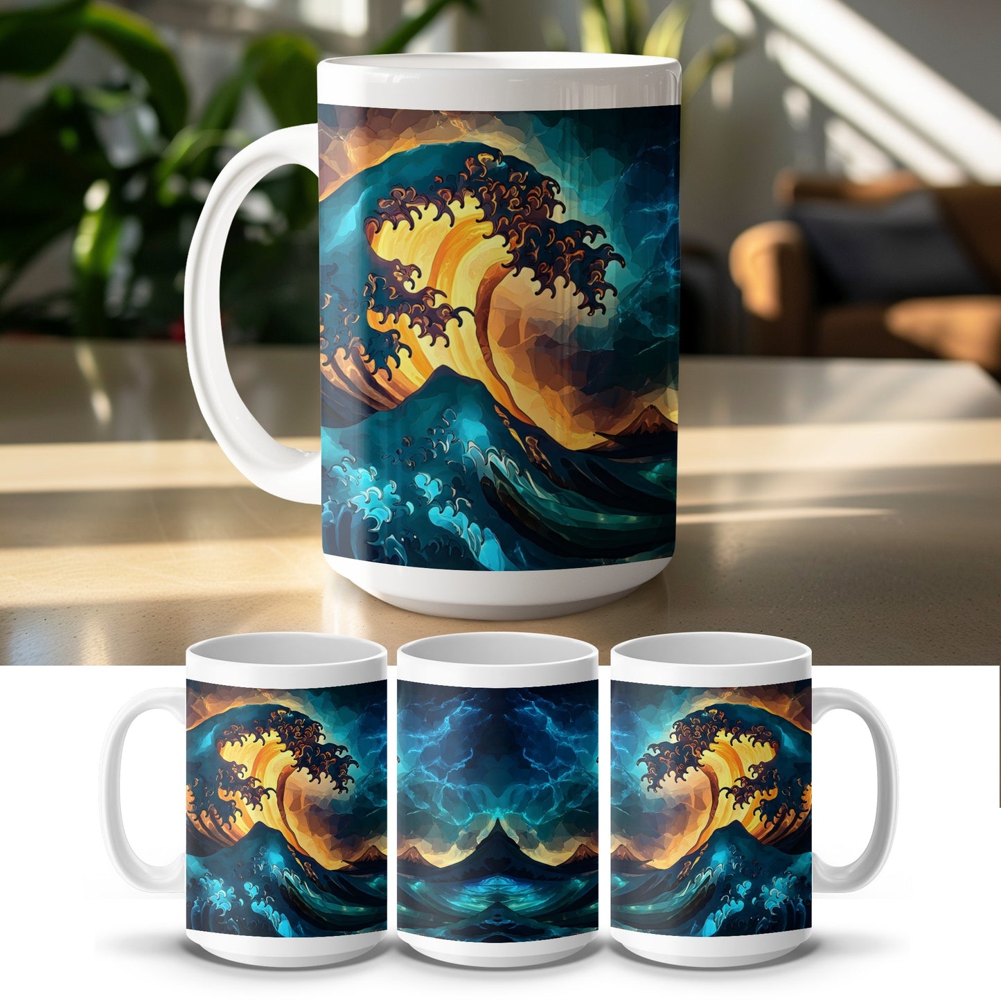 Abstract Ocean Waves and Stormy Sky Art Design Mug